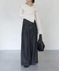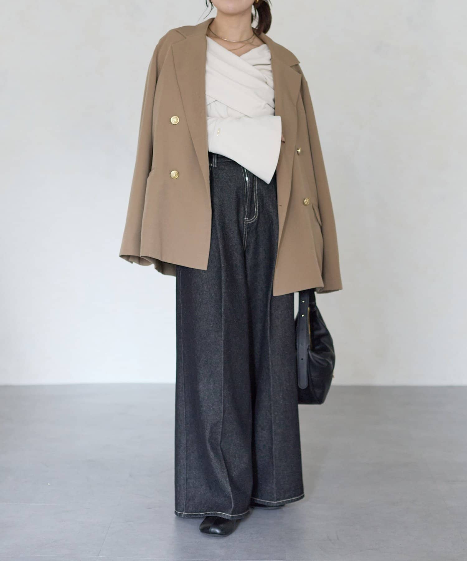 ハイウエストタックワイドデニムにベルトを合わせて、