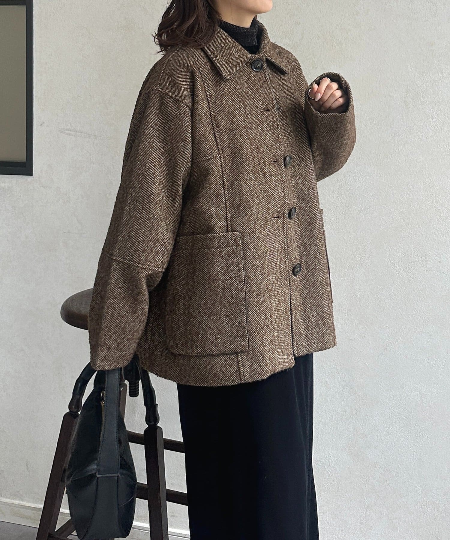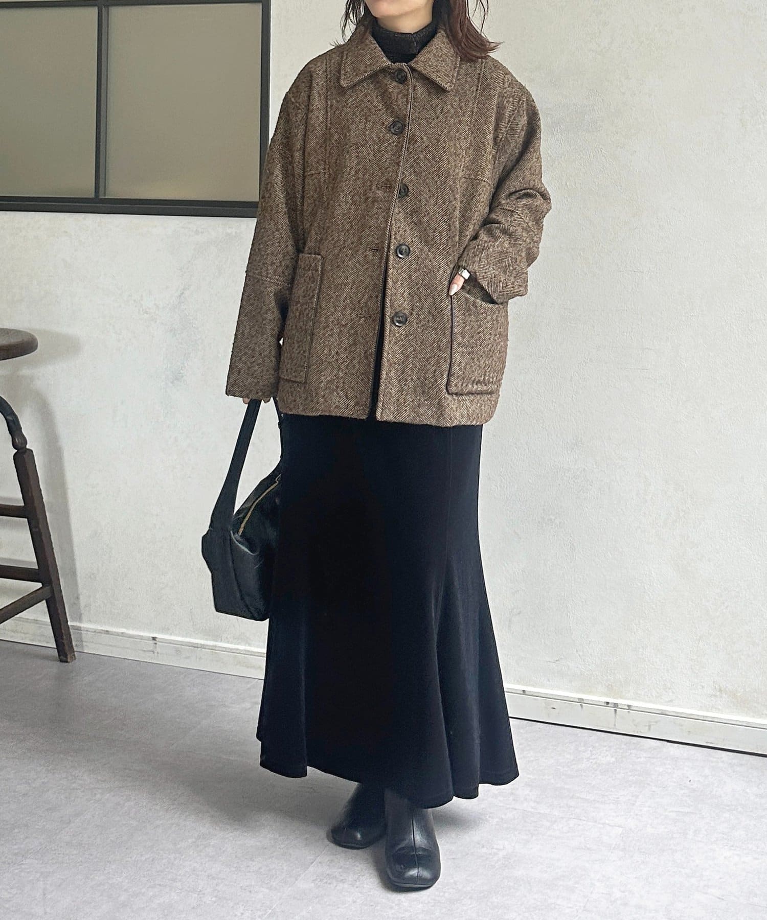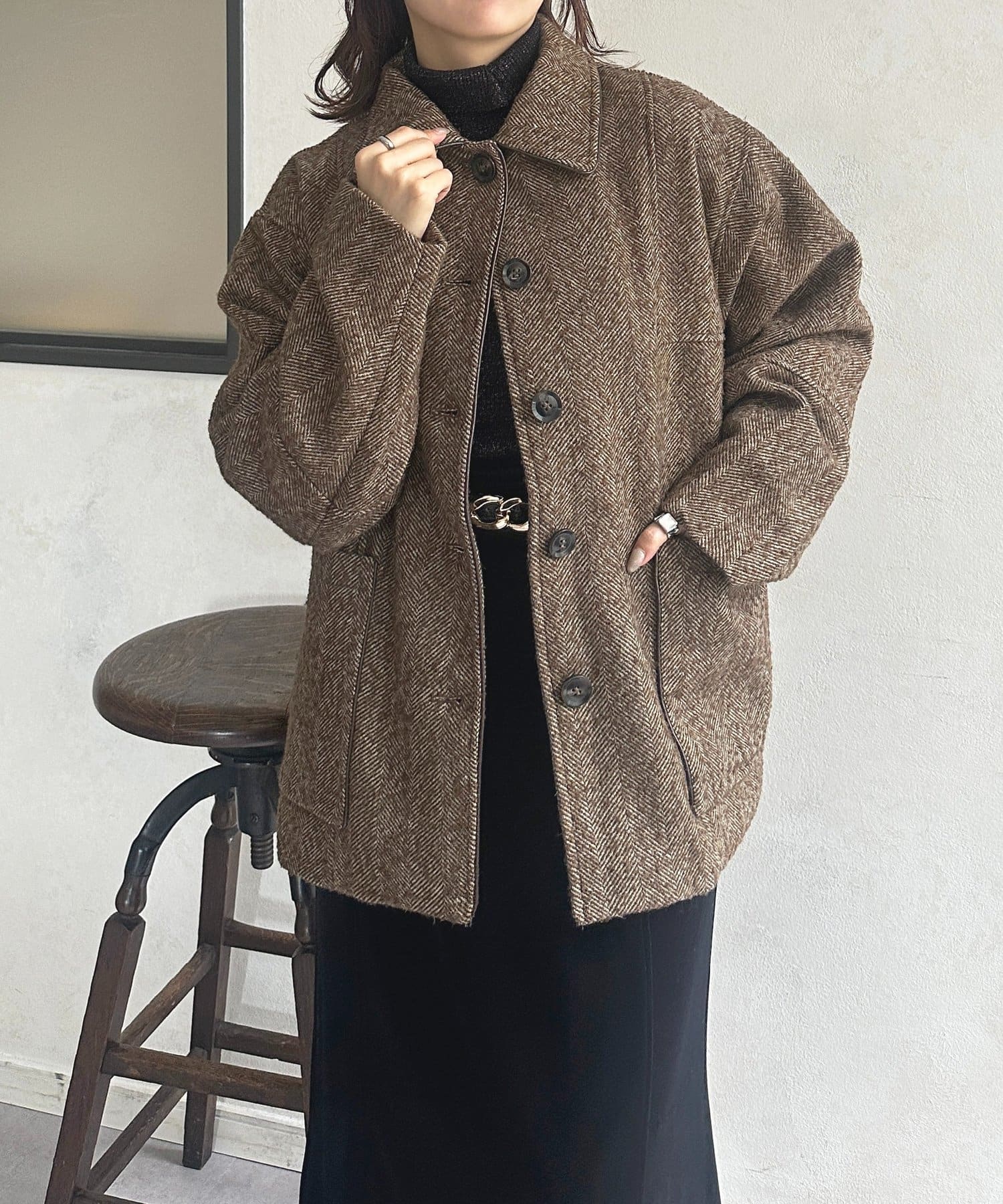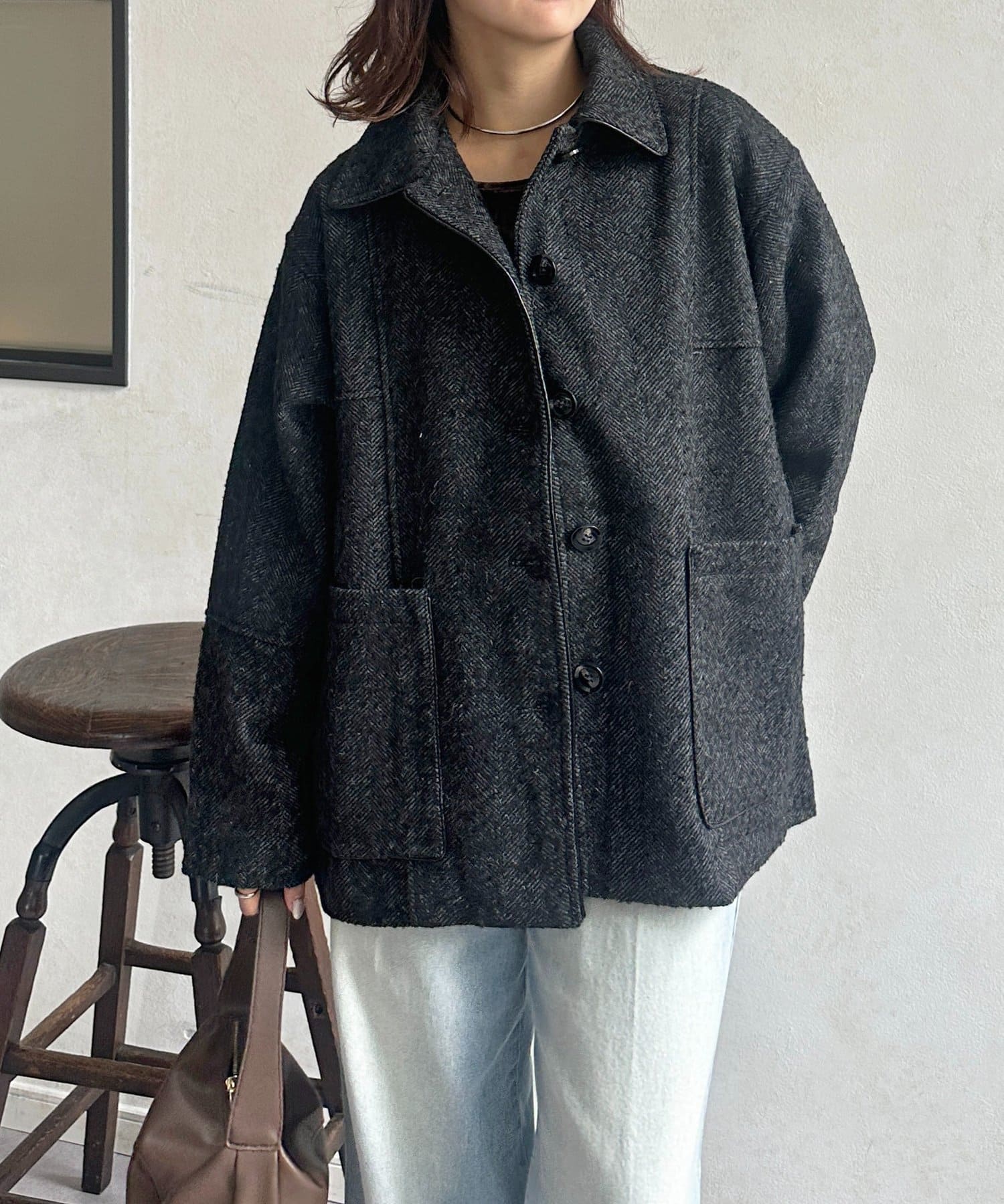 #カバーオール #ヘリンボーン #パイピング #秋アウター