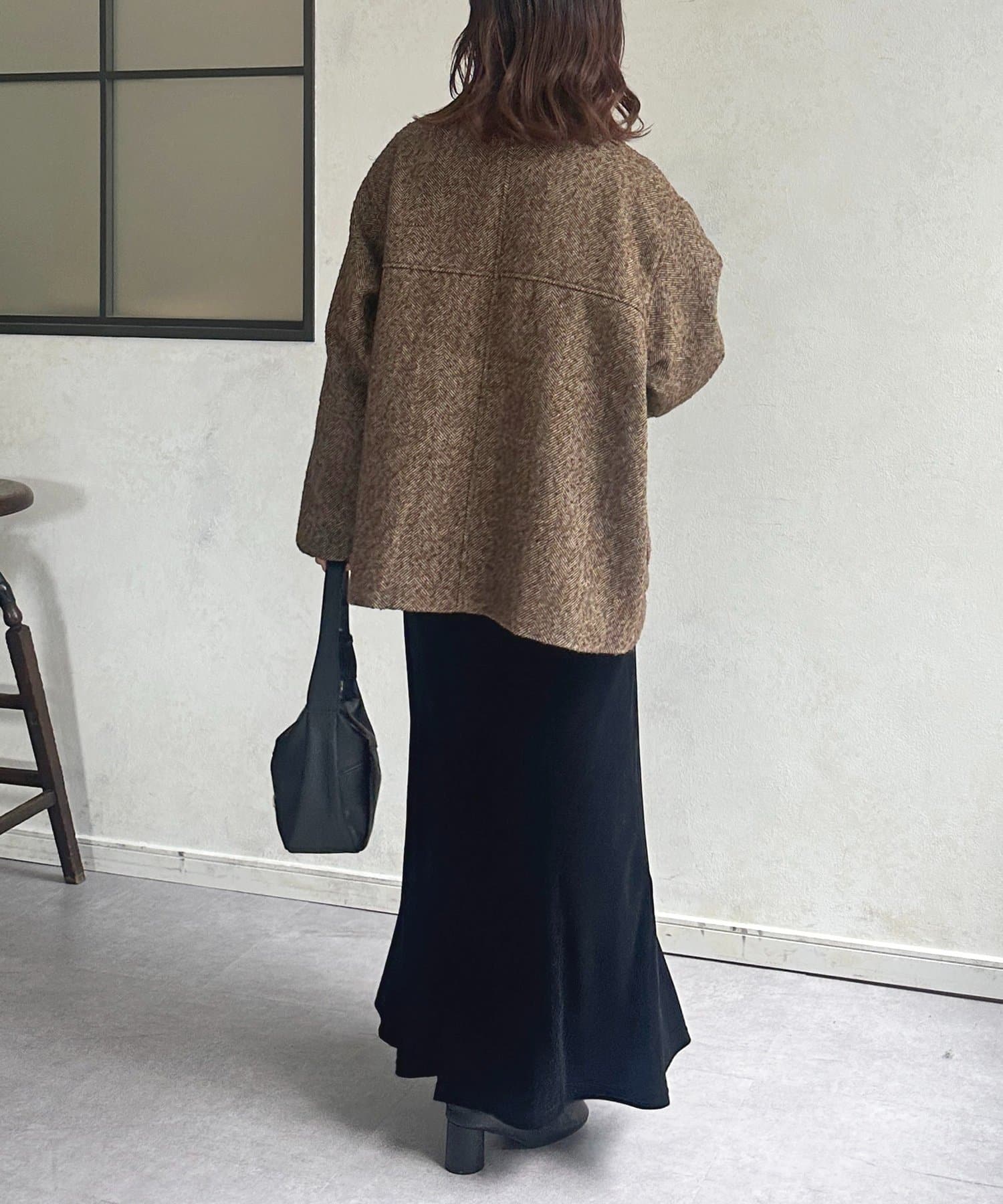 ・ロングスカートと合わせて、大人フェミニンな着こなしに。