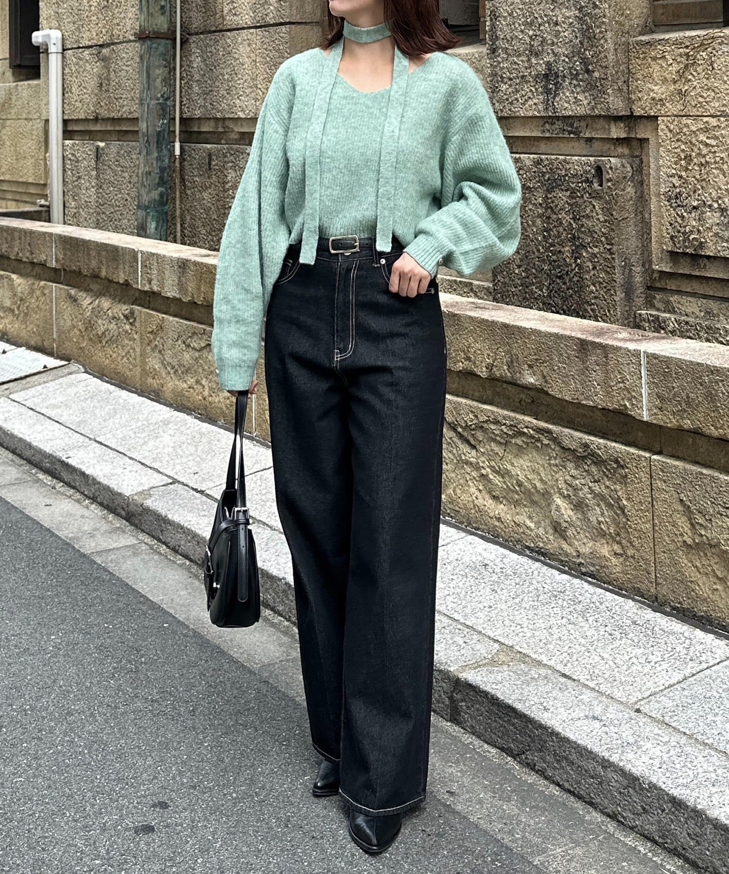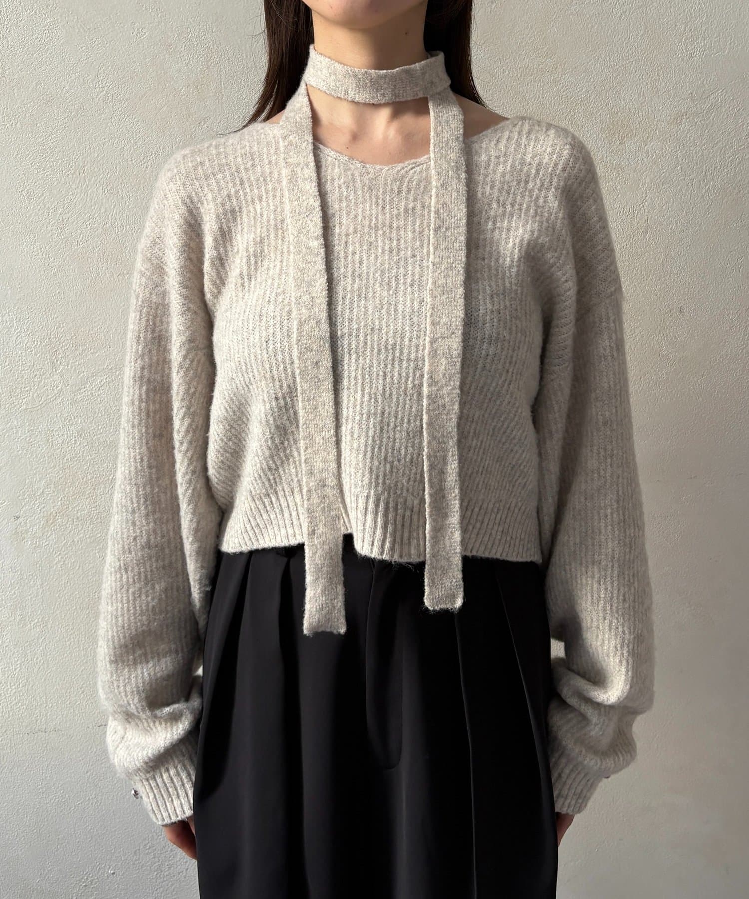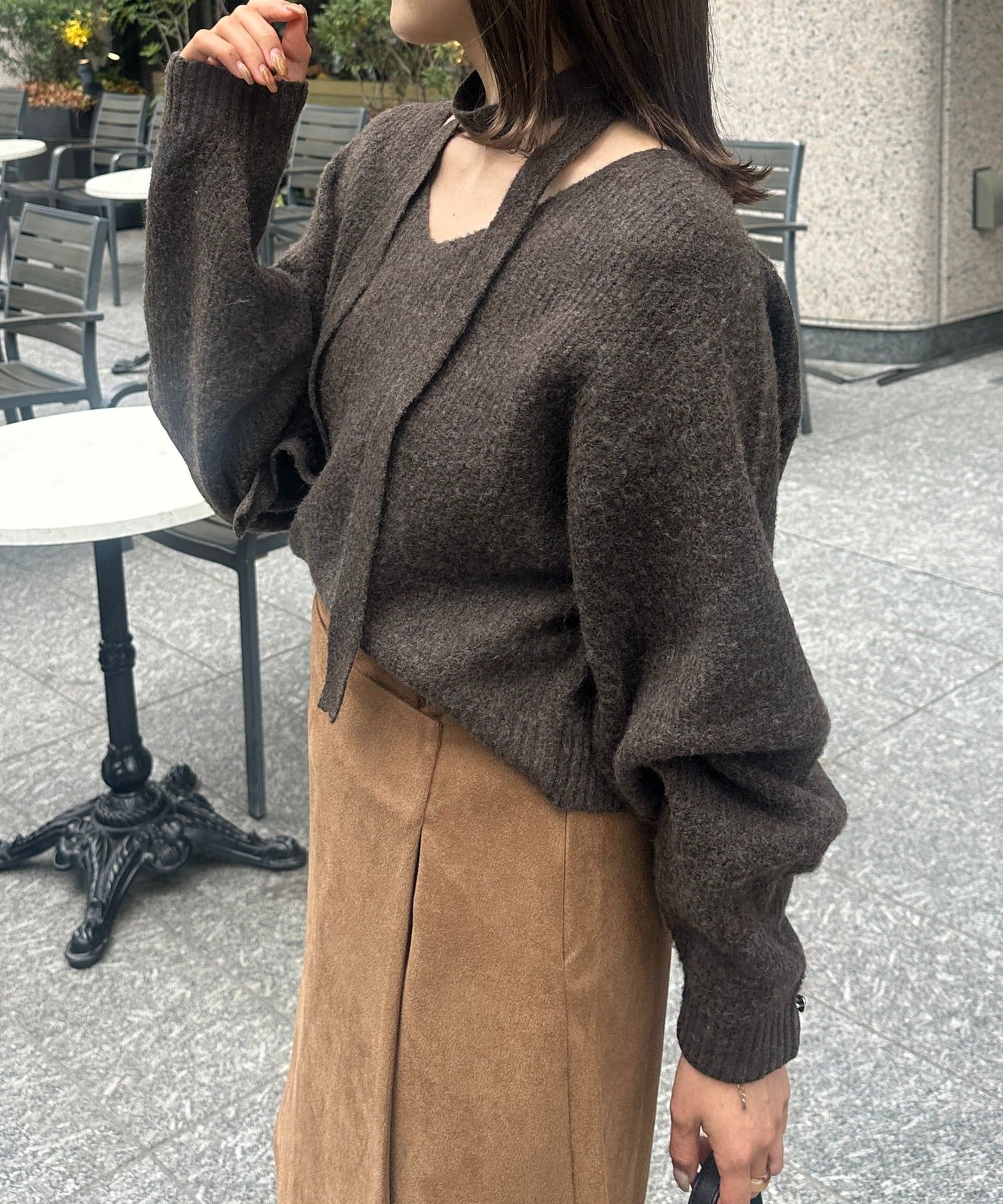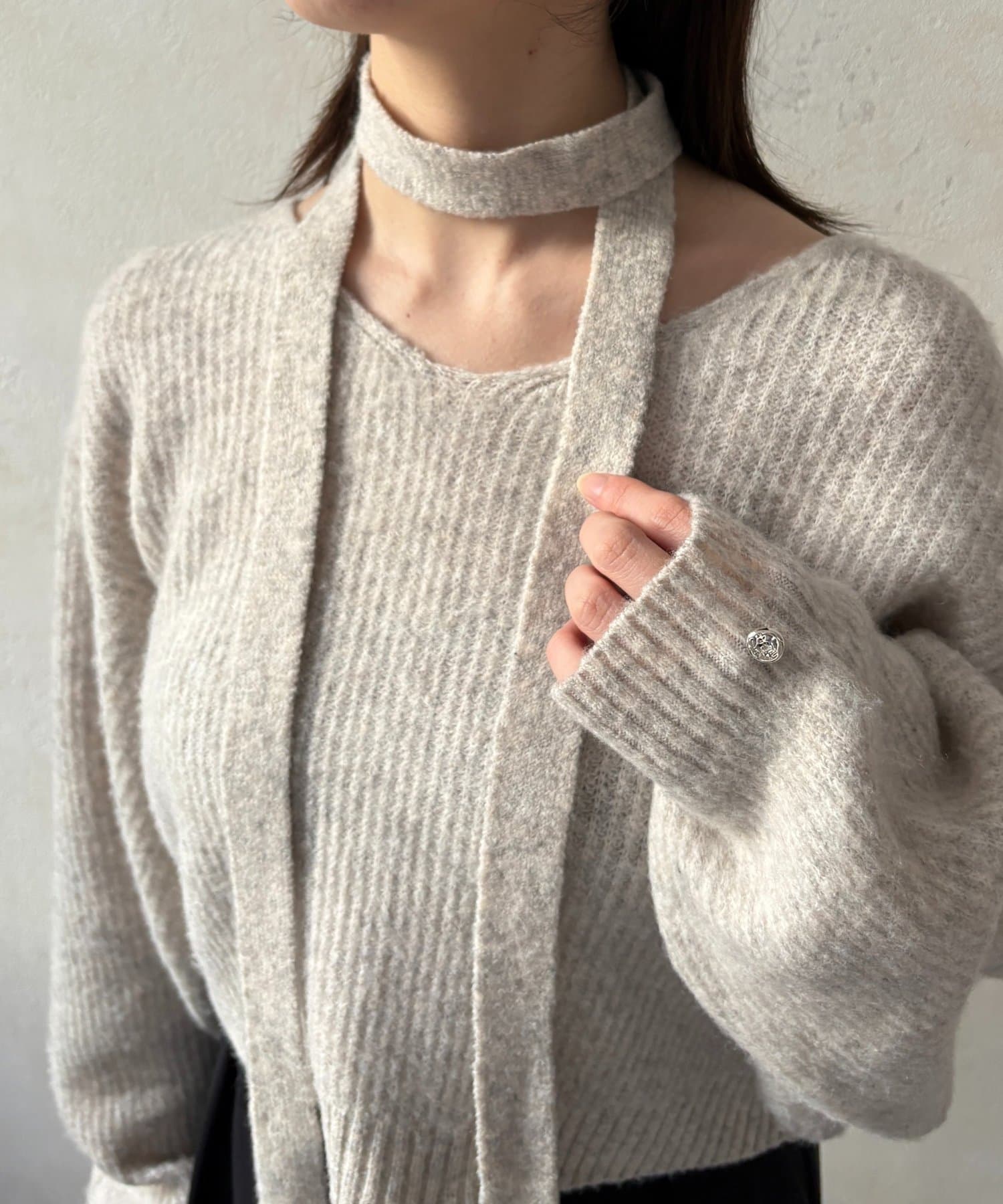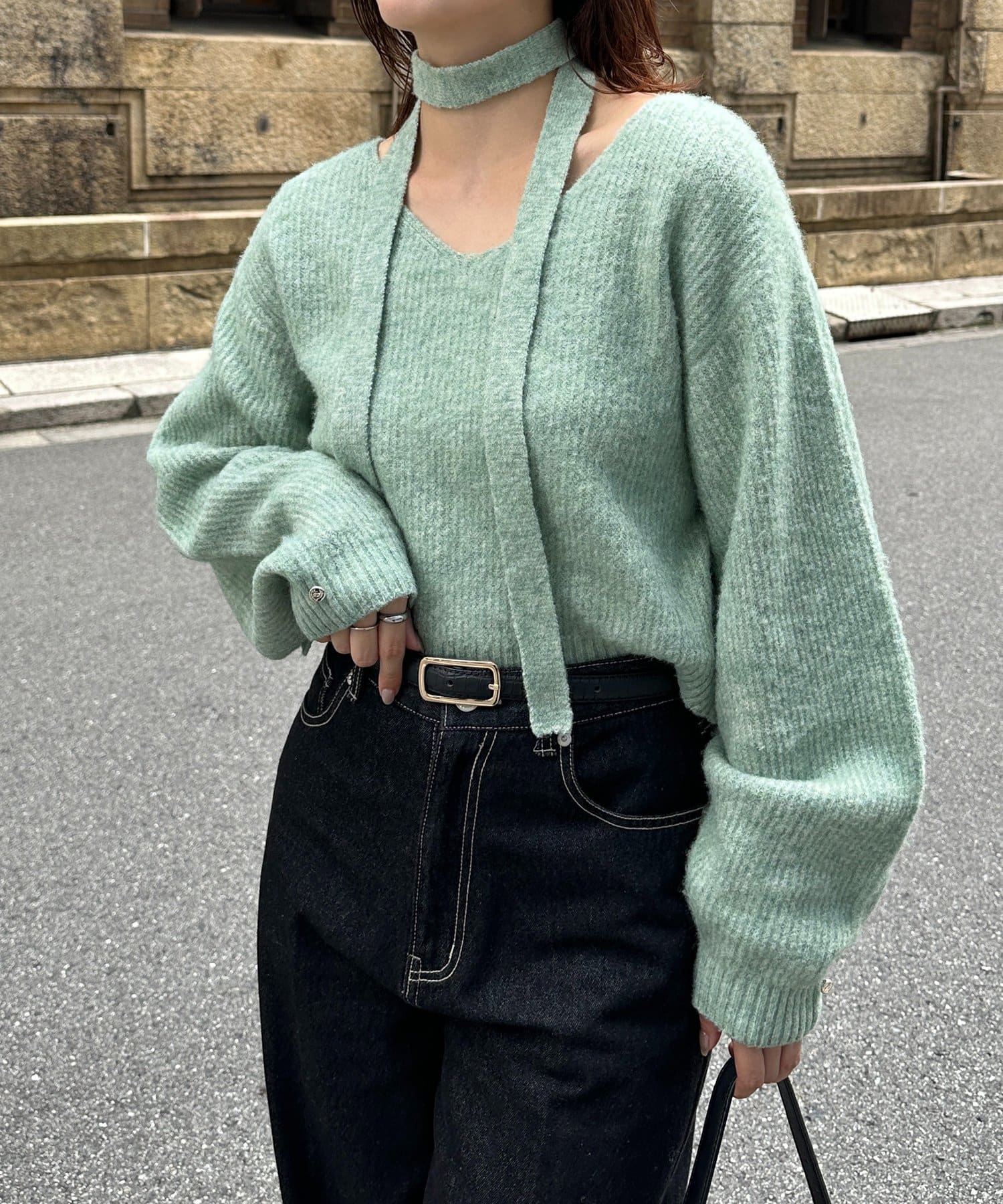 • Thevon.(ゼヴォン) チョーカー付きVネックニット