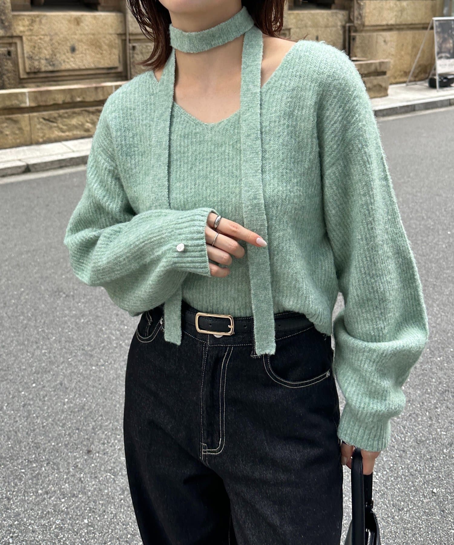 TOP > Thevon. > レディース > トップス > ニット/セーター > チョーカー付きVネックニット