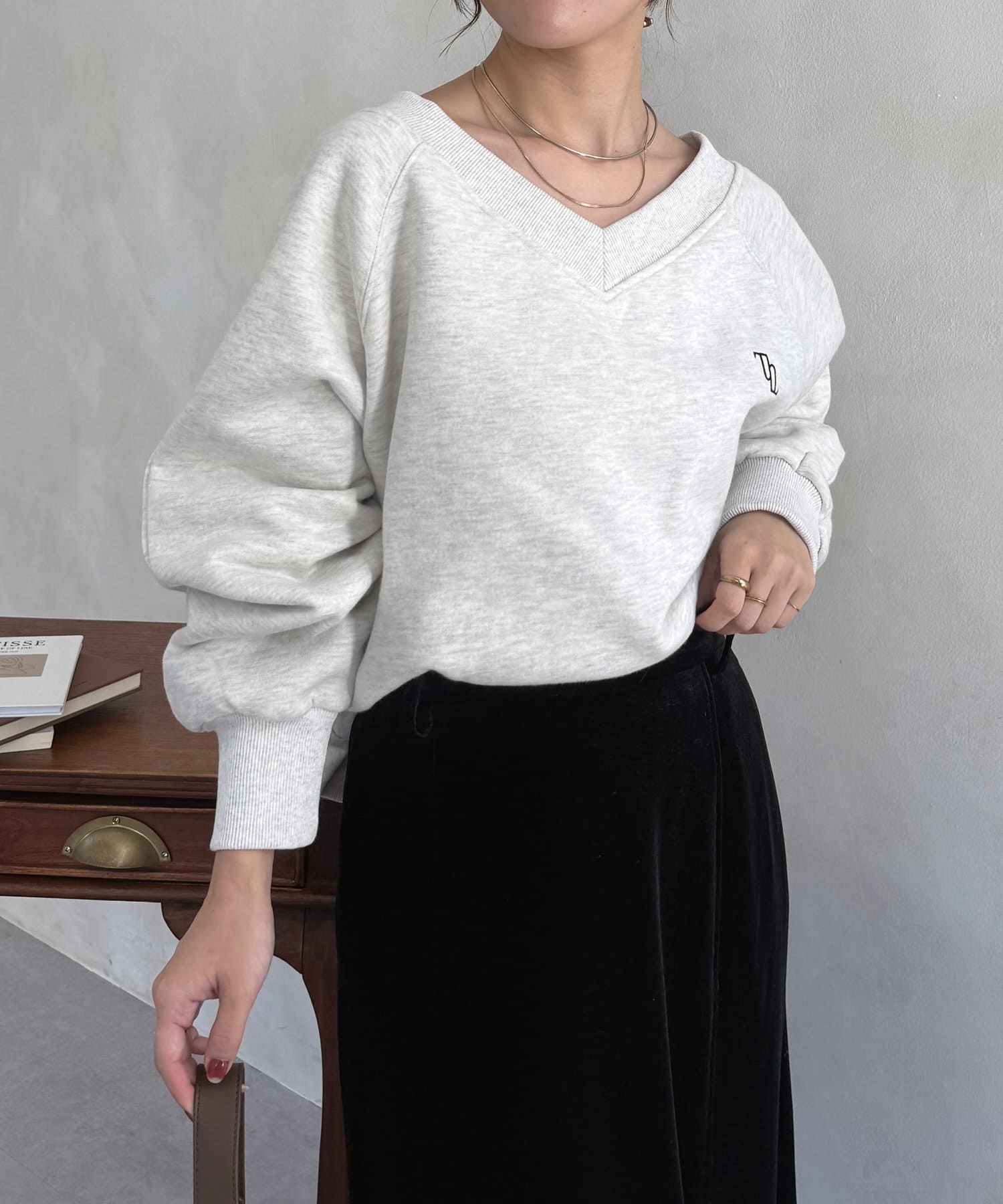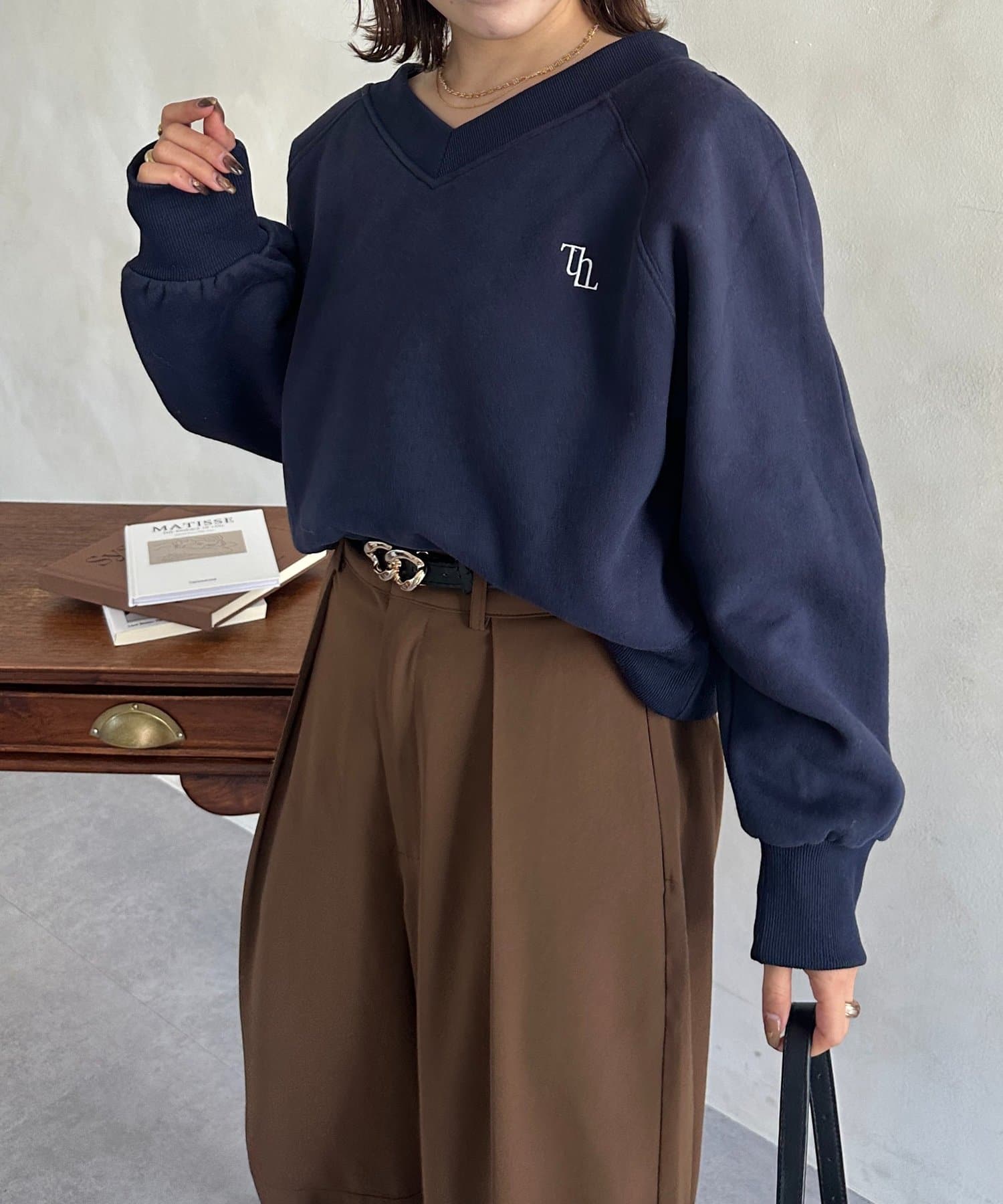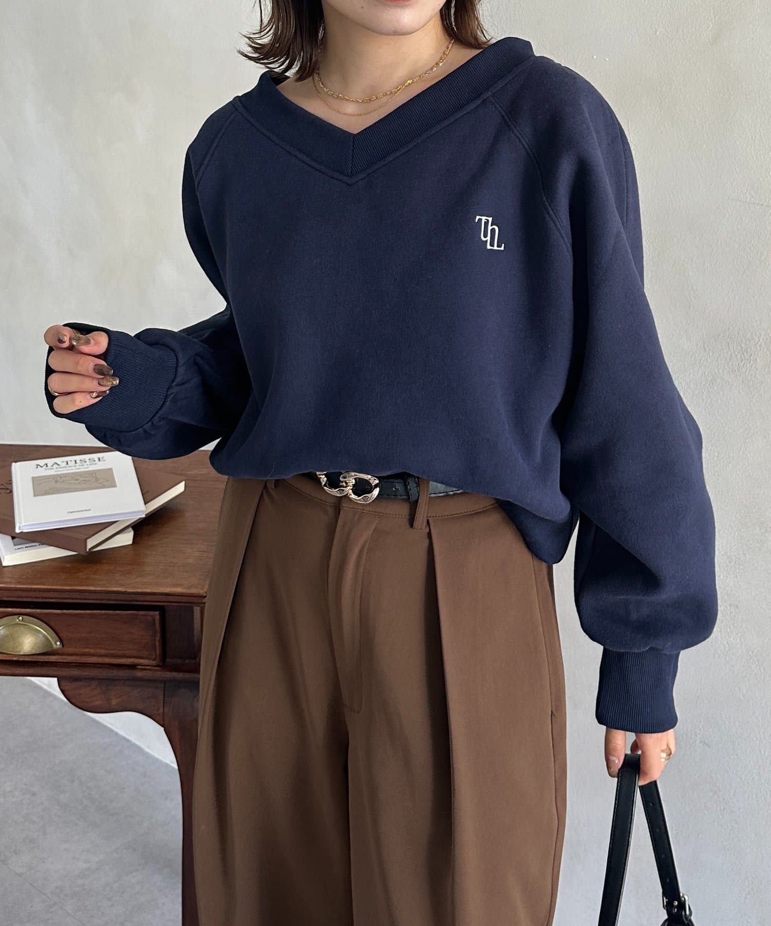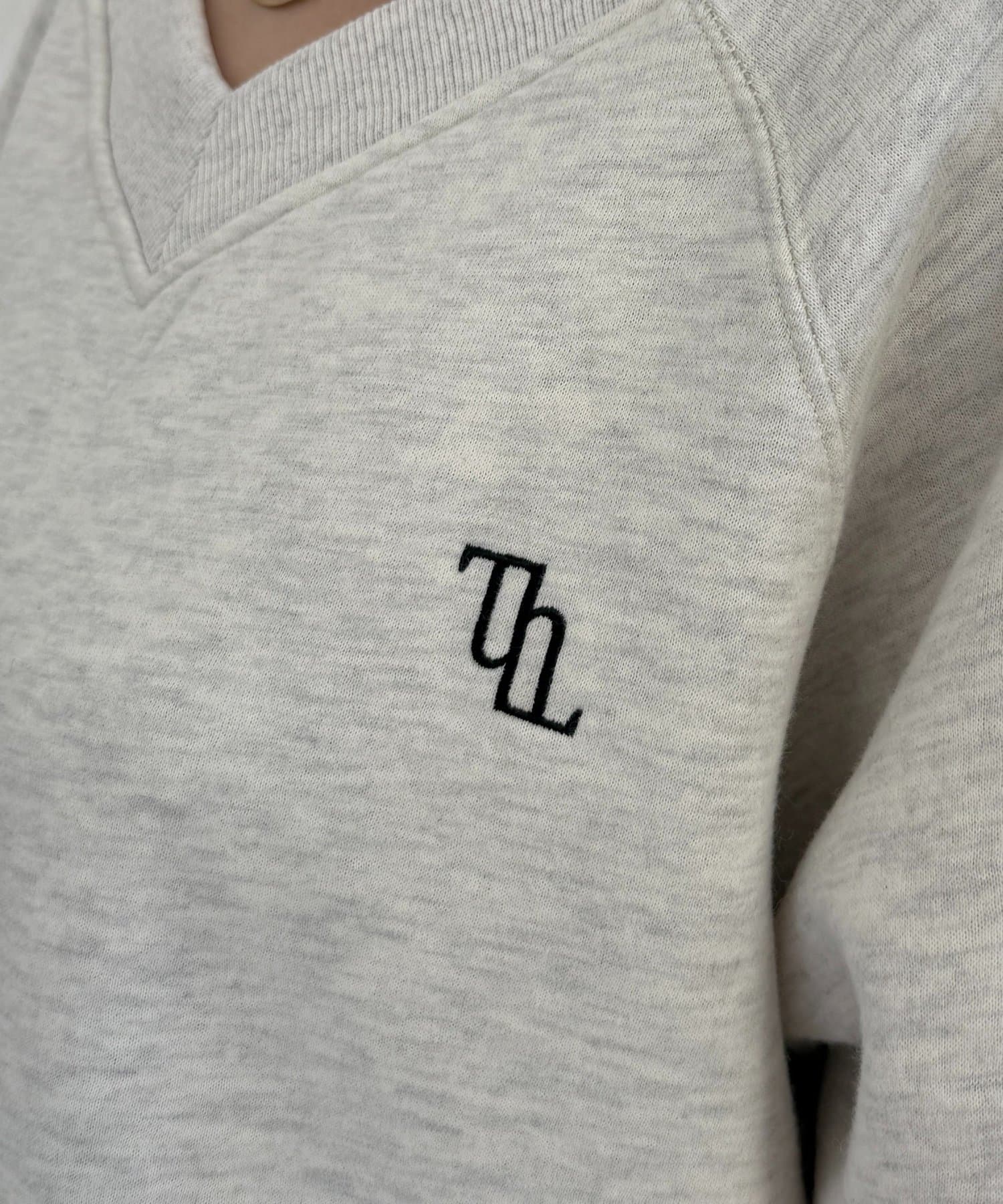 Vネック刺繍ロゴ裏起毛プルオーバー
