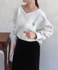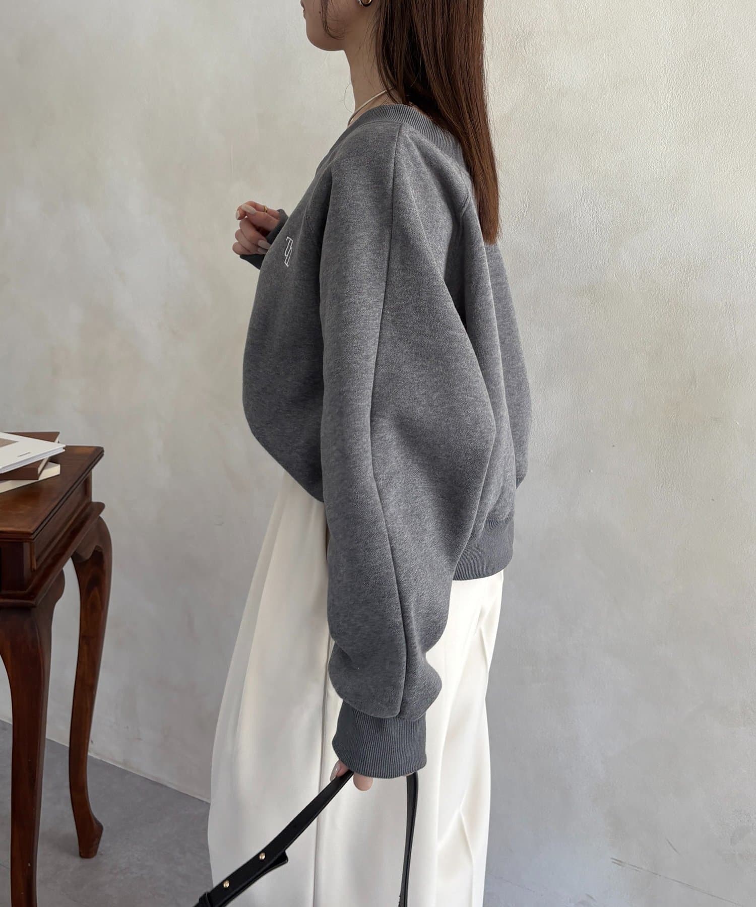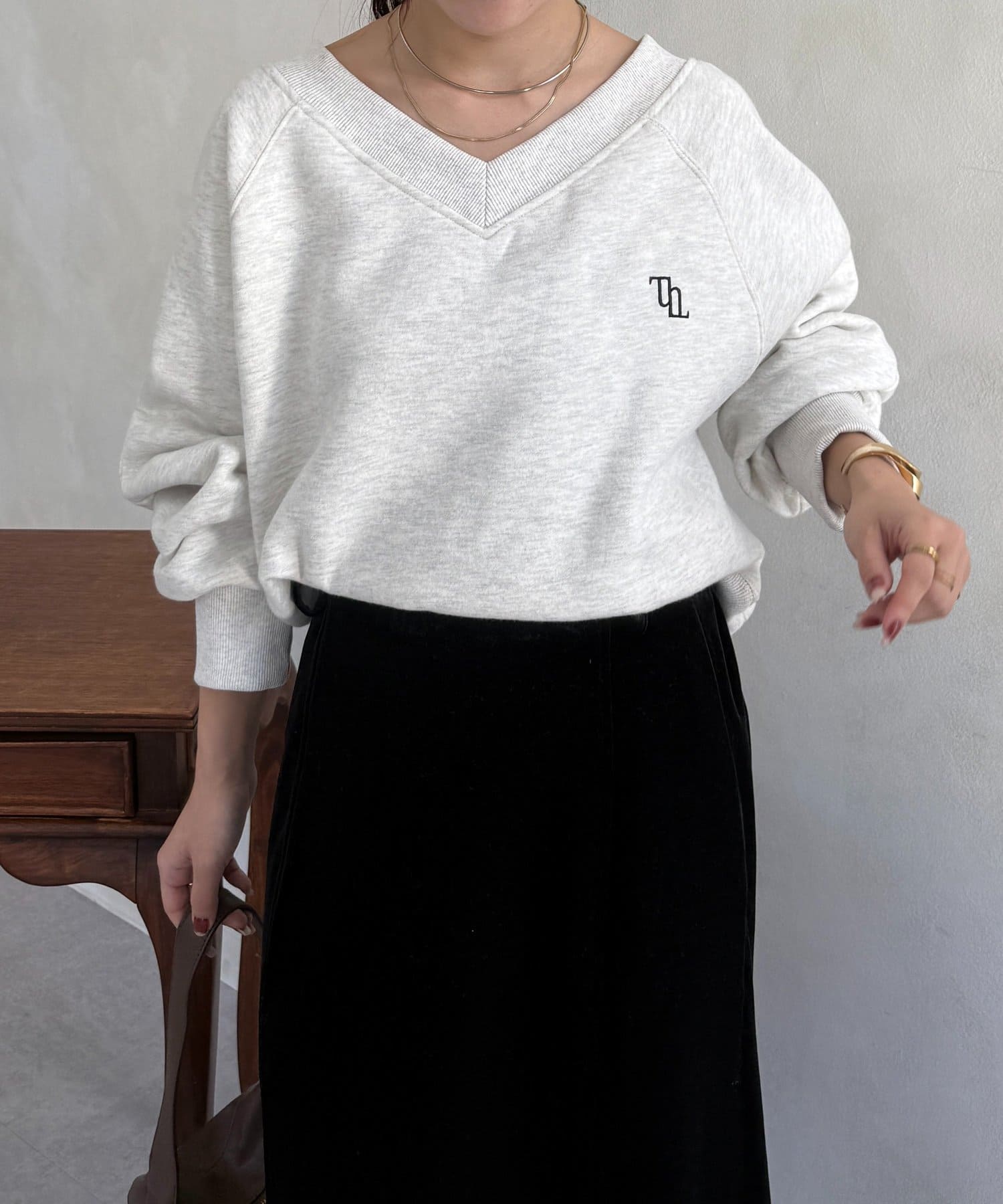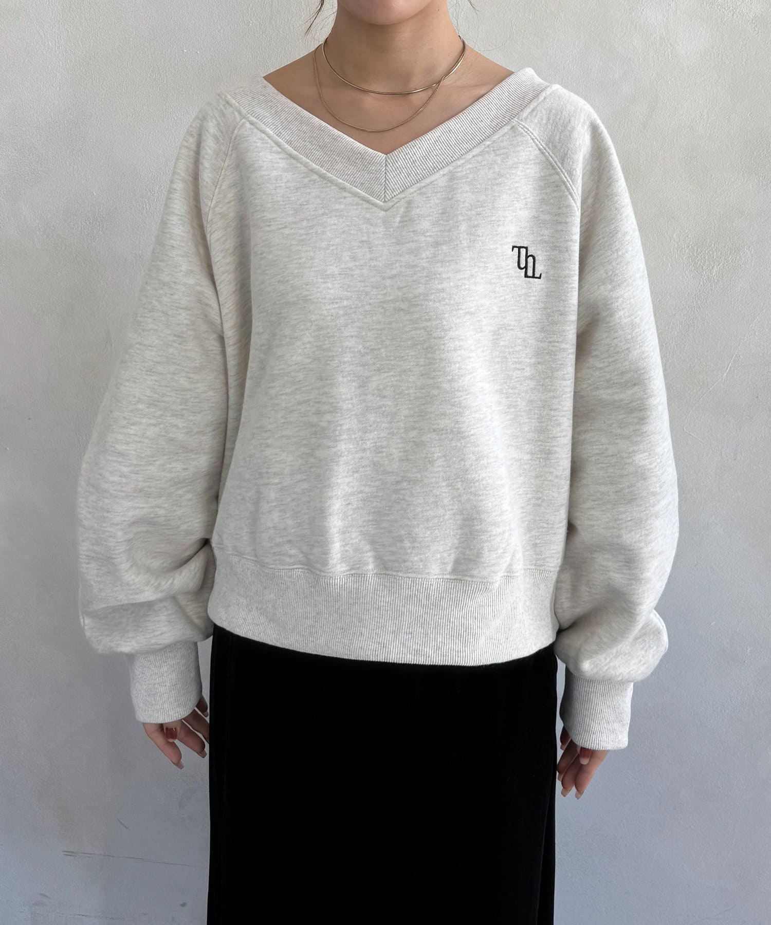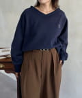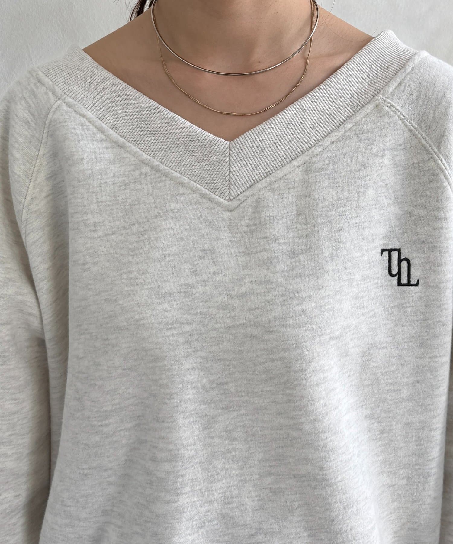 Vネック刺繍ロゴ裏起毛プルオーバー