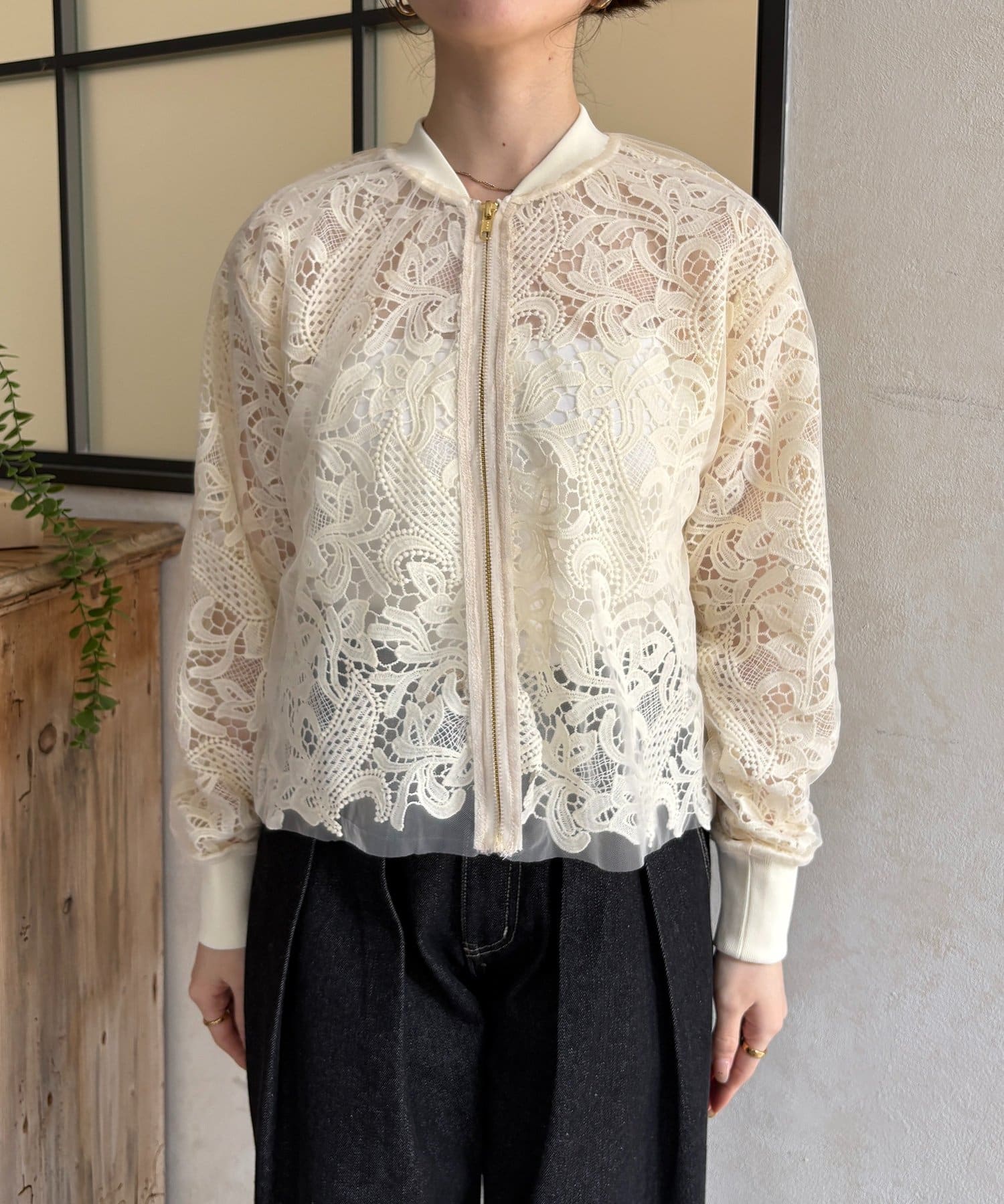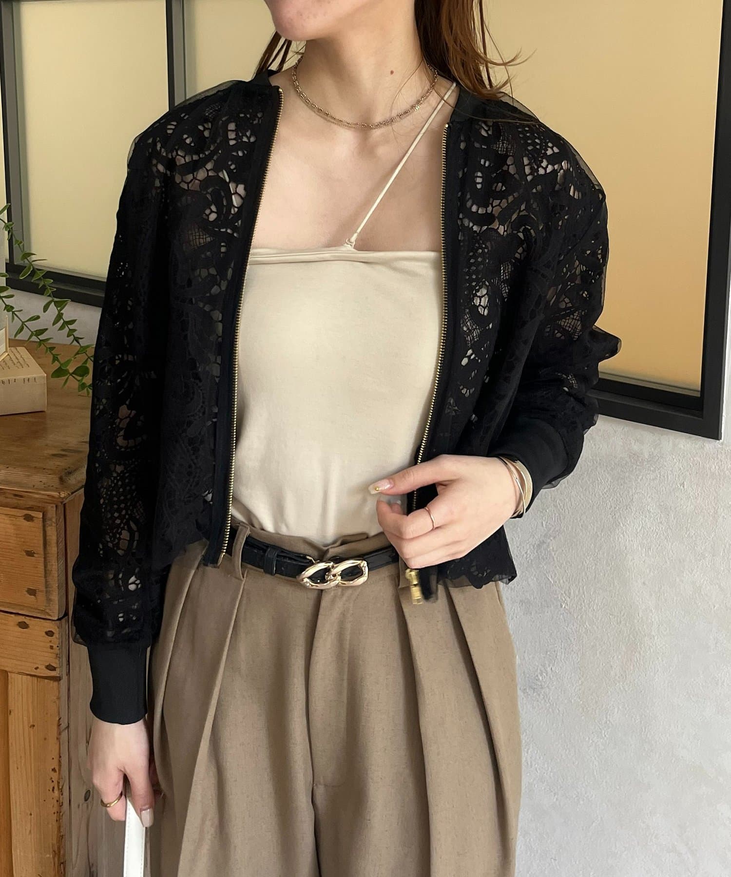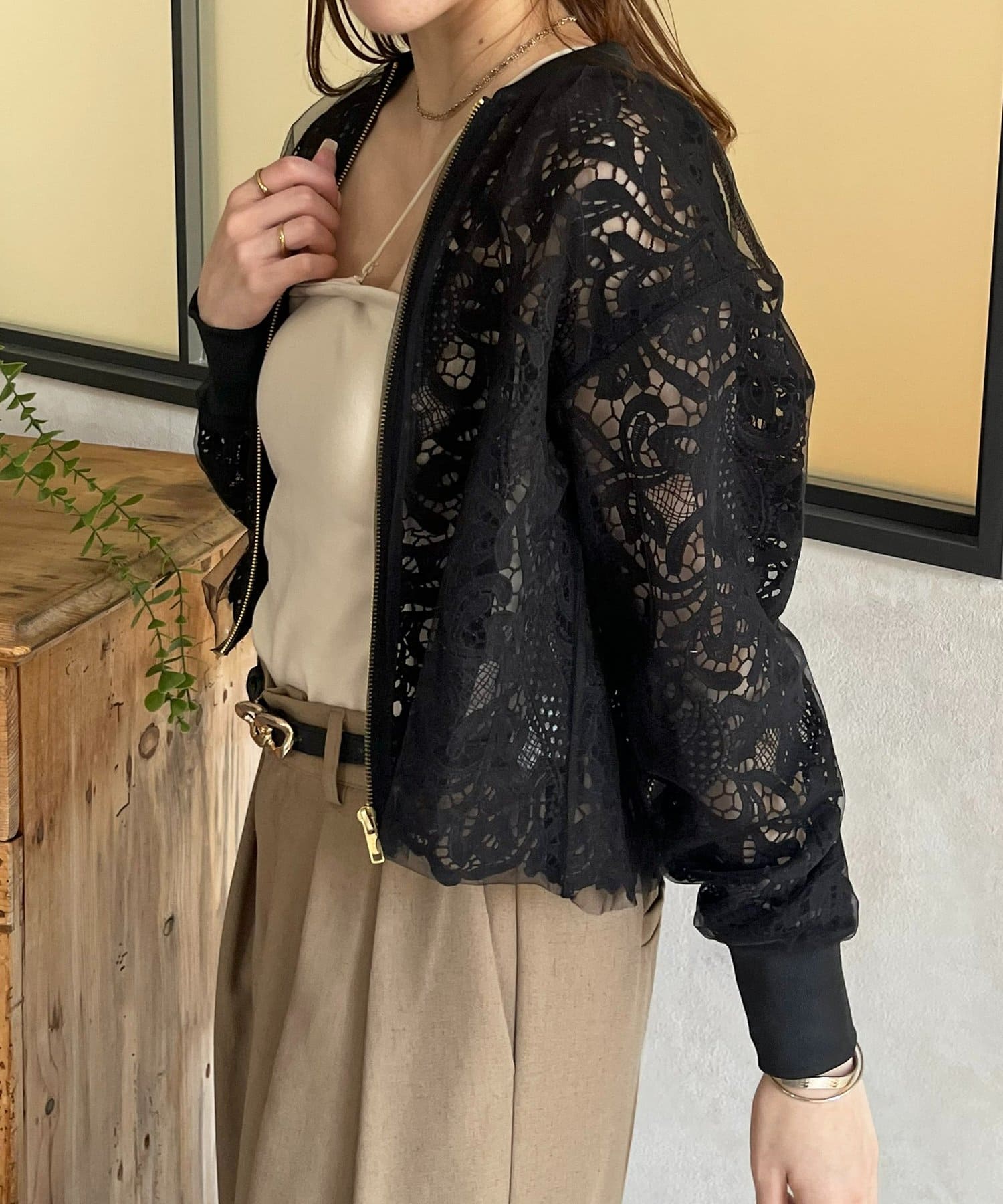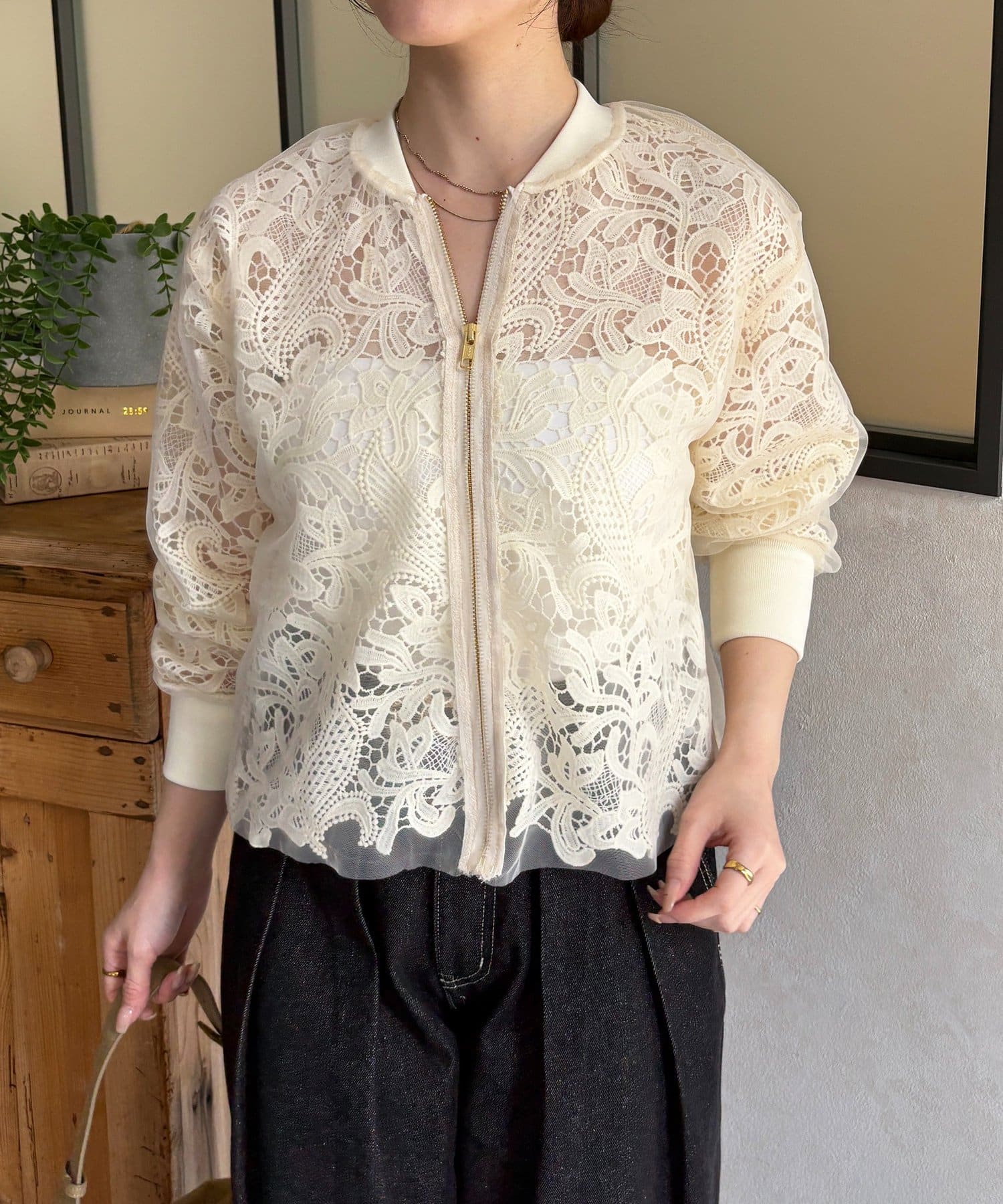 #ブルゾン#レイヤード#レース#チュール#着回し#春夏#きれいめ#おでかけ#オフィス