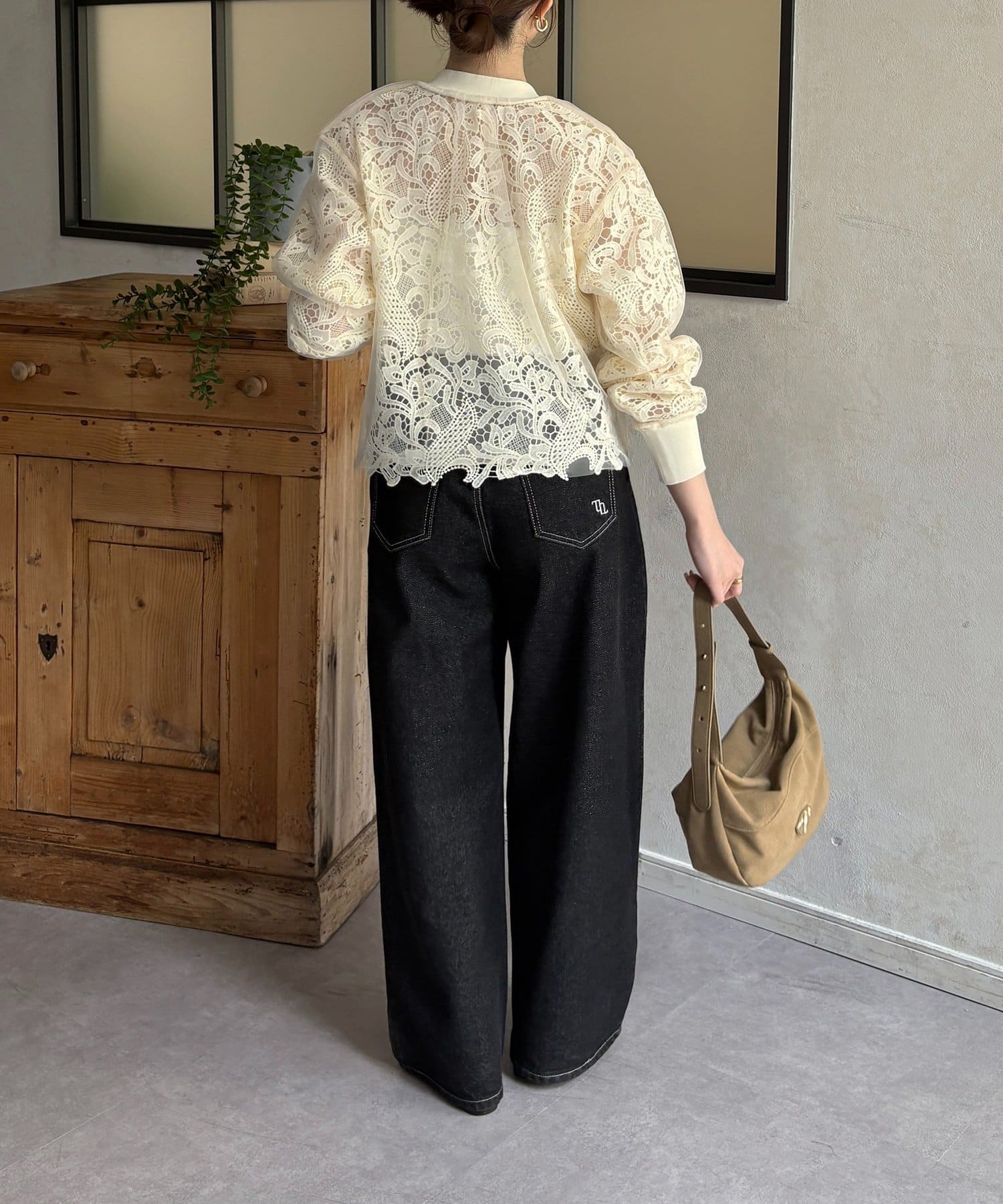 ・デニムパンツと合わせて、甘辛MIXスタイルに挑戦。