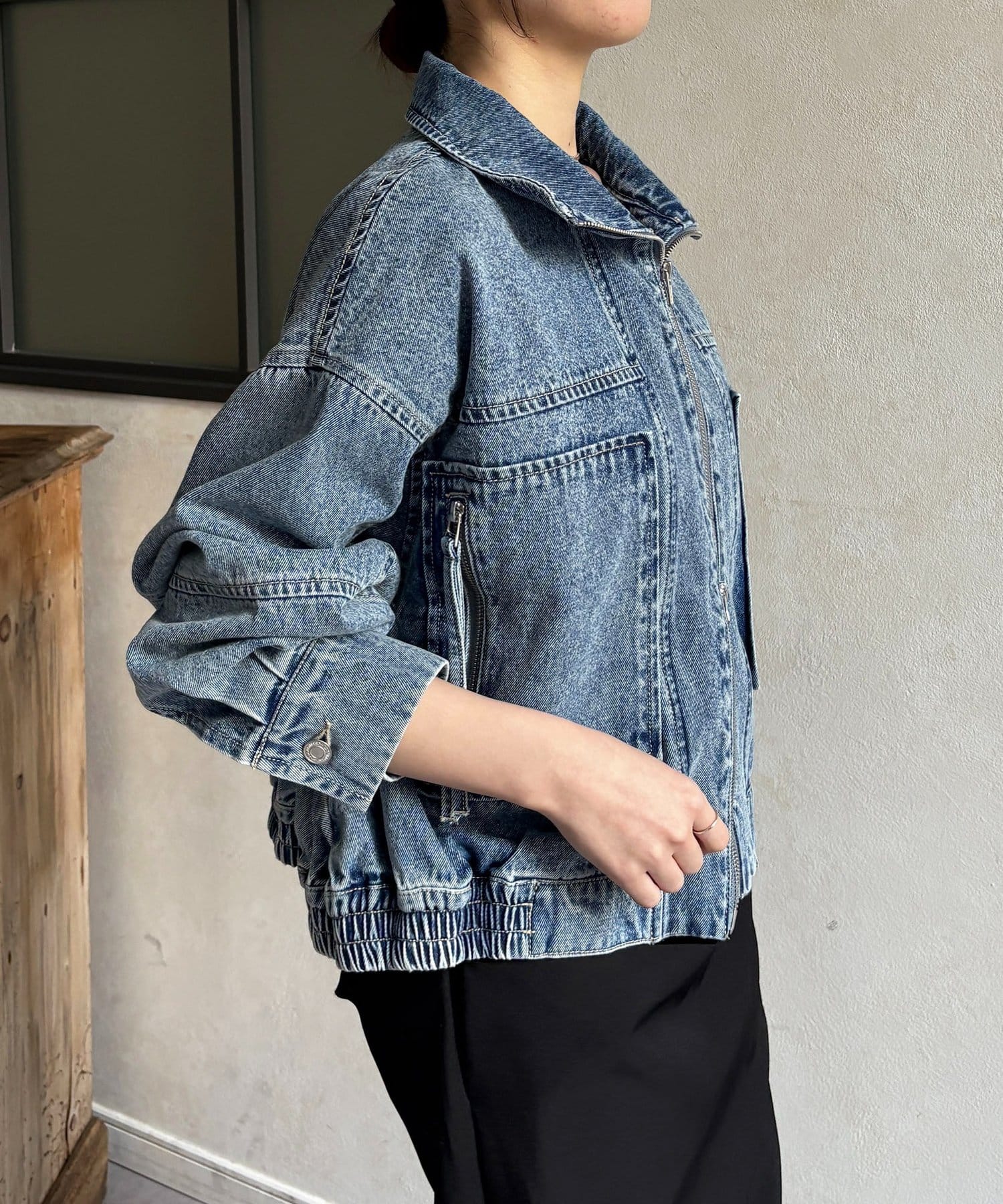 #デニムジャケット #スタンドネック #ステッチ #デニム #きれいめ #カジュアル