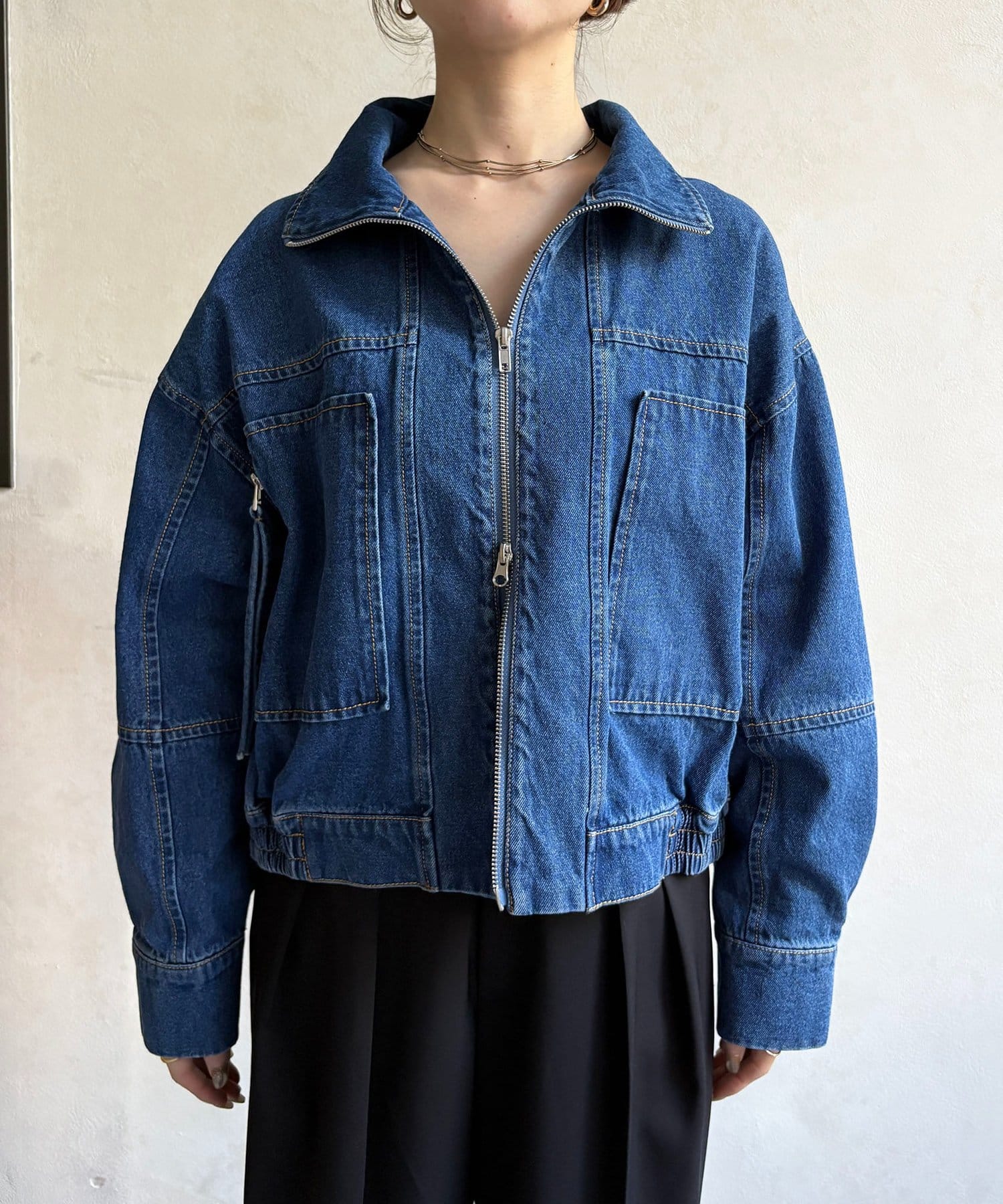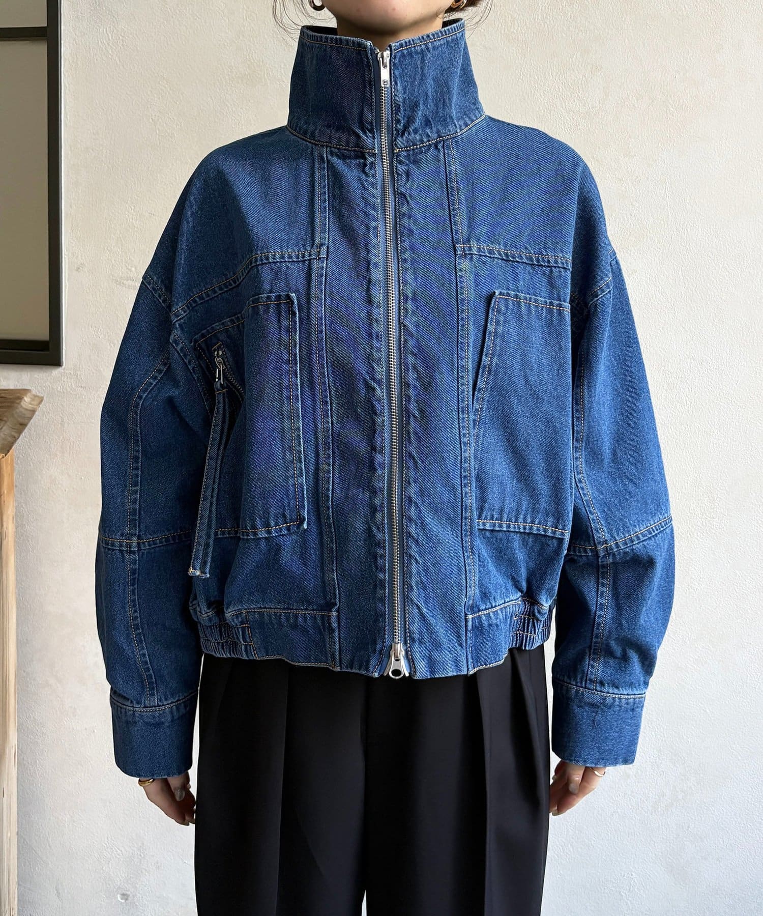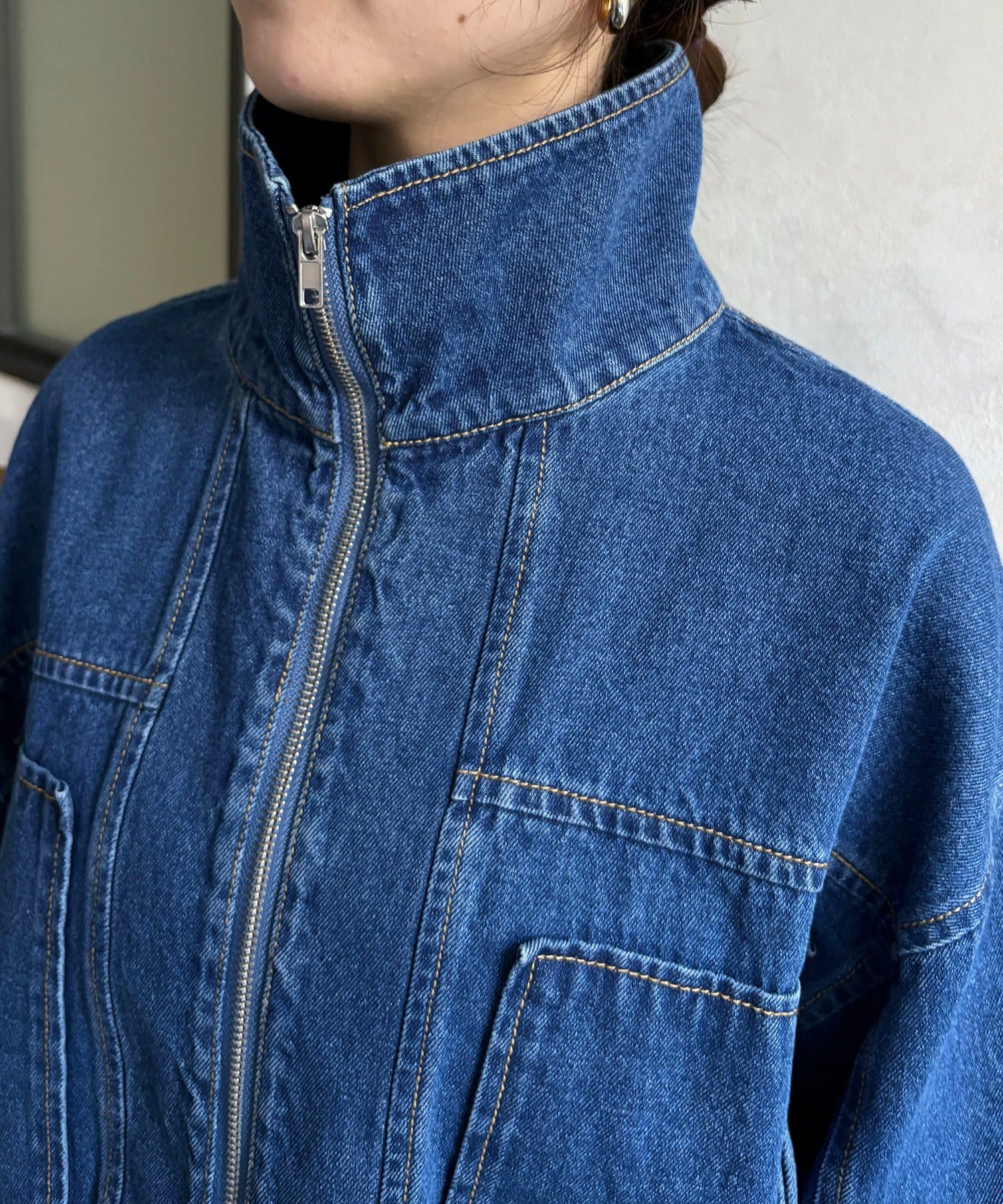 スタンドネックステッチデニムジャケット