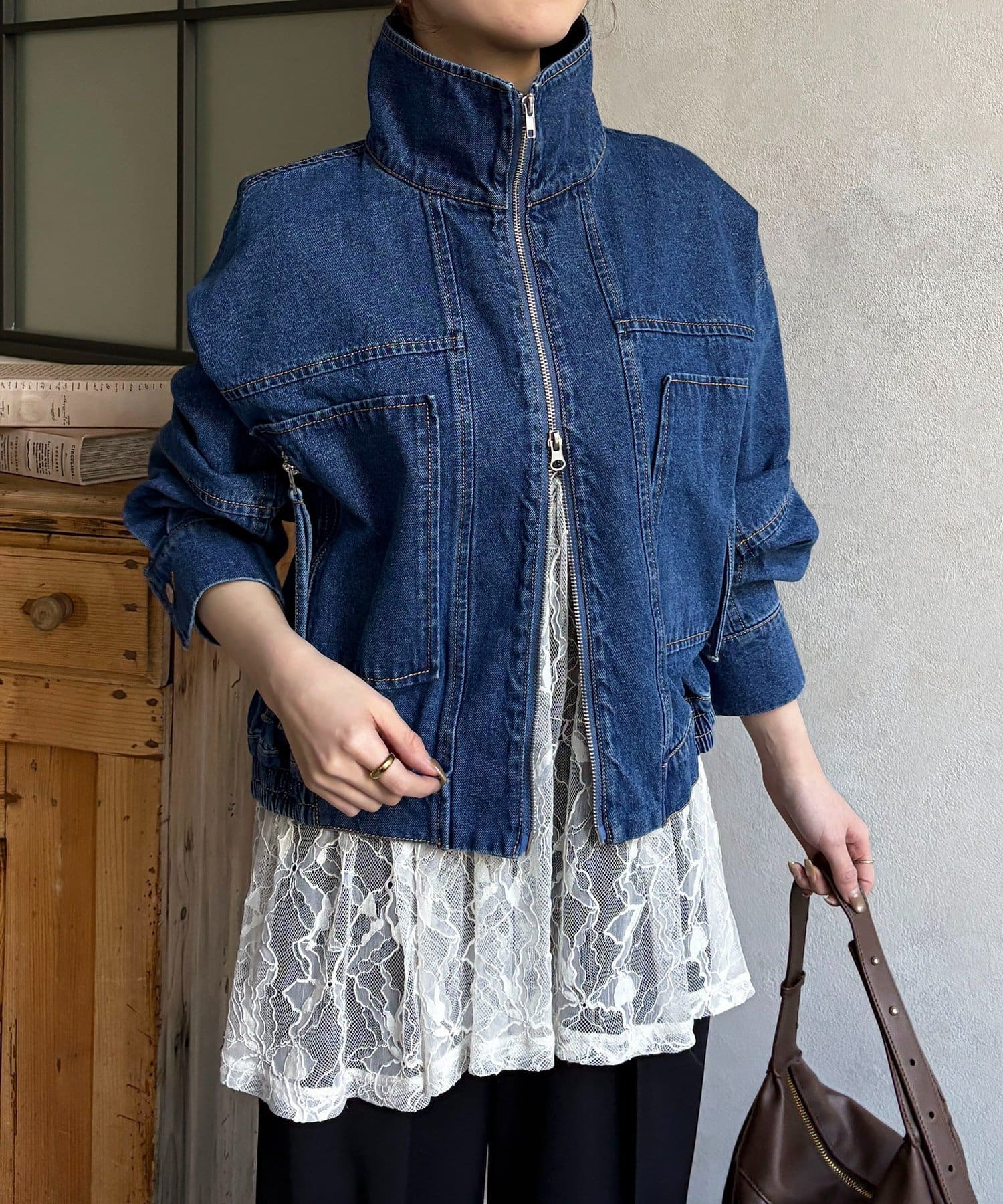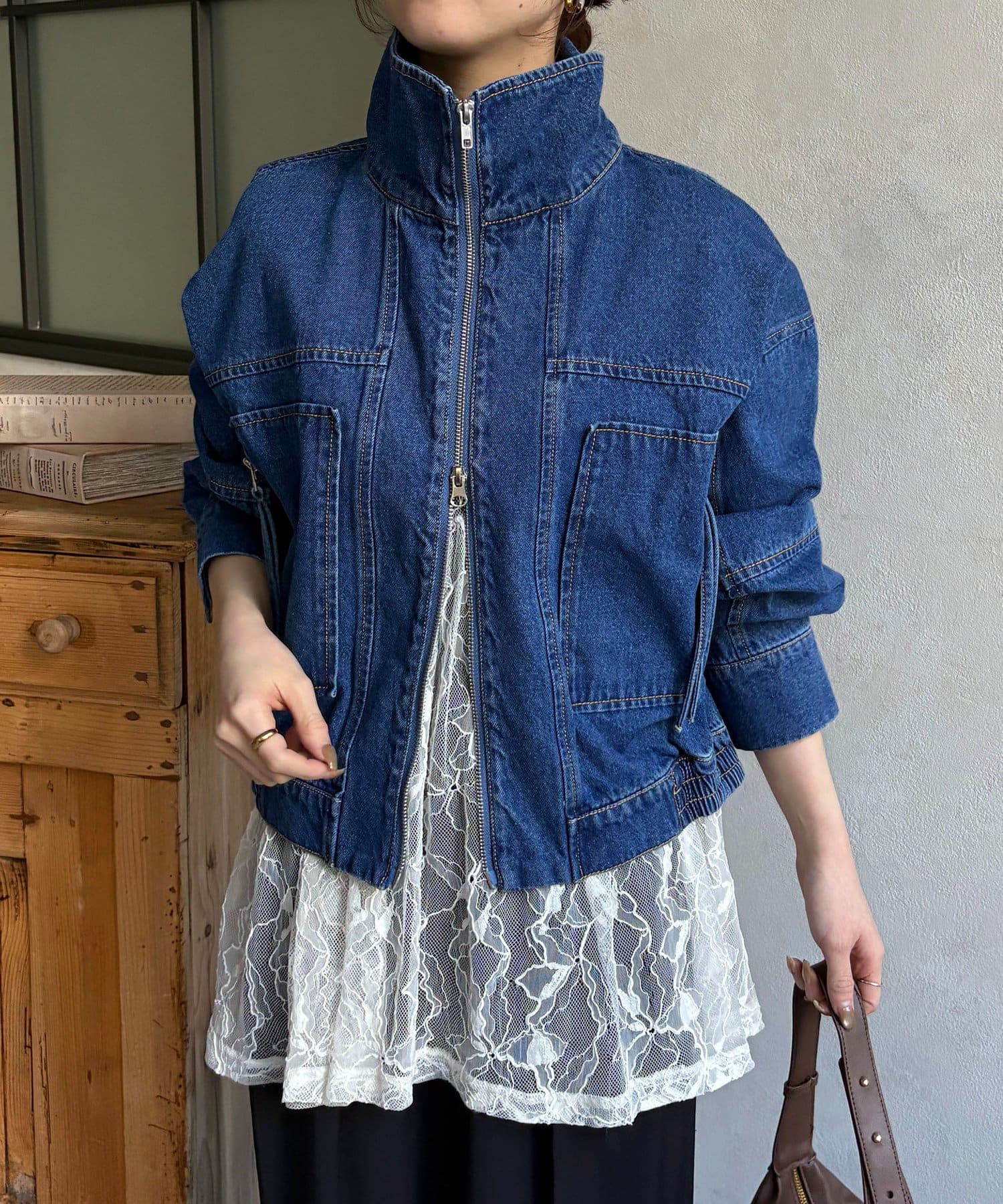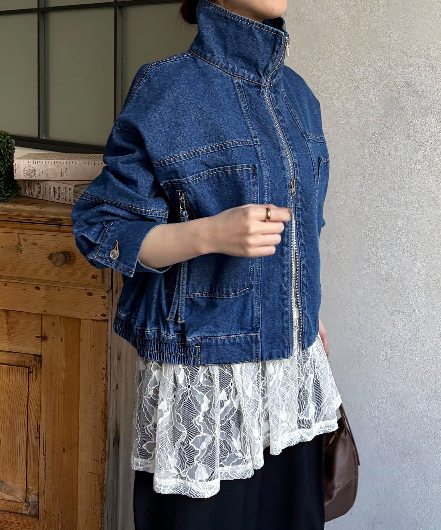 スタンドネックステッチデニムジャケット