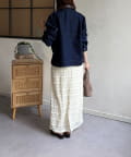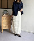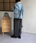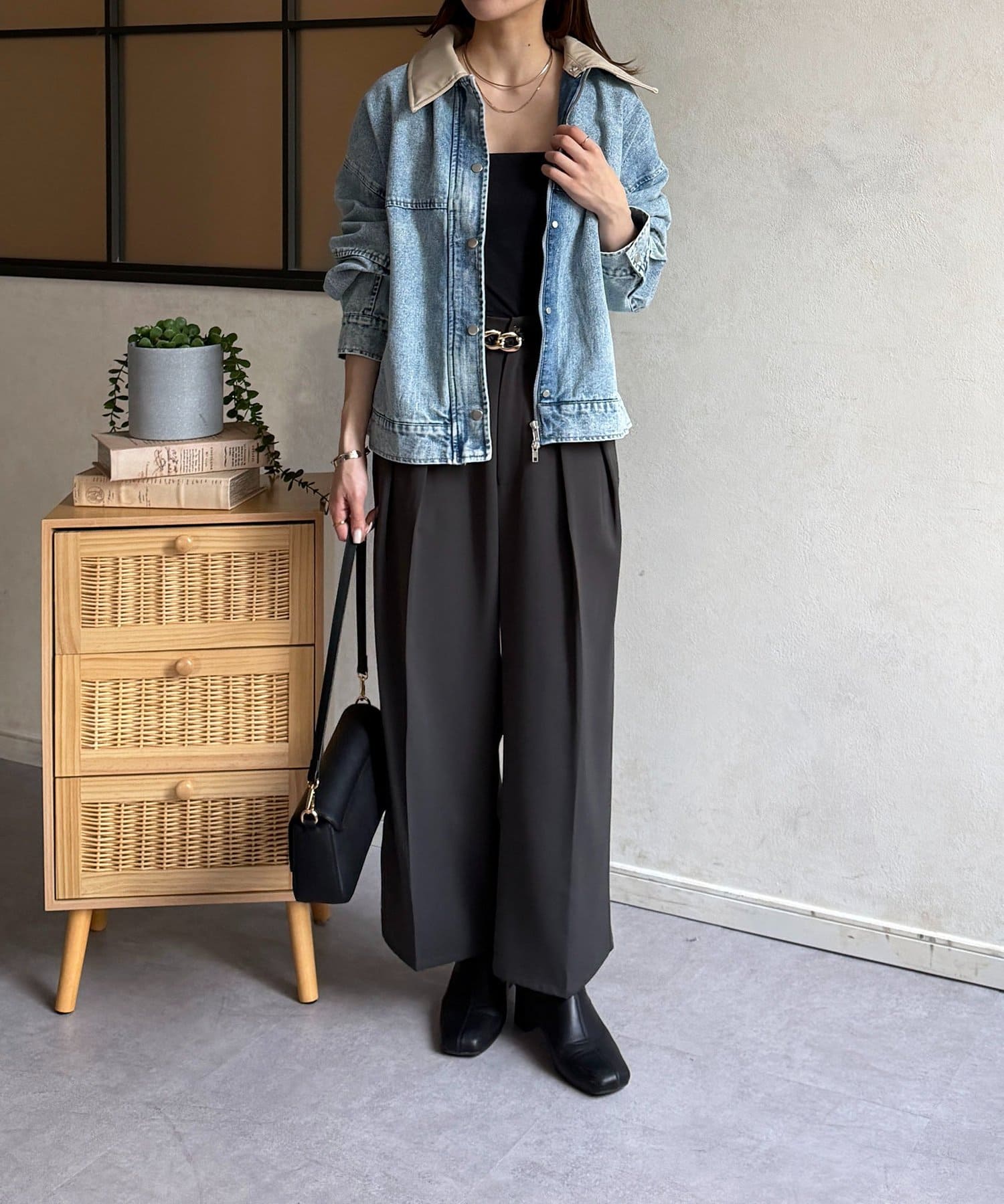・ブラックのタンクトップとワイドパンツに羽織って、洗練された大人の雰囲気に。