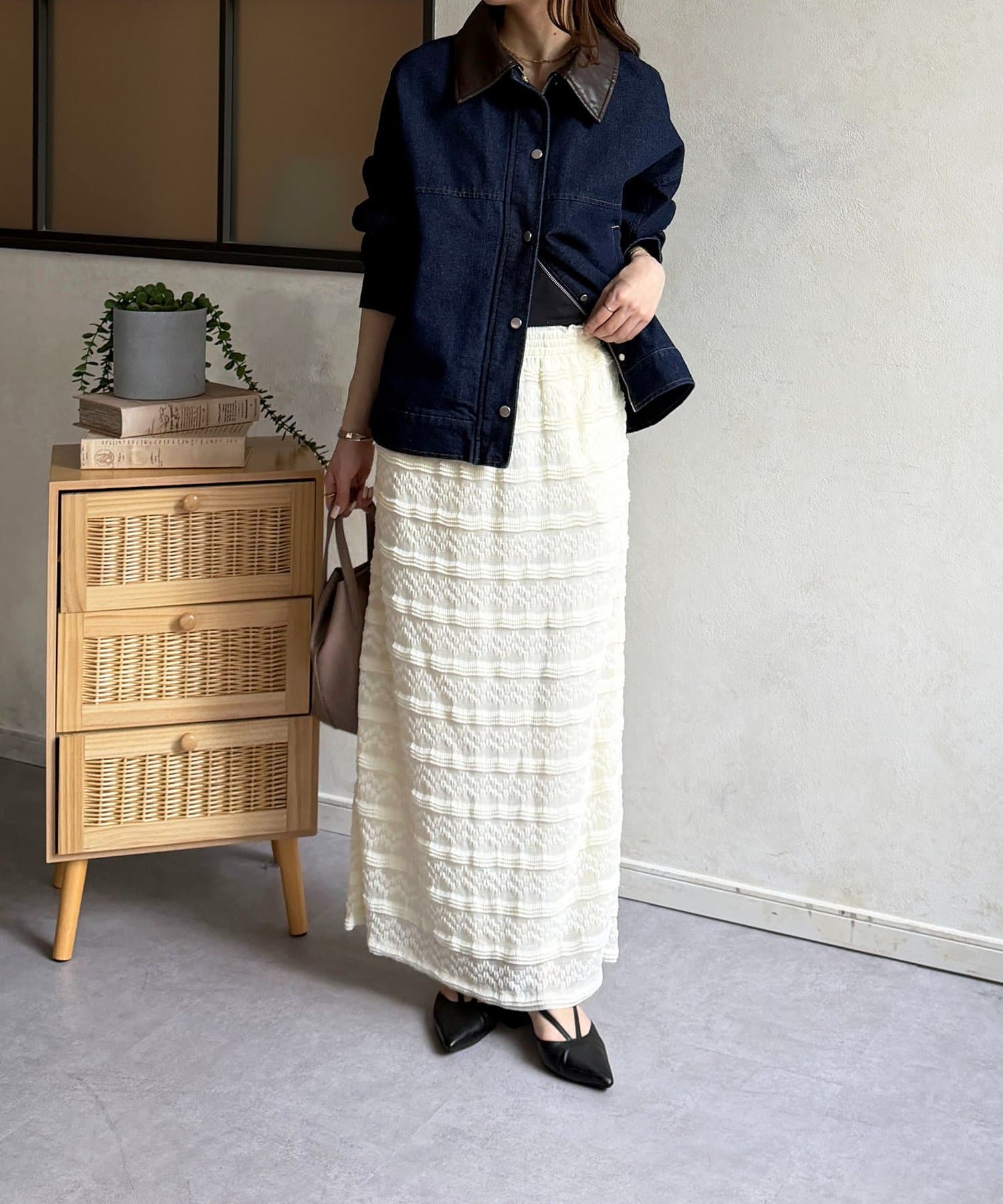・ プリーツスカートやレースブラウスと合わせて、甘辛MIXスタイルを楽しんで。