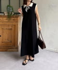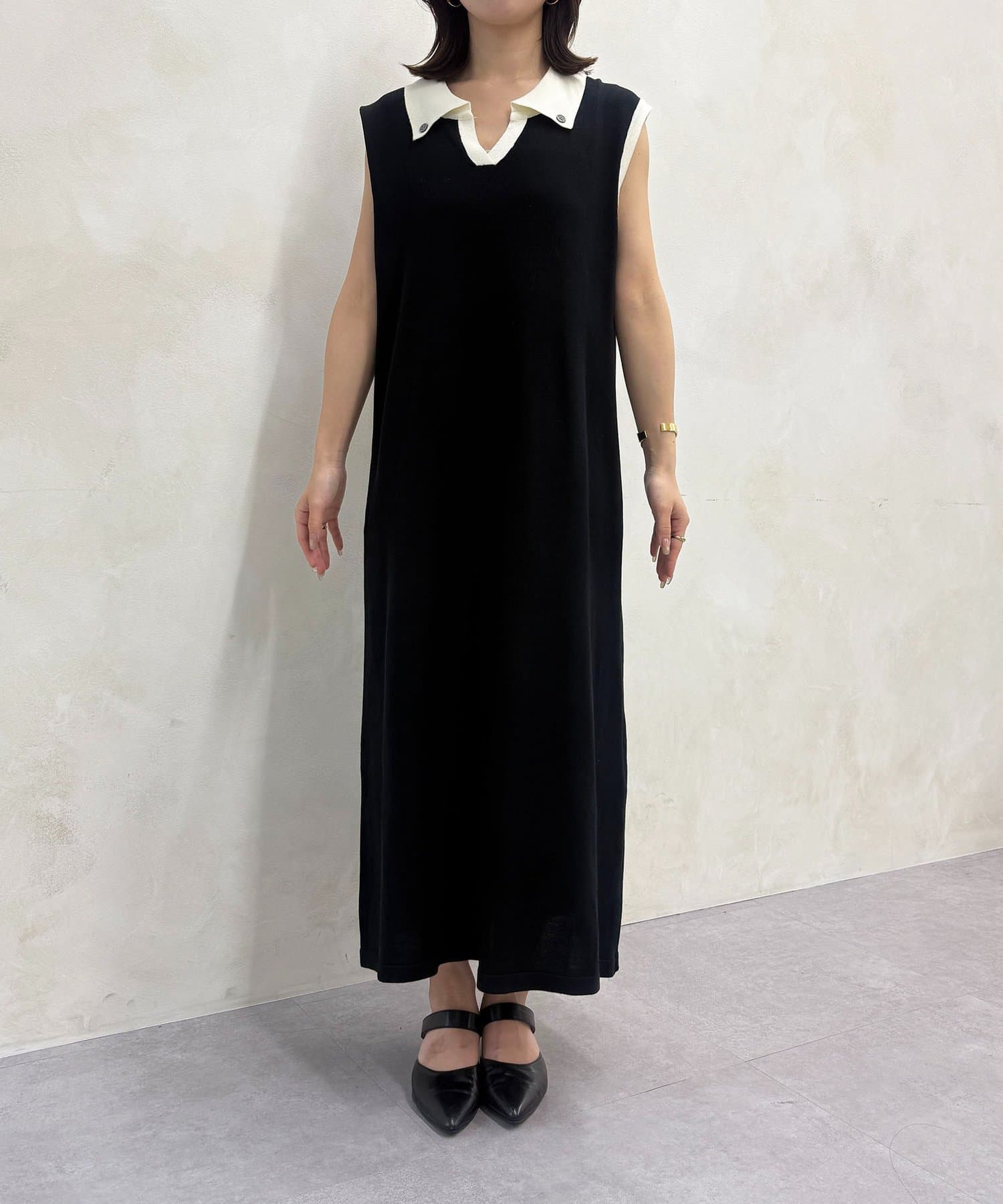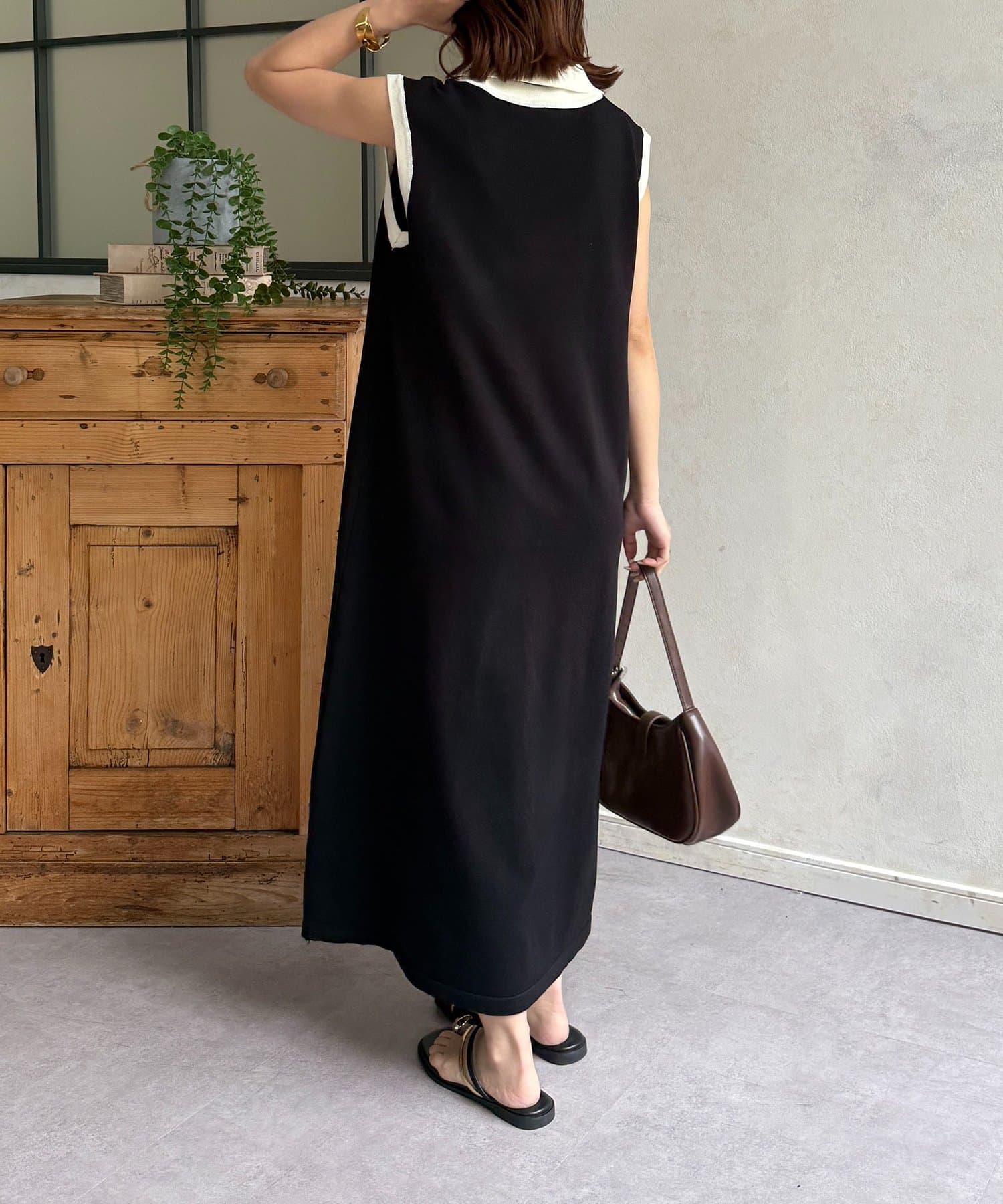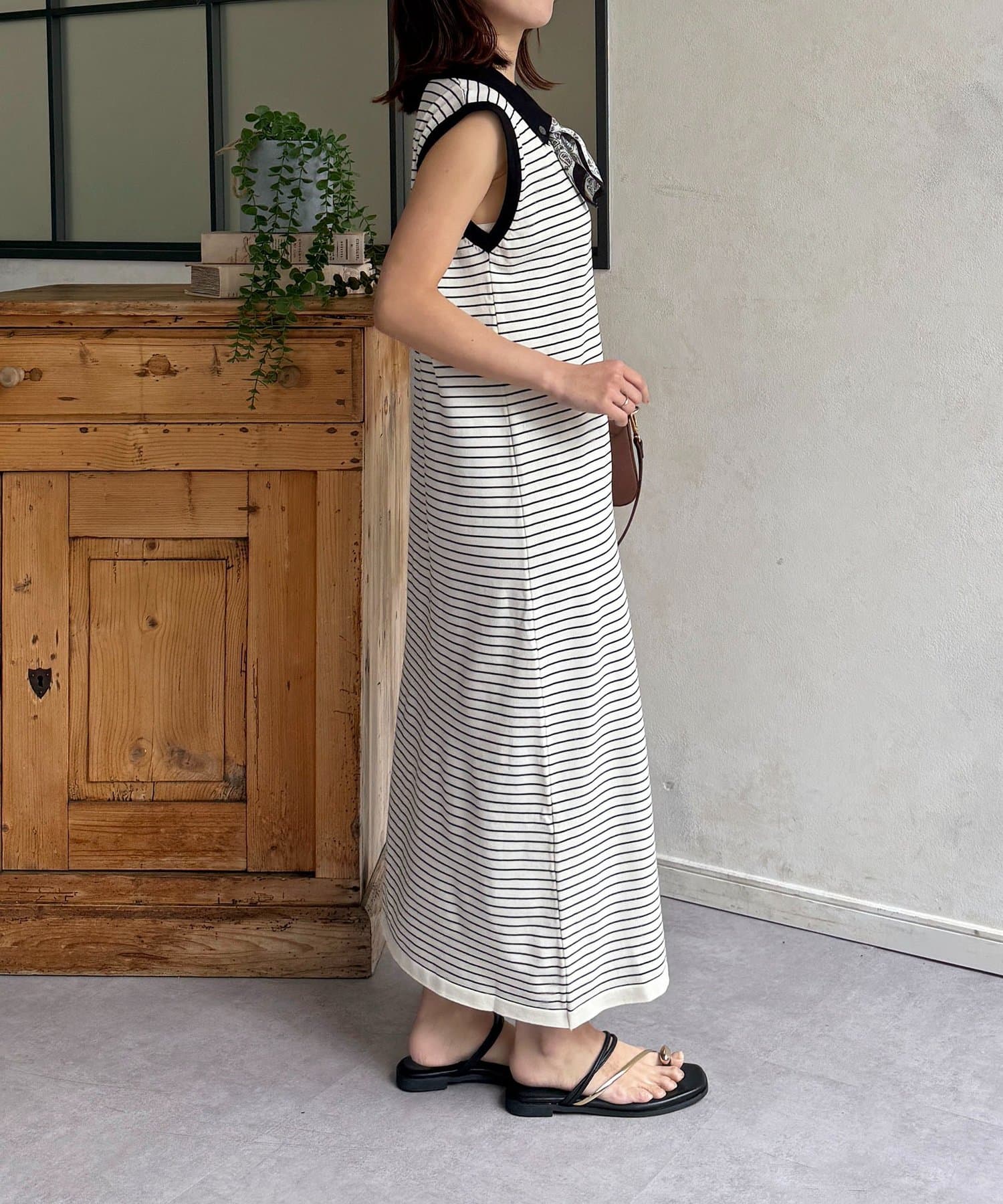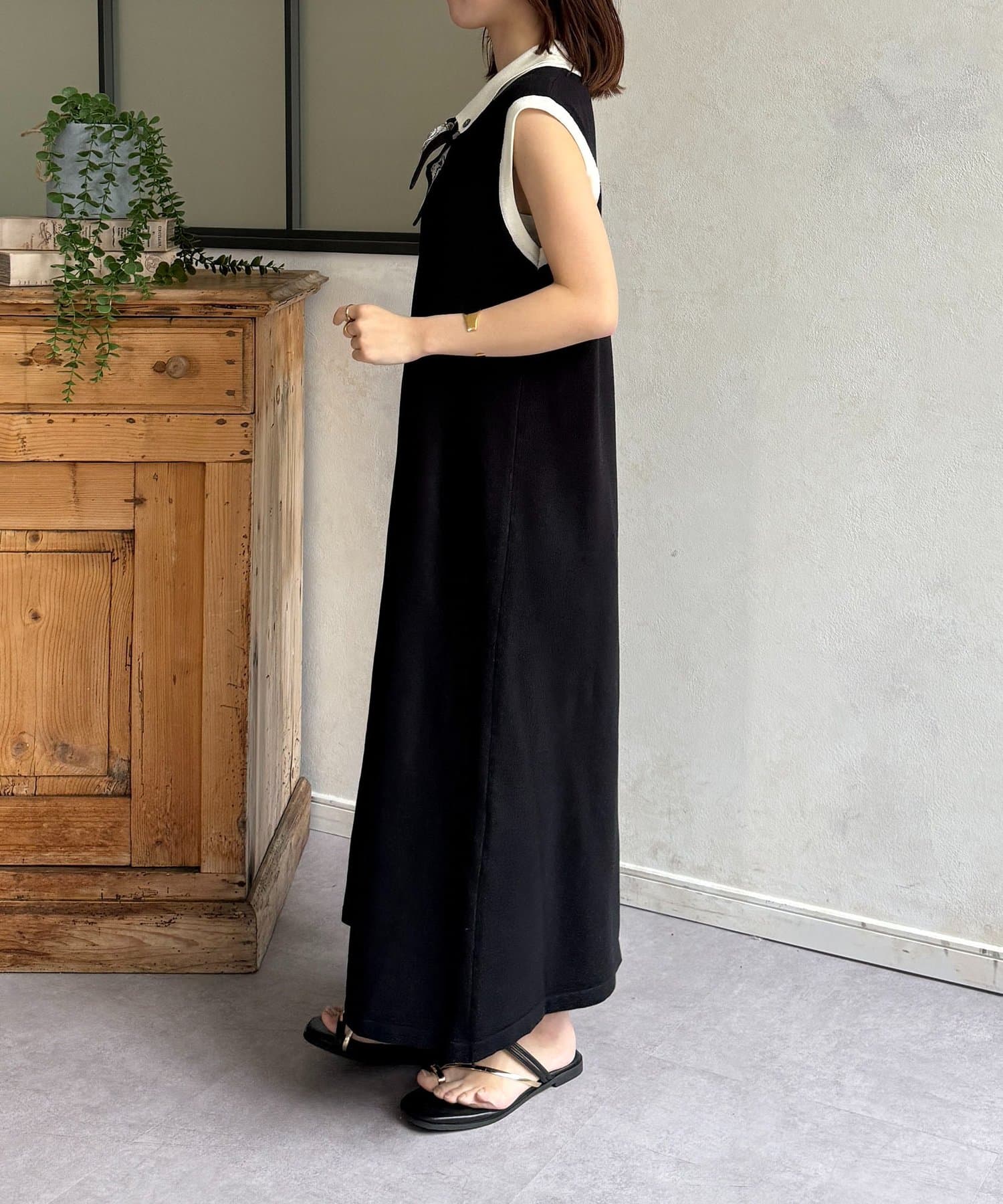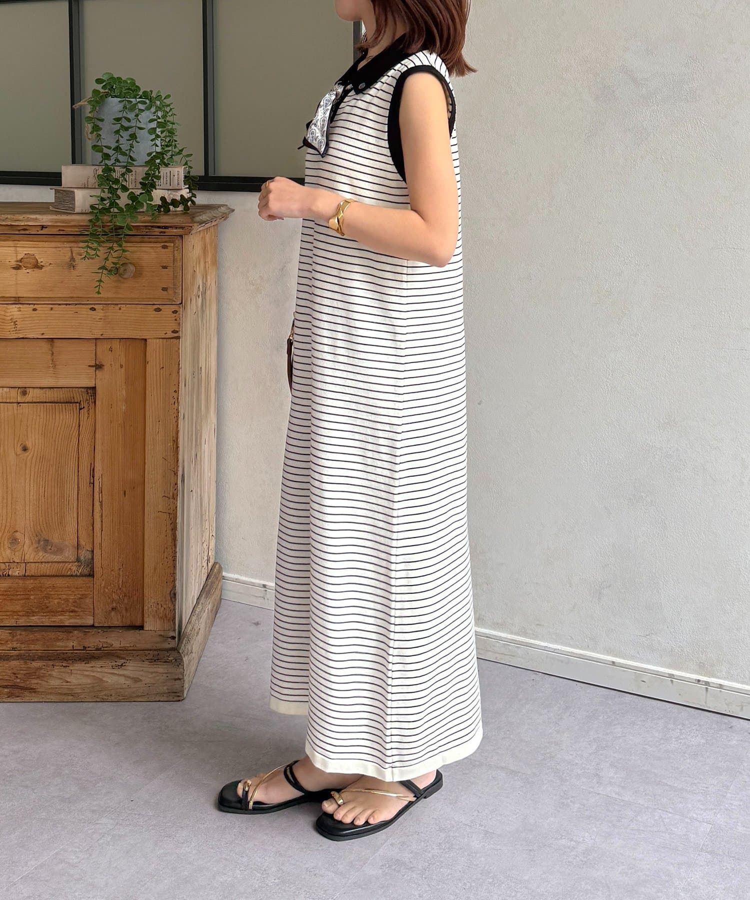 Thevon.(ゼヴォン) スカーフ付き襟配色ナローワンピース