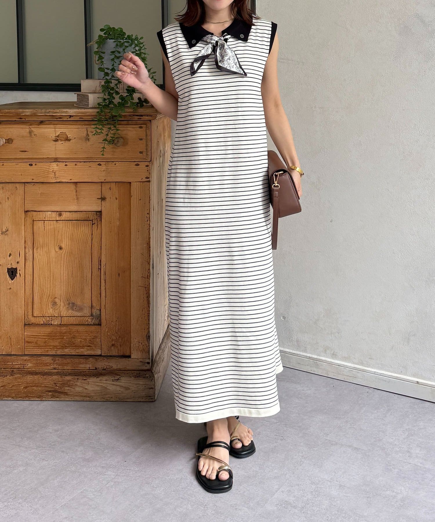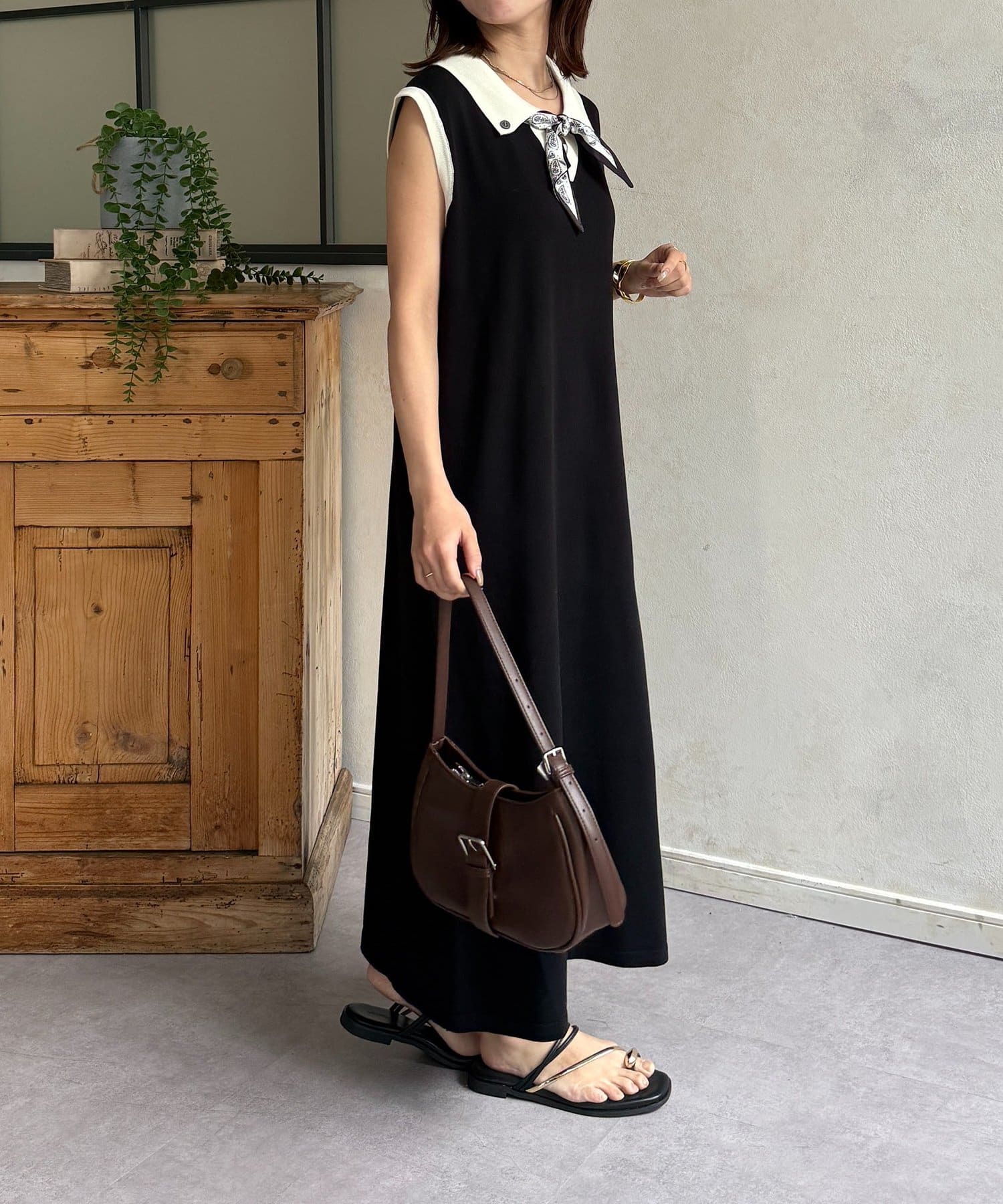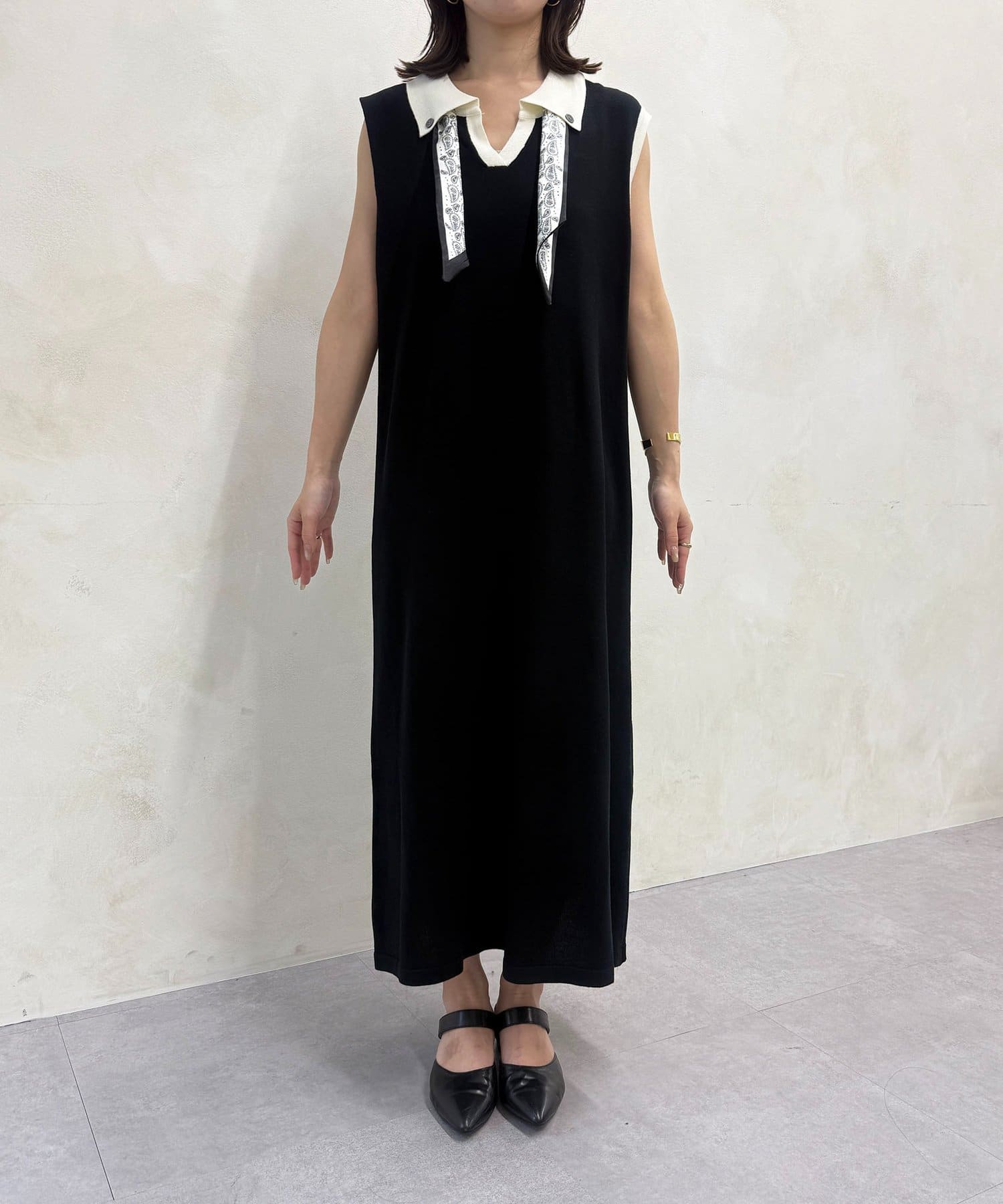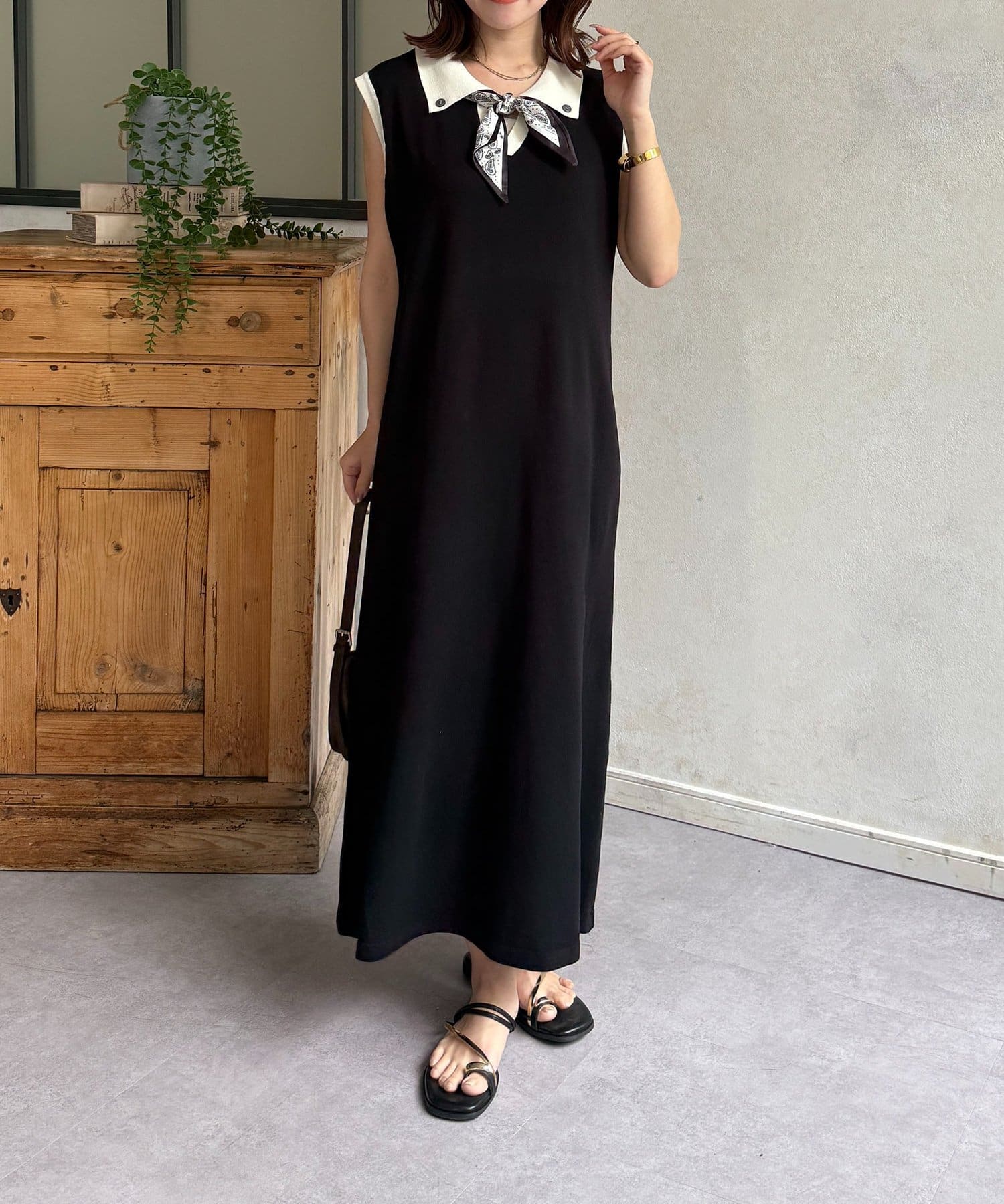 #ワンピース#スカーフ付き#襟配色#ナロー#春服#きれいめ#おでかけ