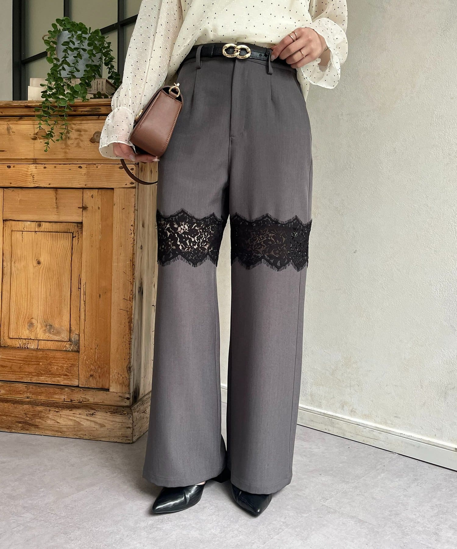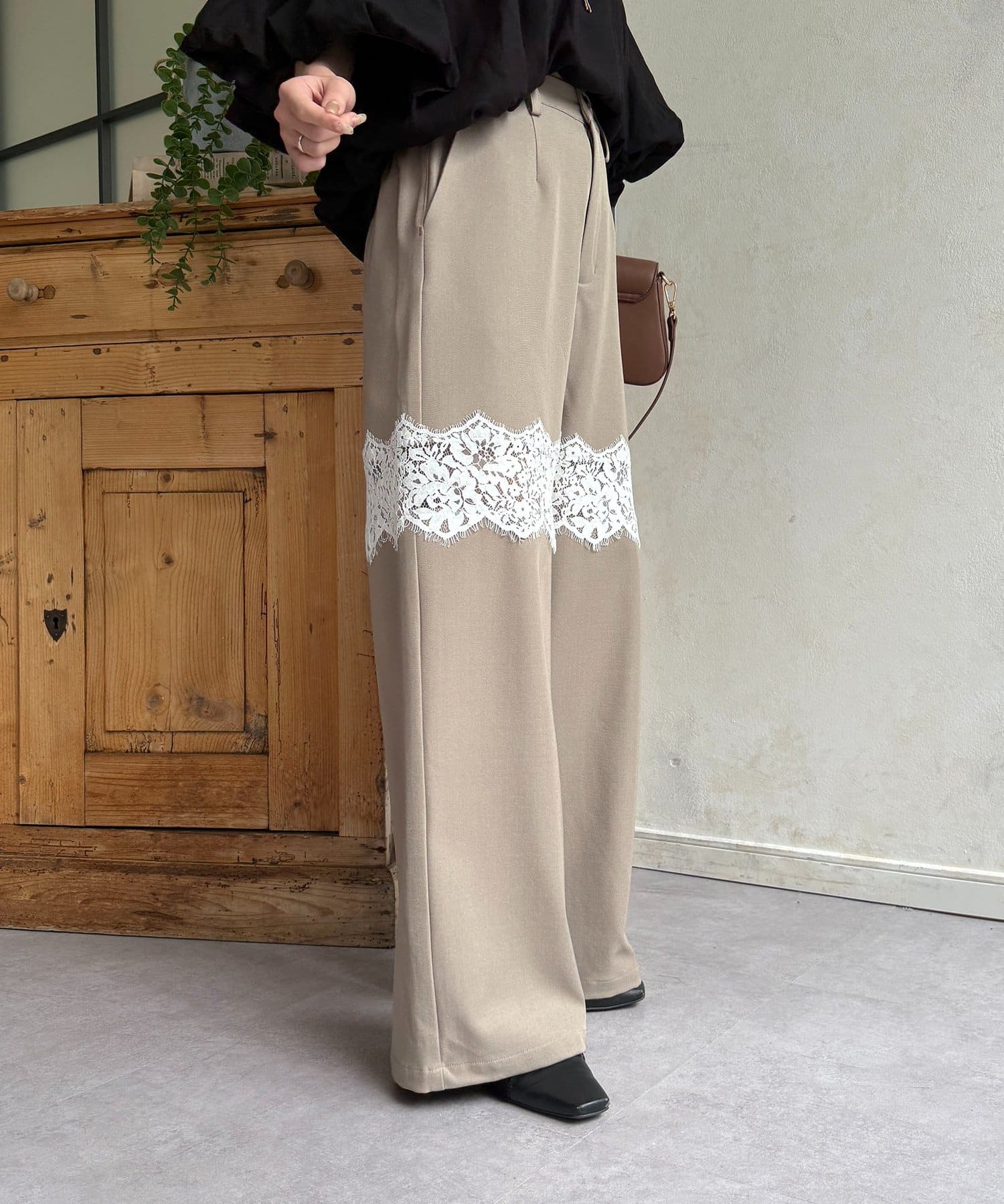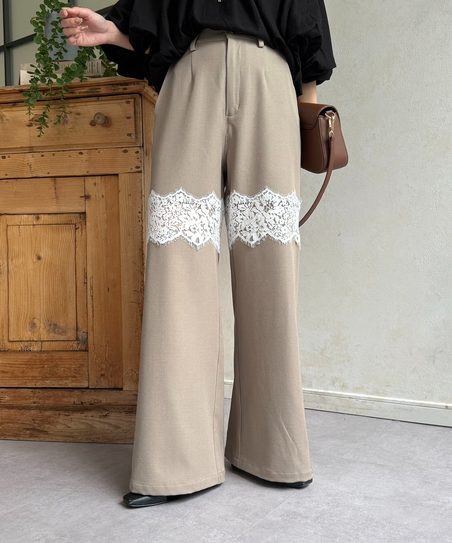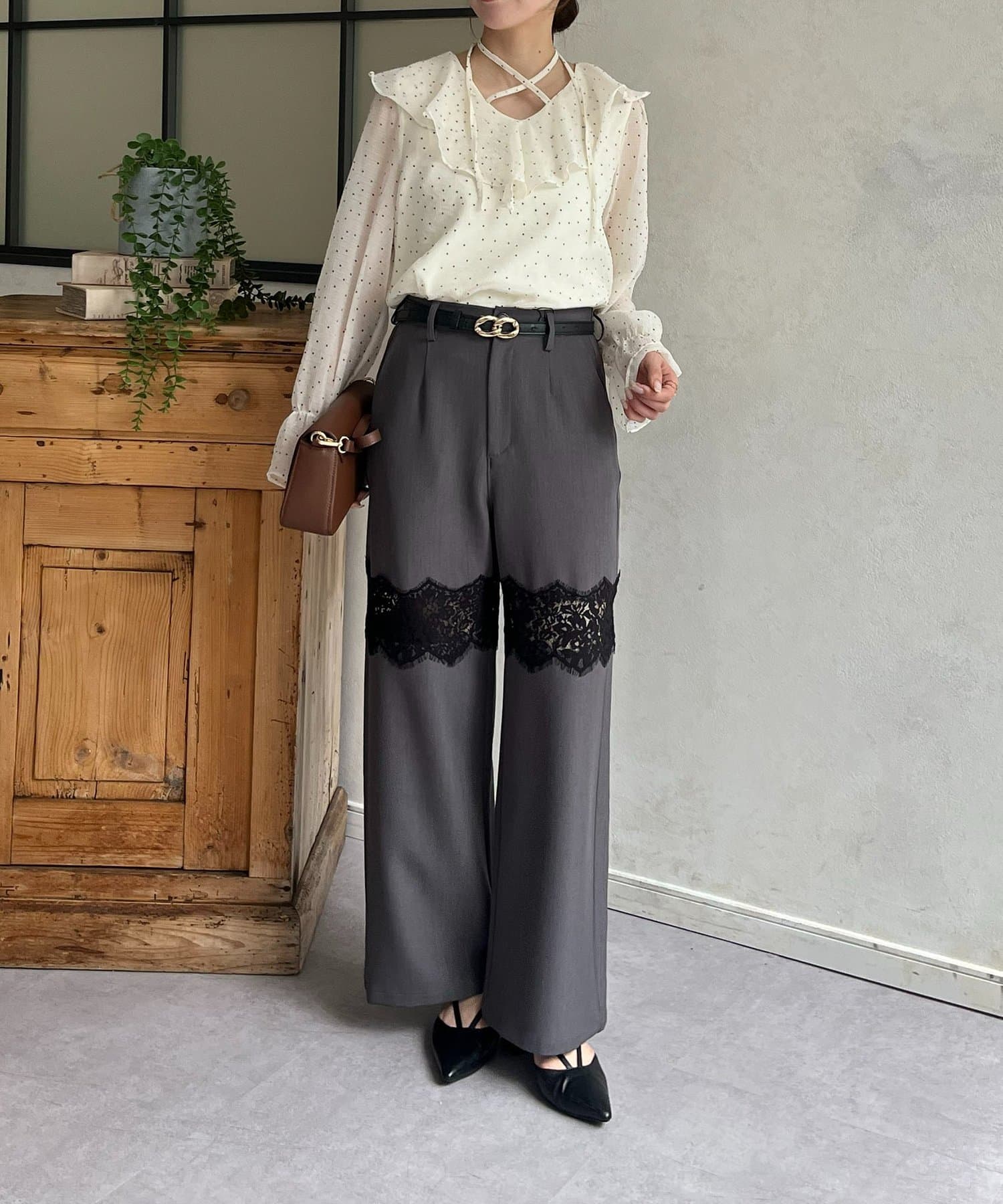 繊細レースが抜け感漂うスラックス
