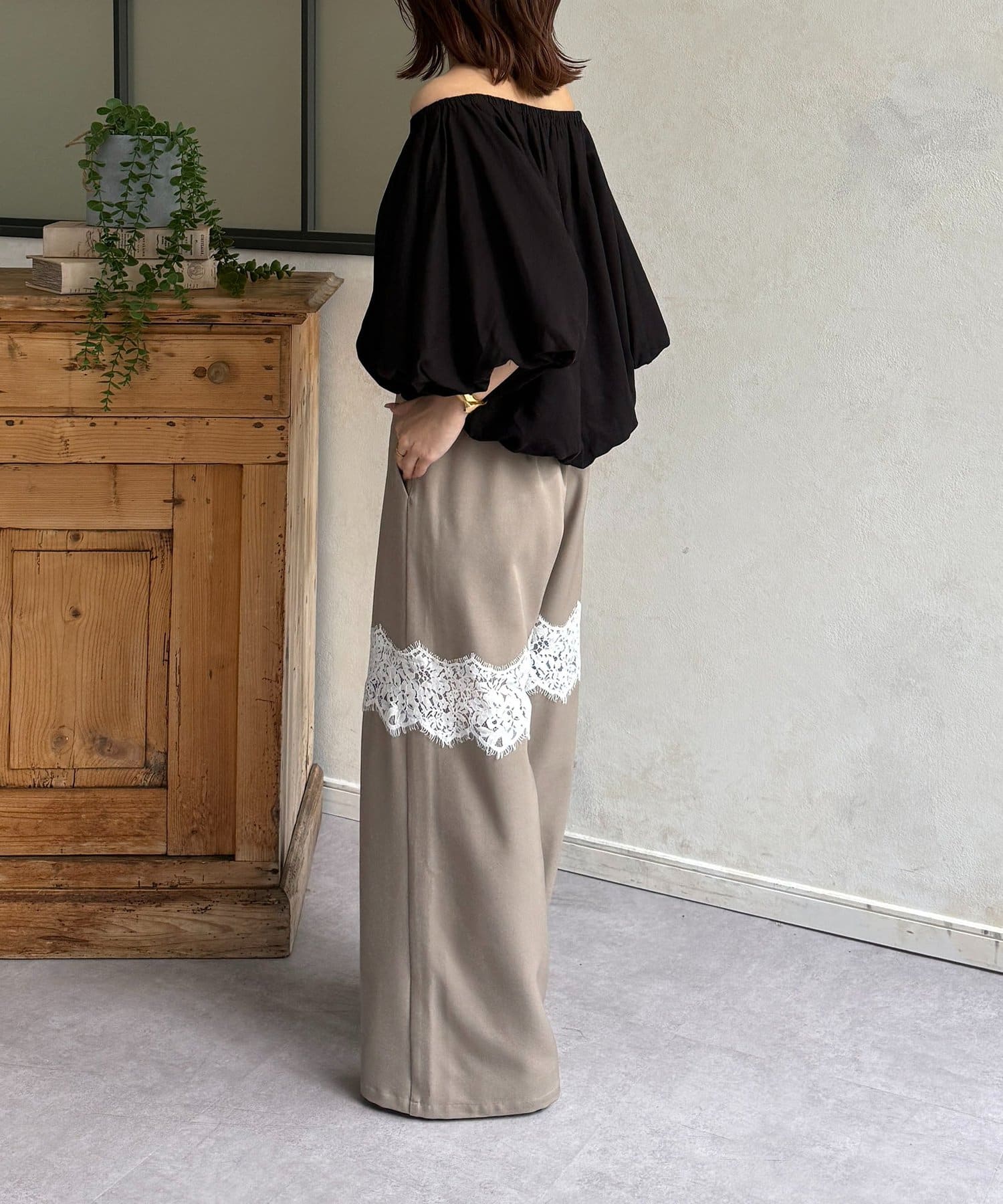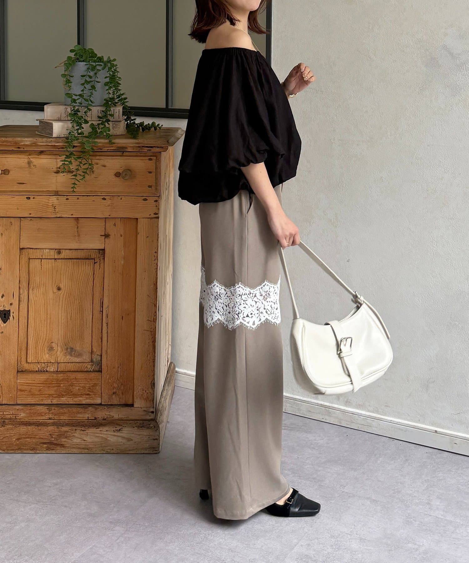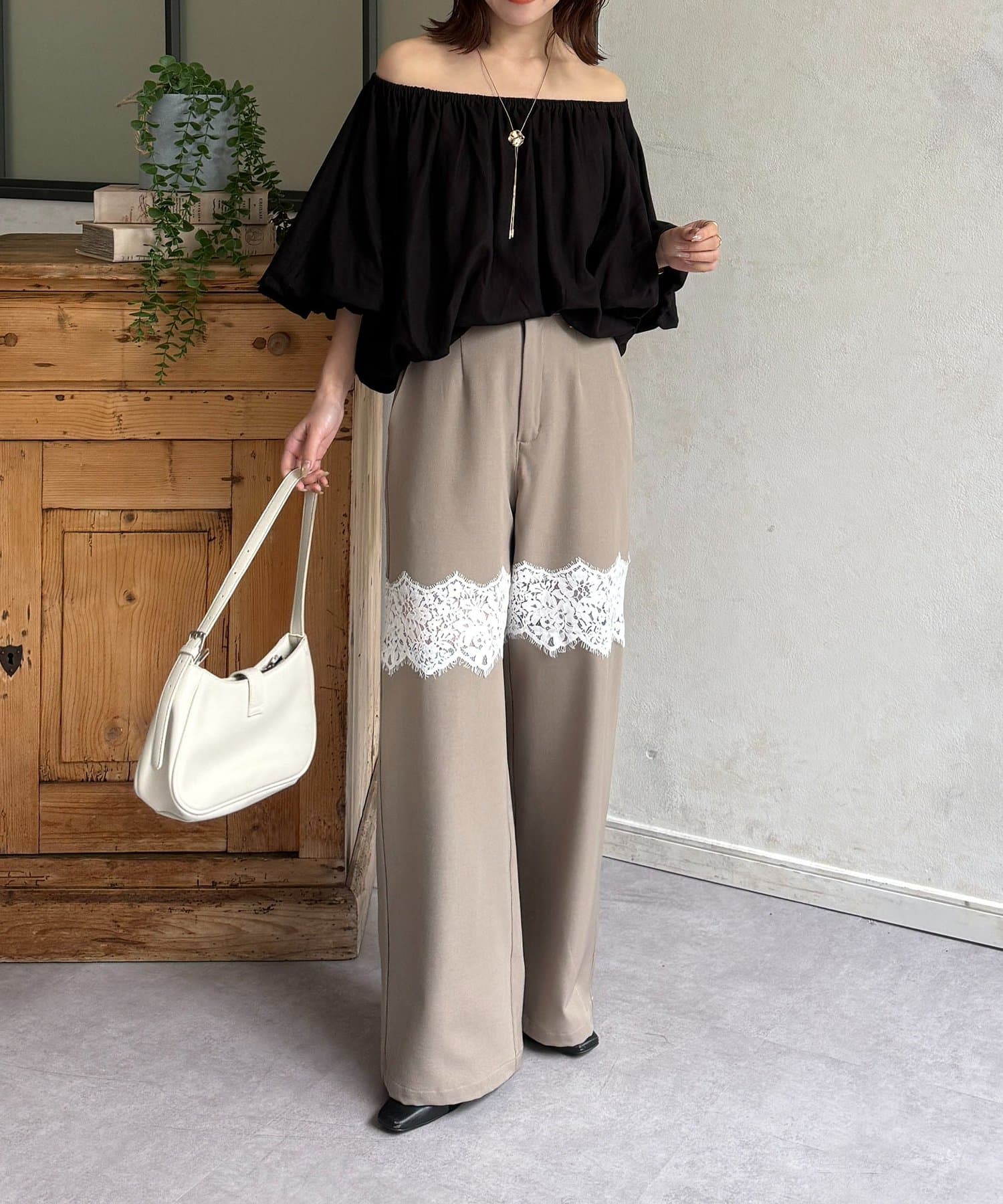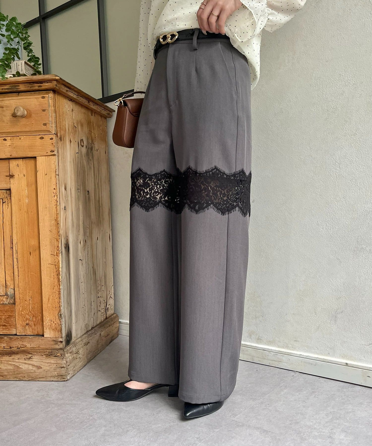 繊細レースが抜け感漂うスラックス