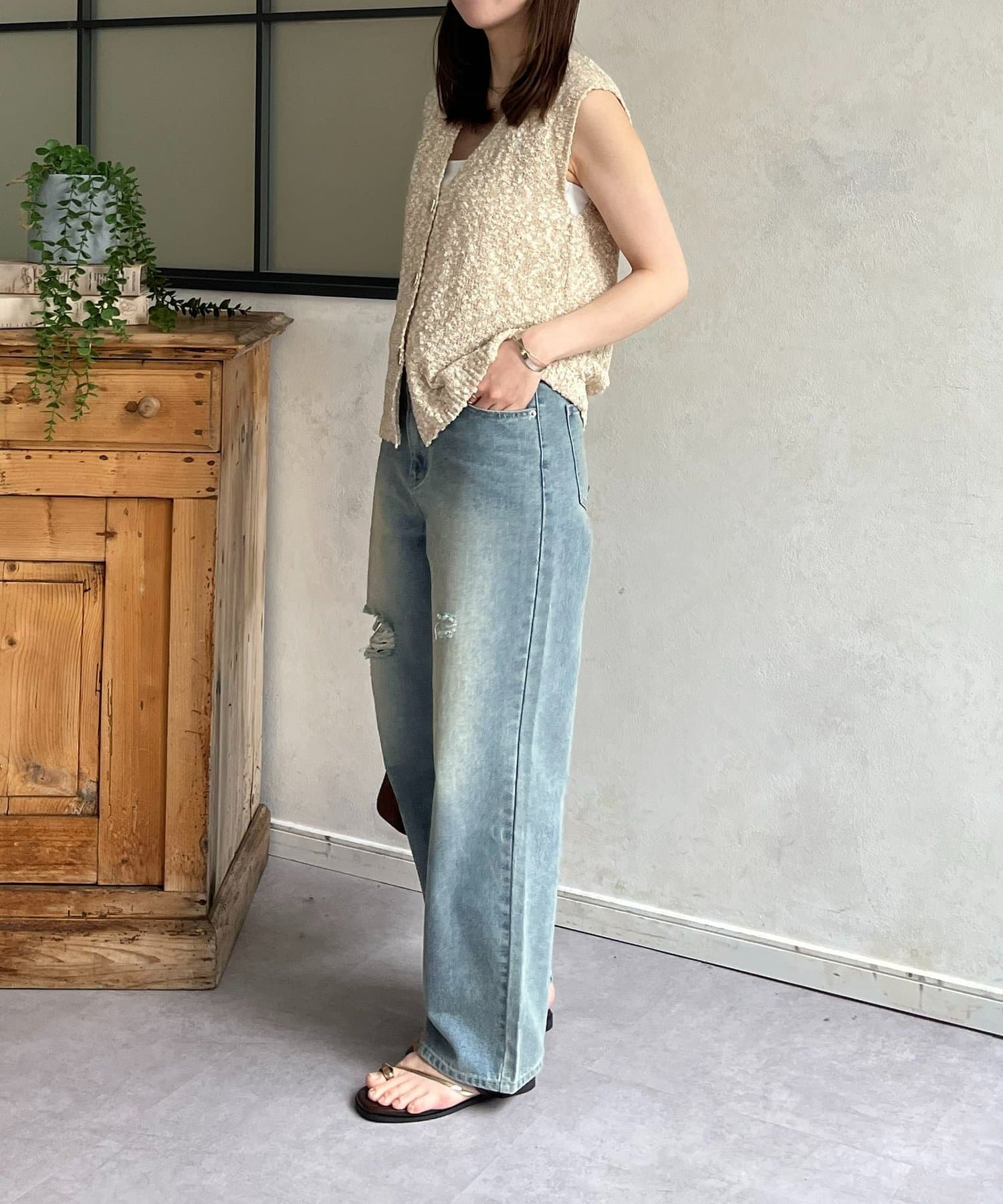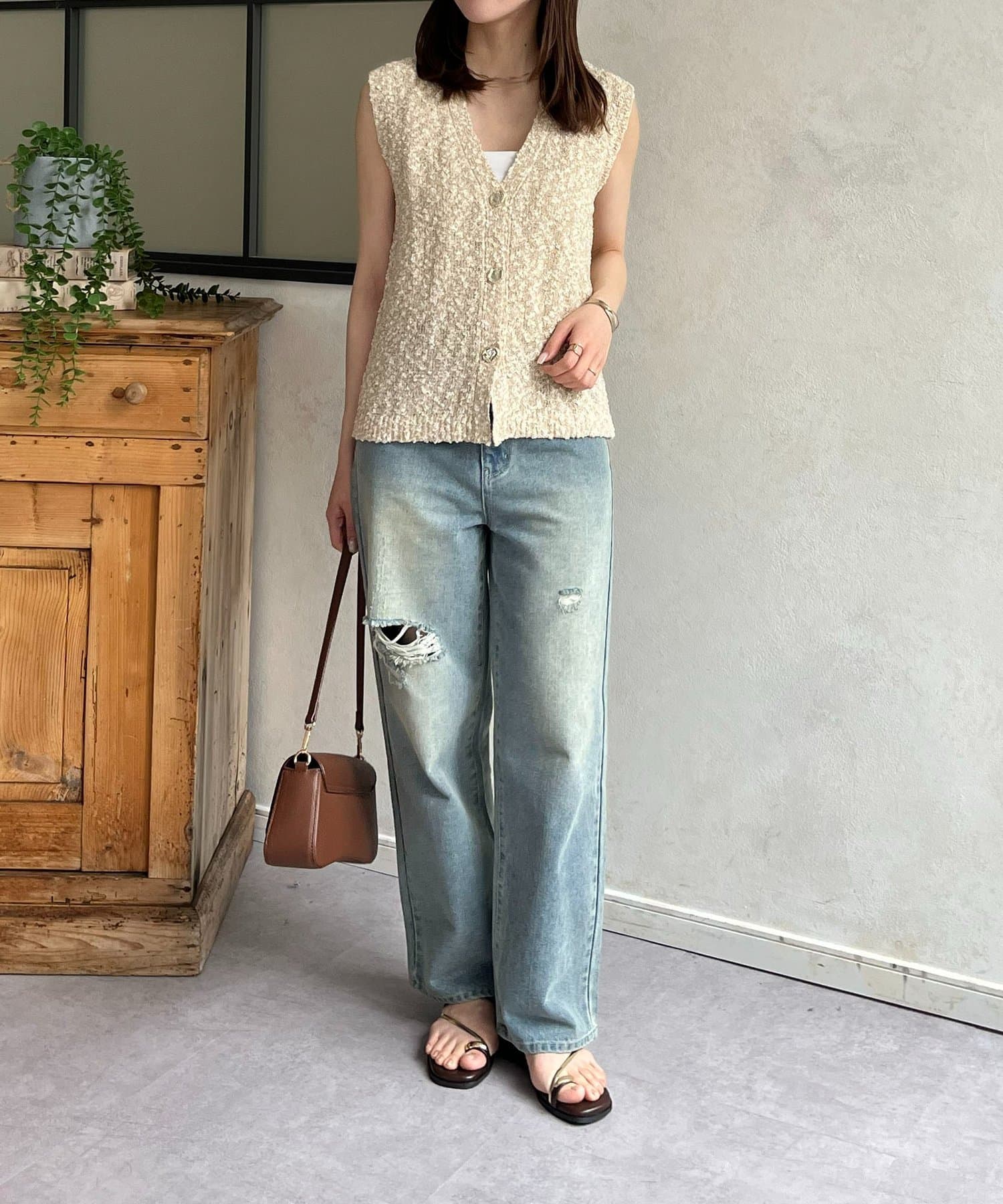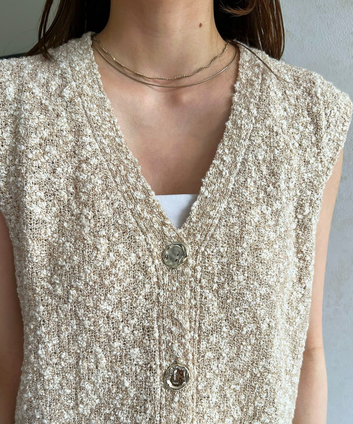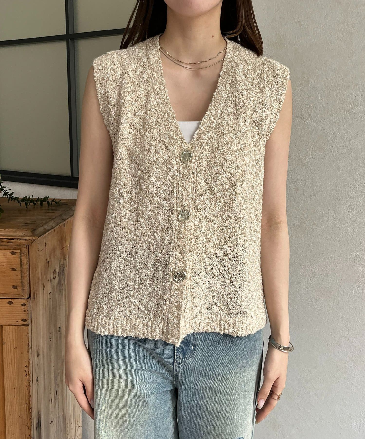 • Thevon.(ゼヴォン) MIXニュアンスボタンノースリニット