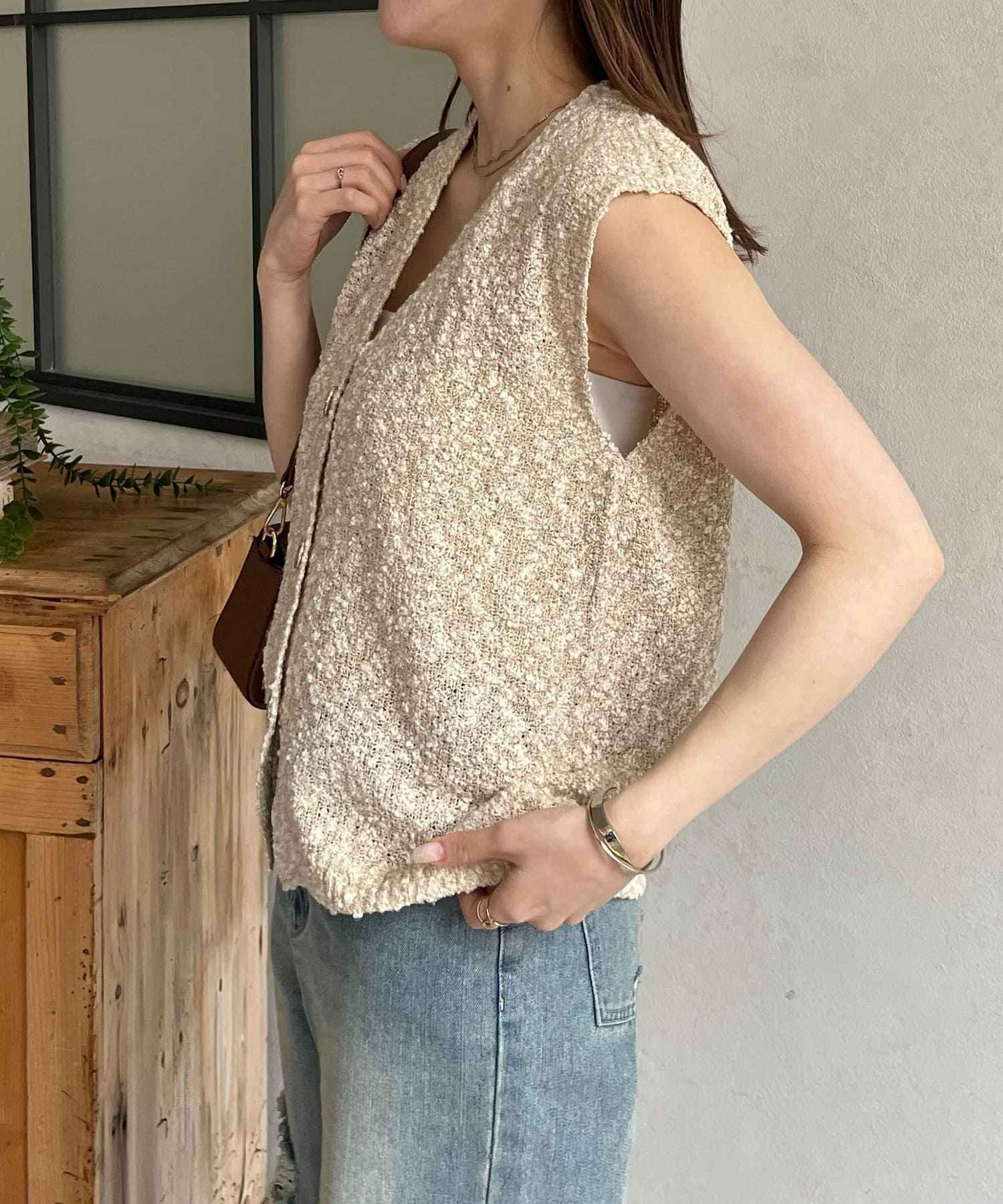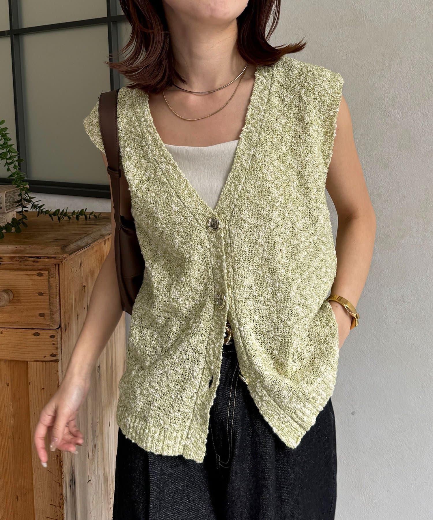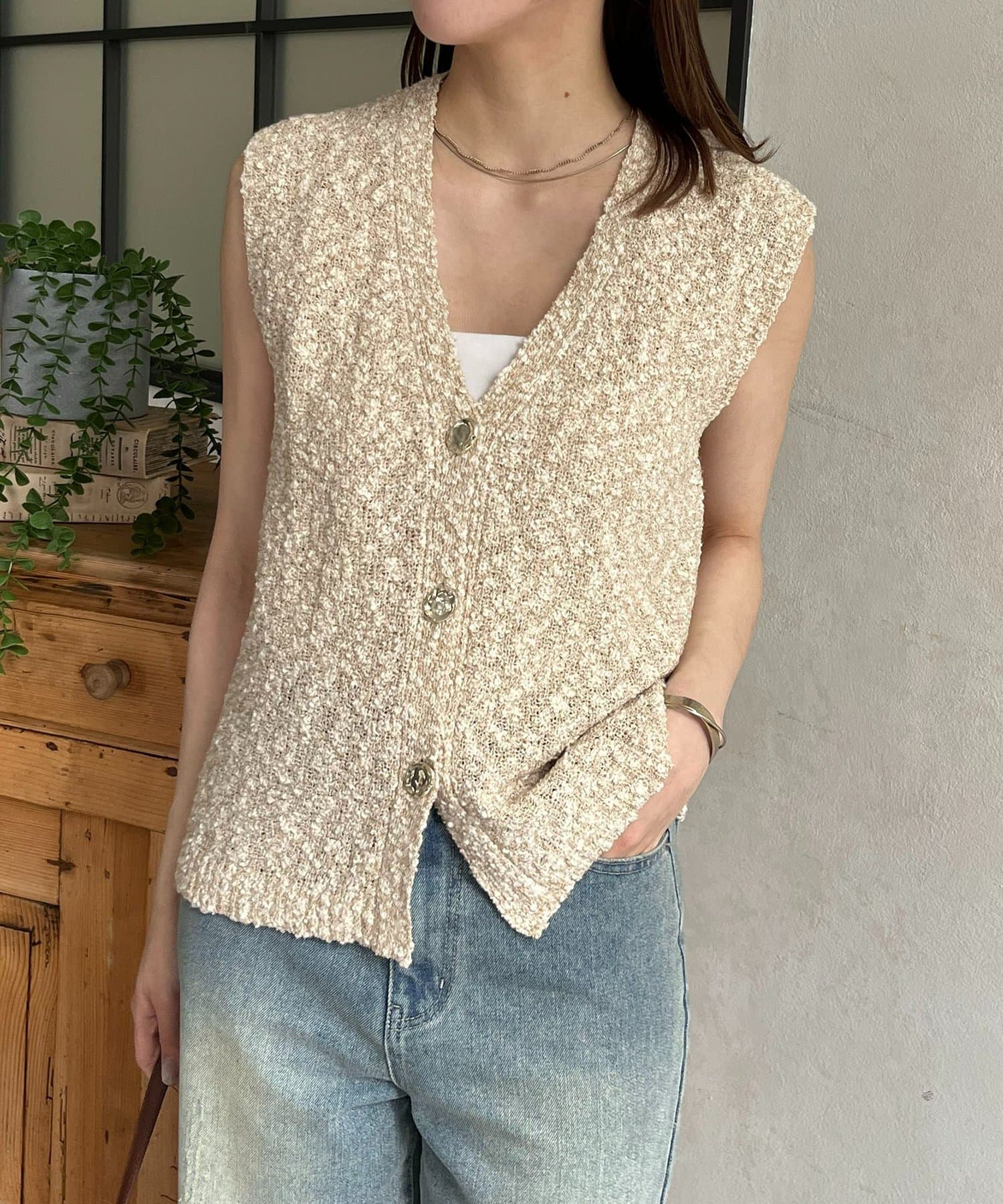 TOP > Thevon. > レディース > トップス > カーディガン/ボレロ > MIXニュアンスボタンノースリニット
