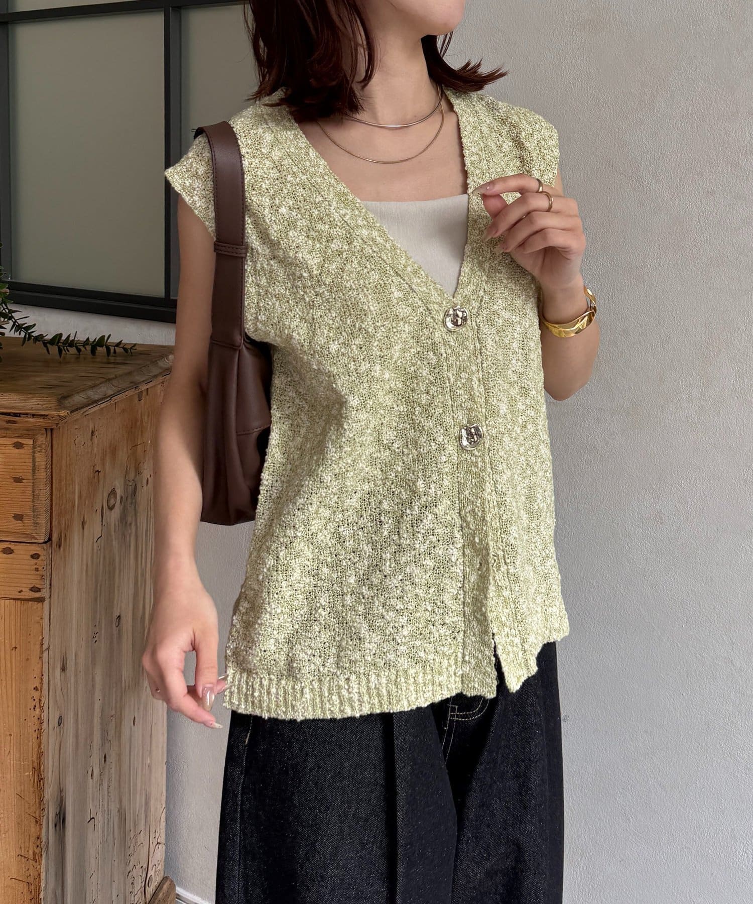 #ニット#ノースリニット#ニュアンスボタン#春服#きれいめ#おでかけ