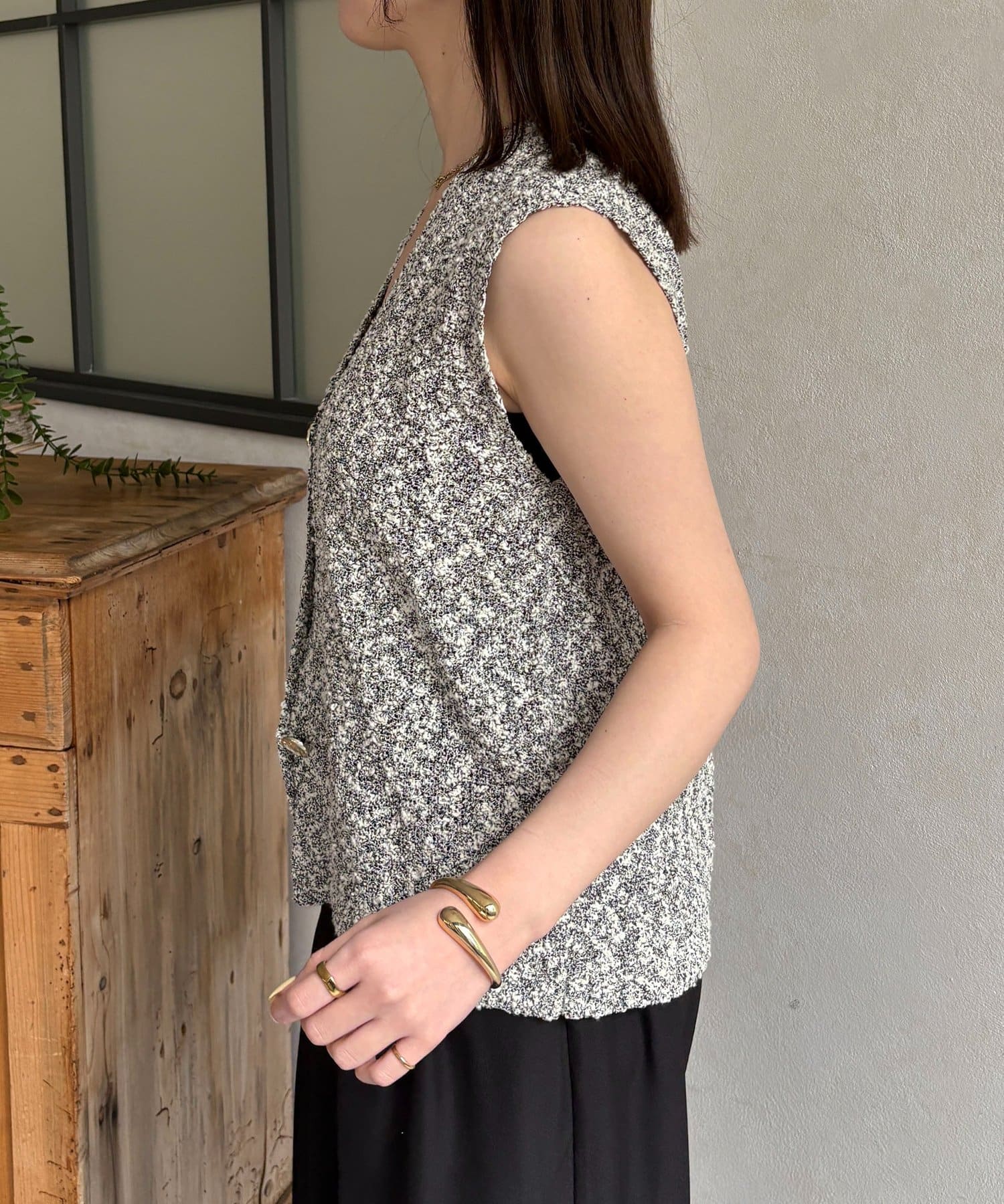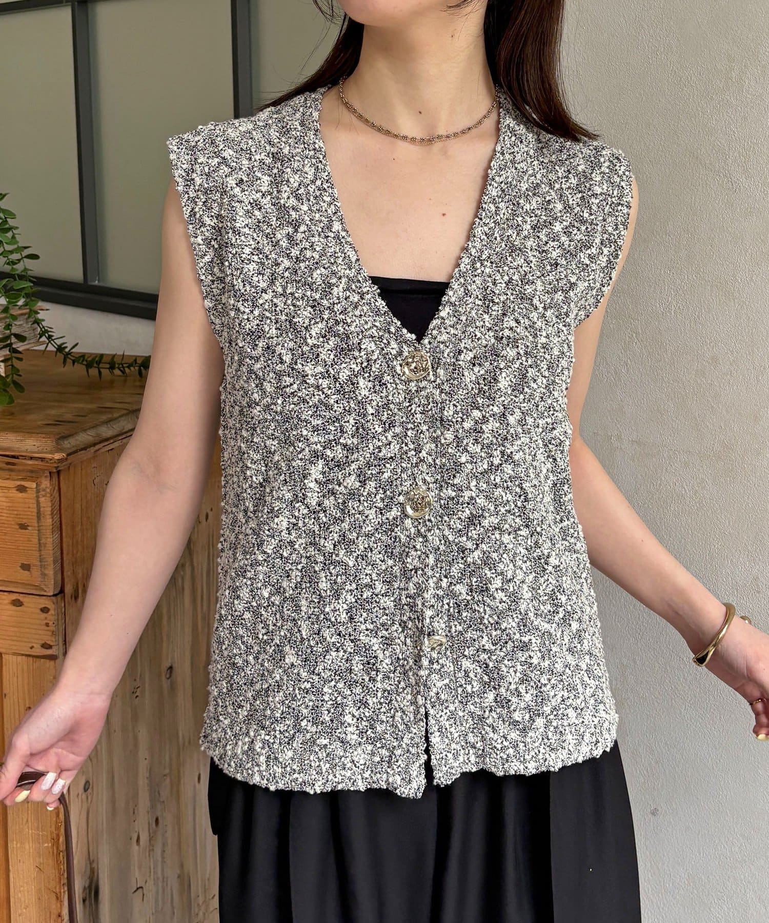 Thevon.(ゼヴォン) MIXニュアンスボタンノースリニット
