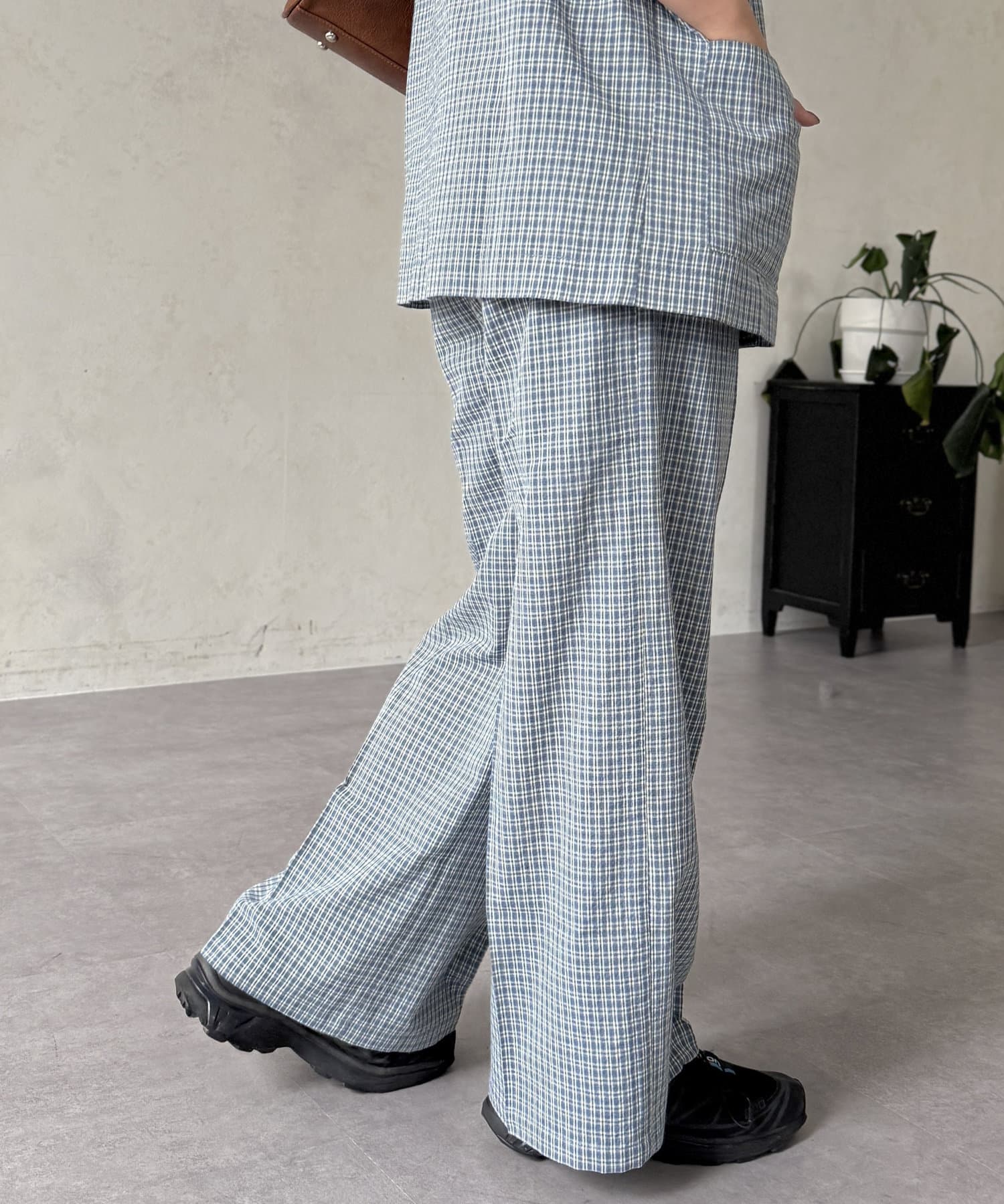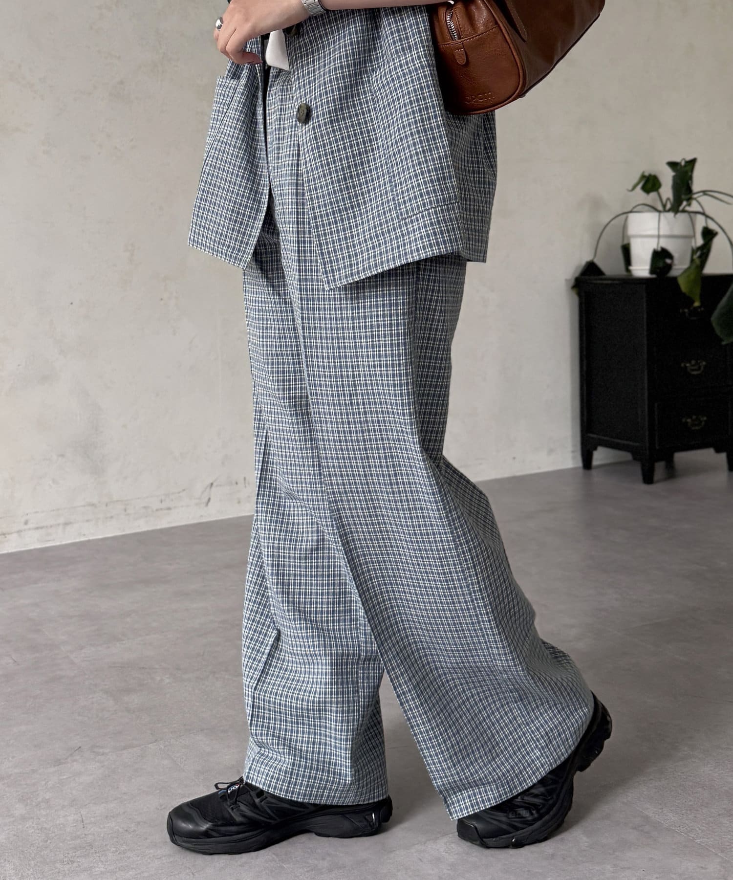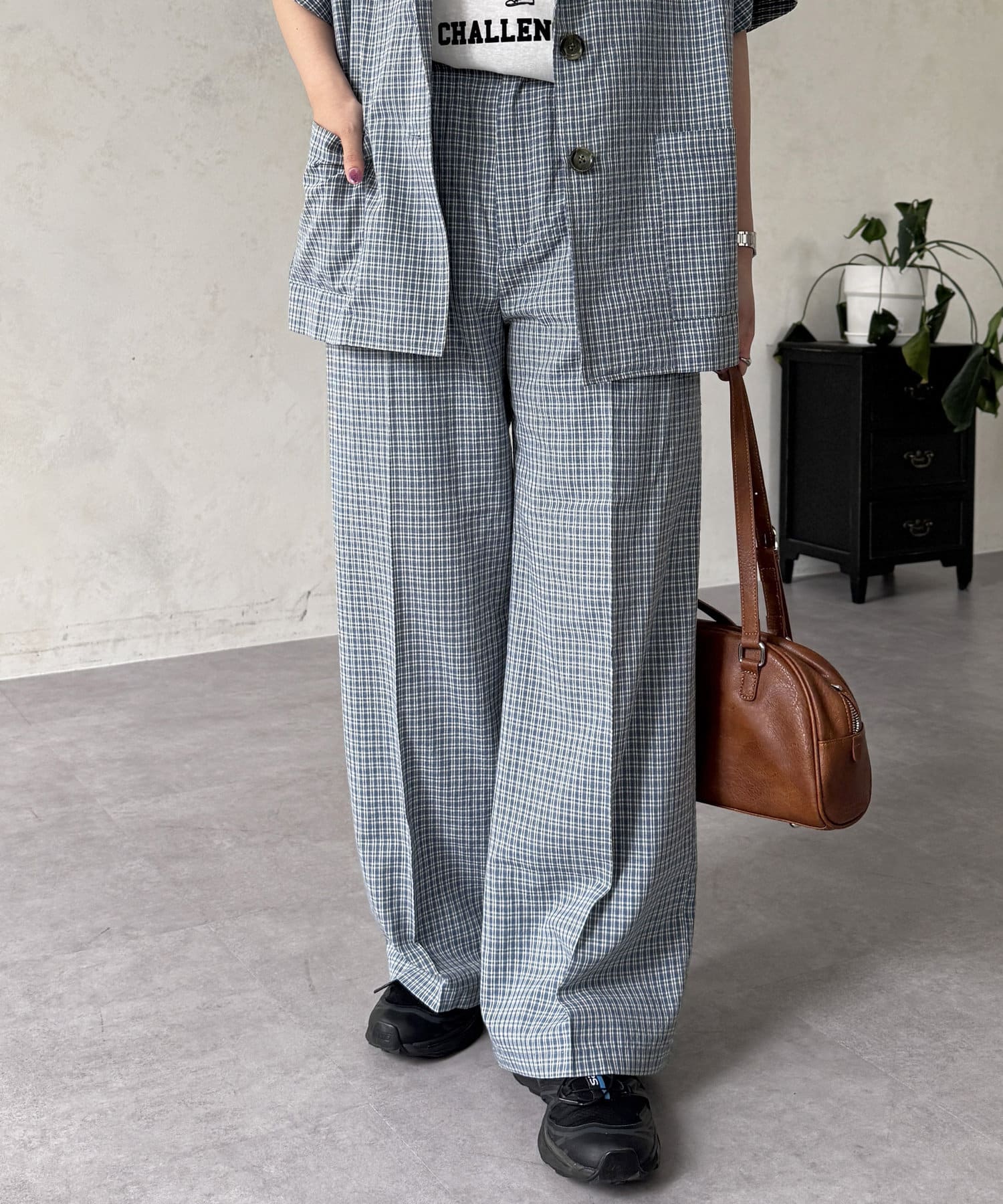※【シアサッカーチェック半袖テーラードジャケット】とセットアップでご着用いただけます。