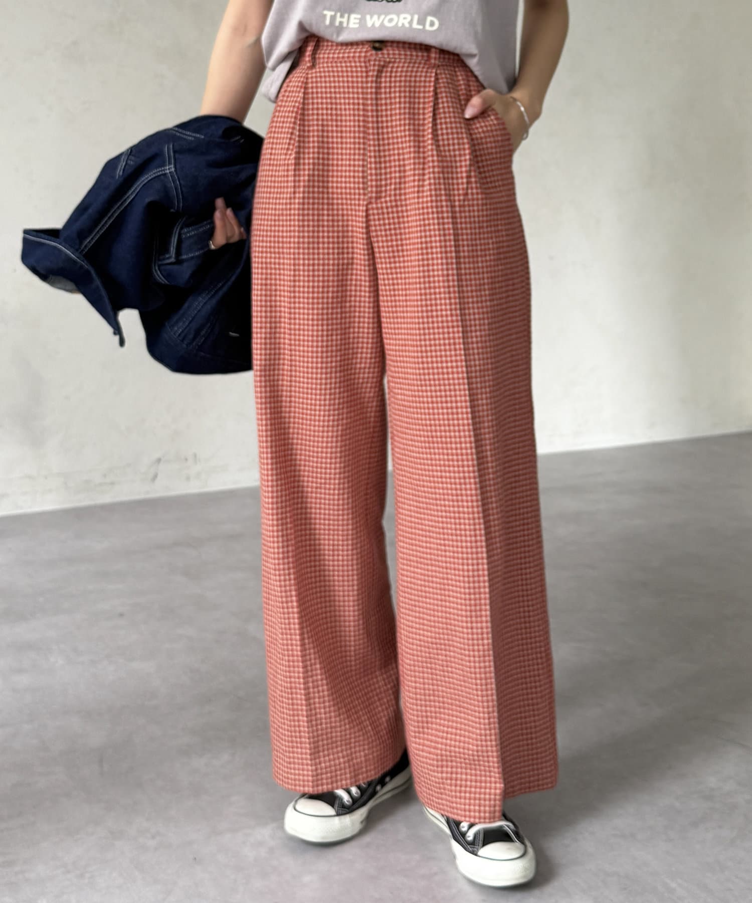 カジュアルにもきれいめにも着こなせるので、様々なシーンで活躍してくれる万能パンツです!