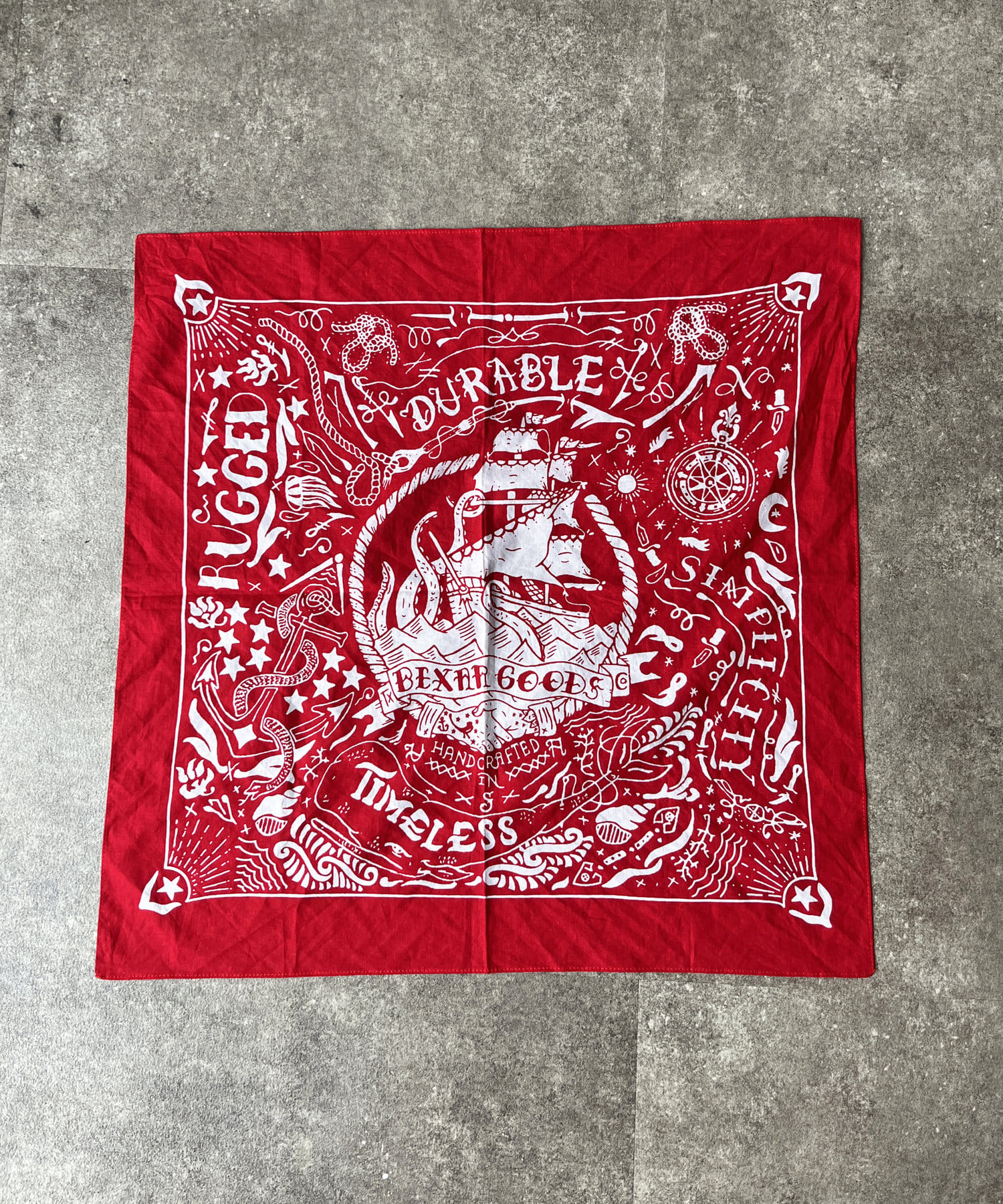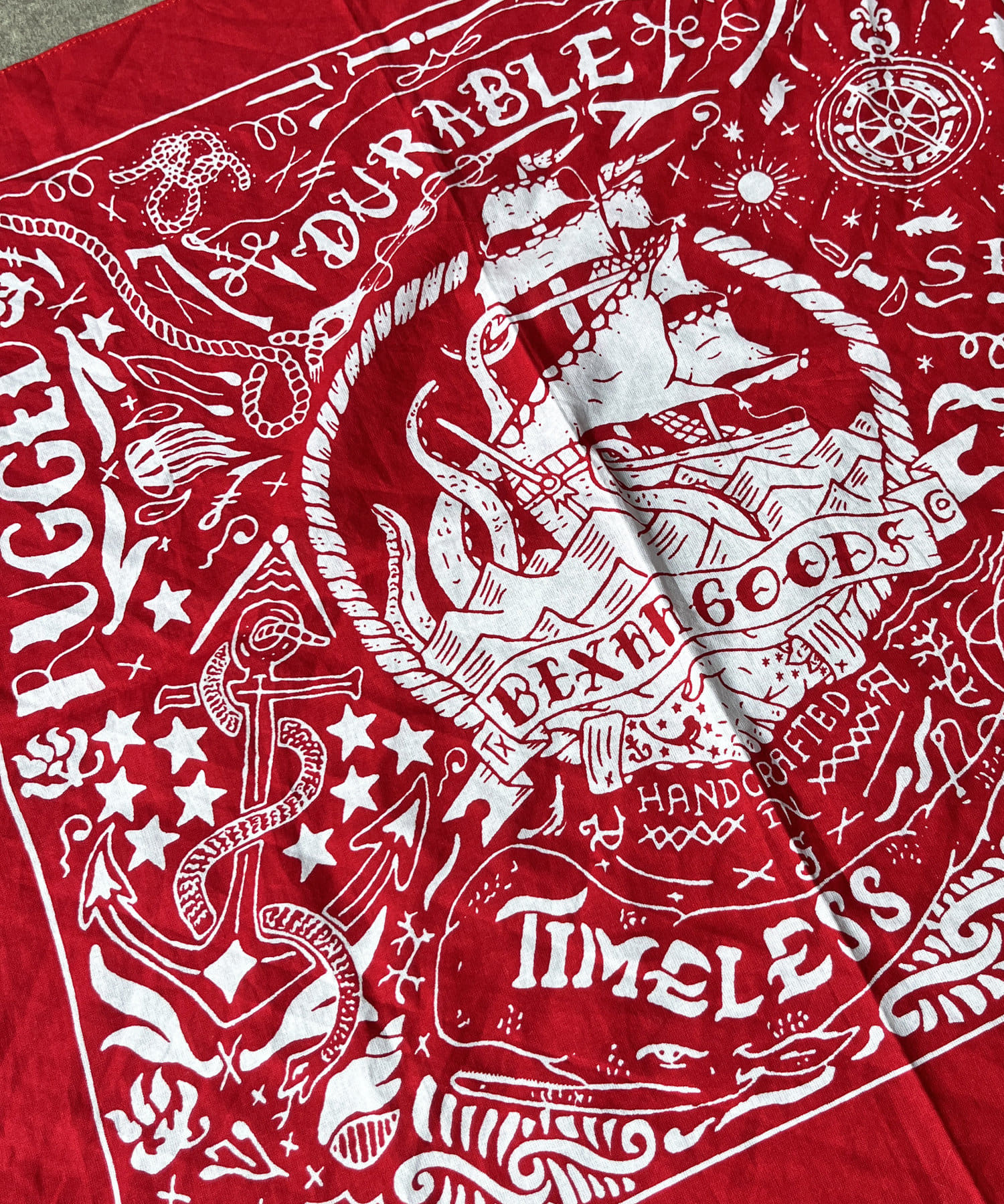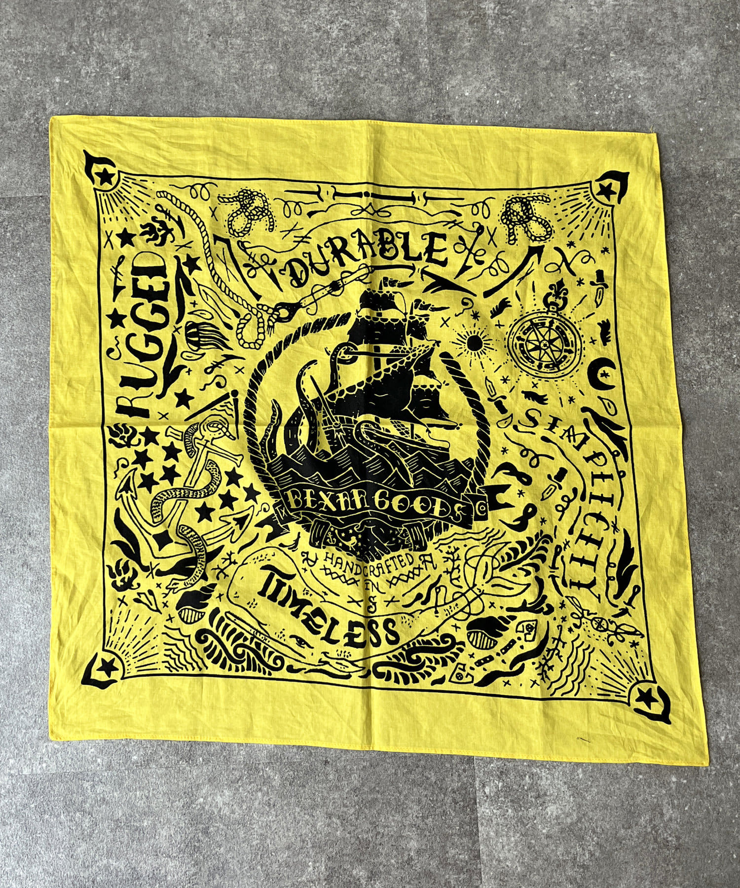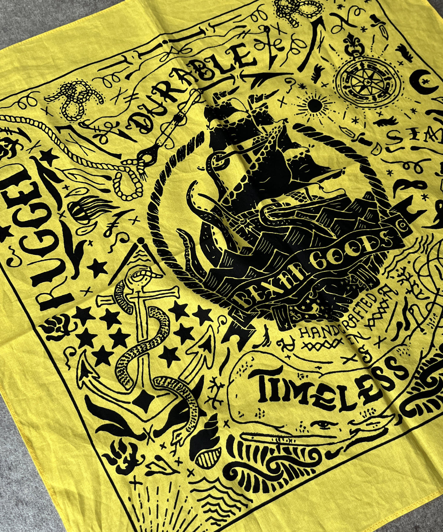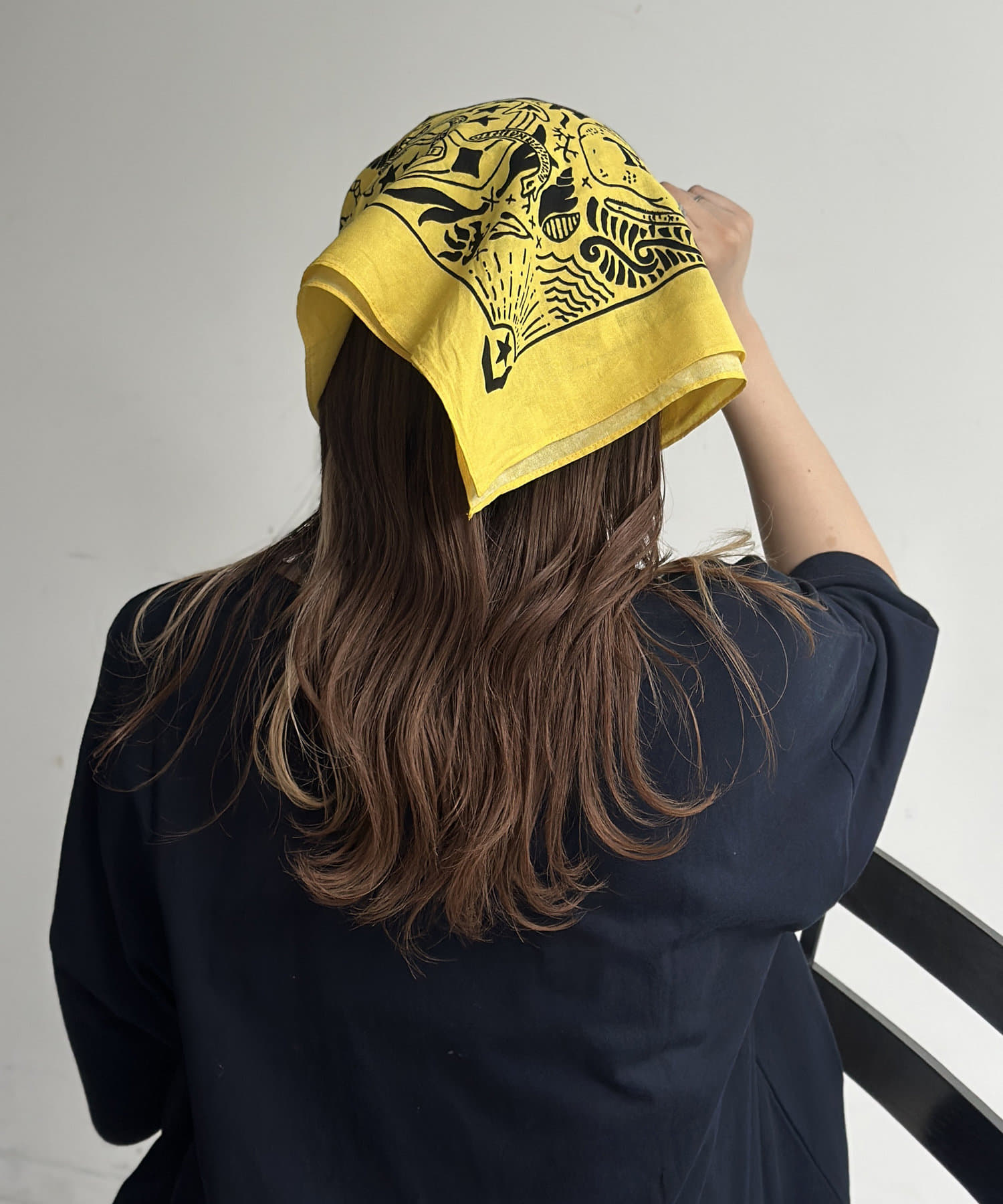 目を惹くカラーと、イラストが魅力的なバンダナ!