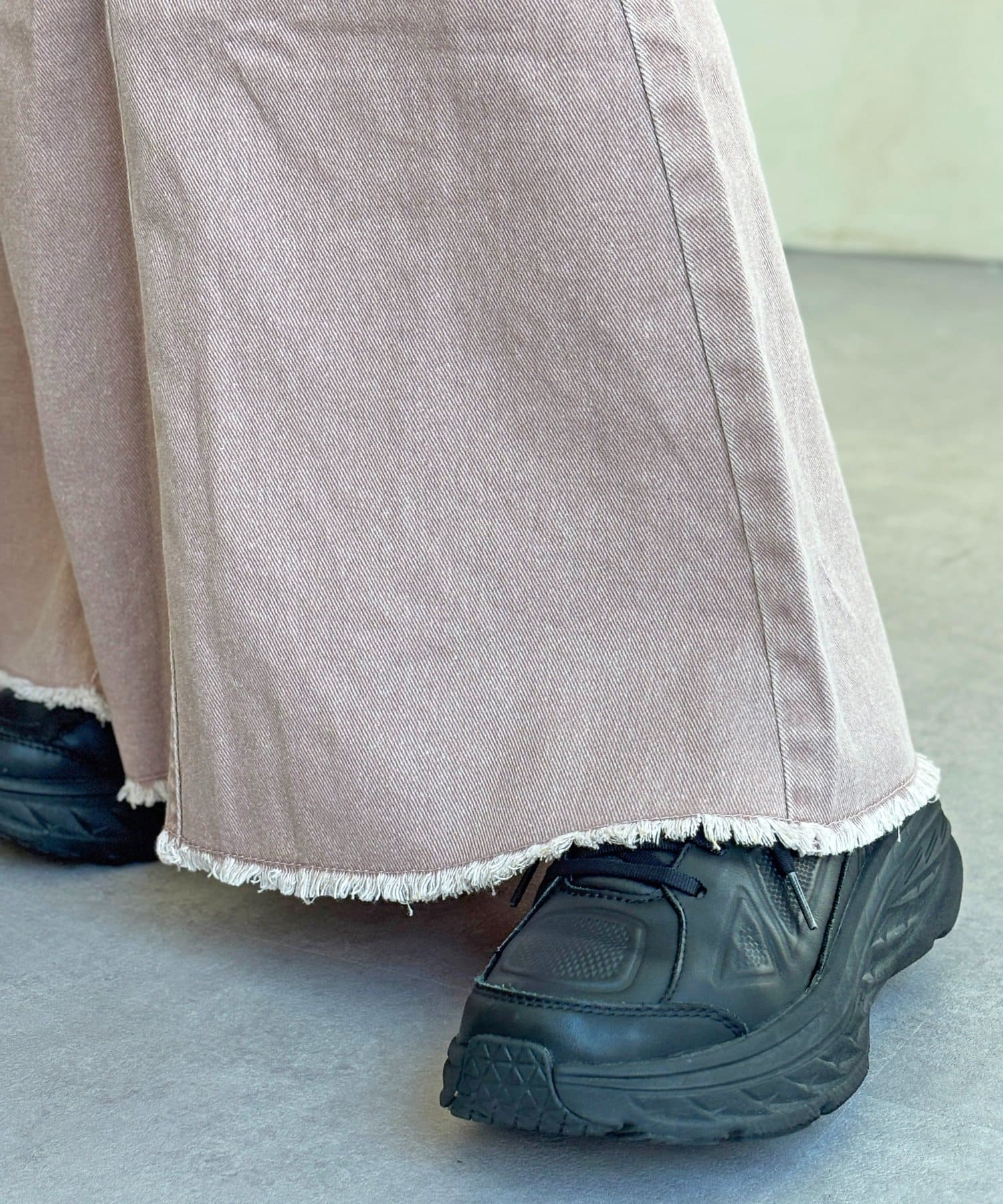 ストンと落ちるシルエットと、裾のフリンジ加工が、抜け感をプラス!