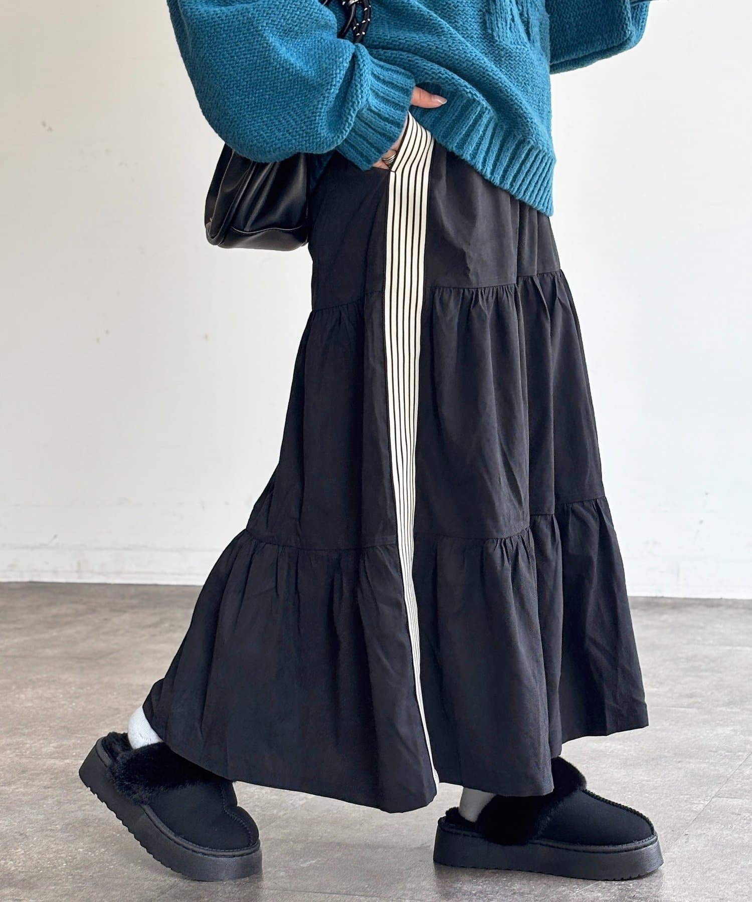 サイドラインが目を引く、大人カジュアルなティアードスカートが登場!