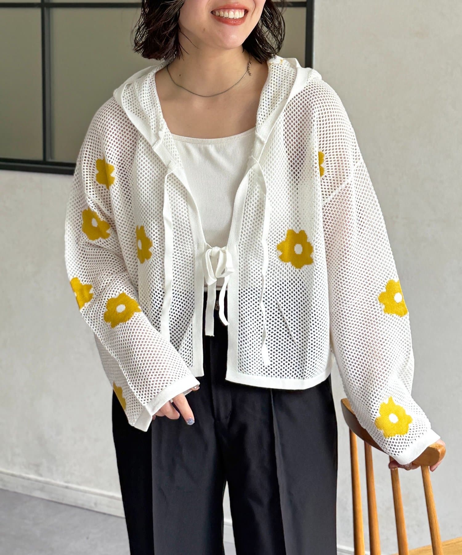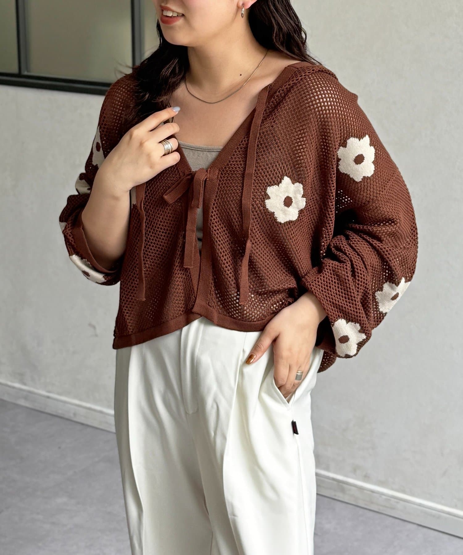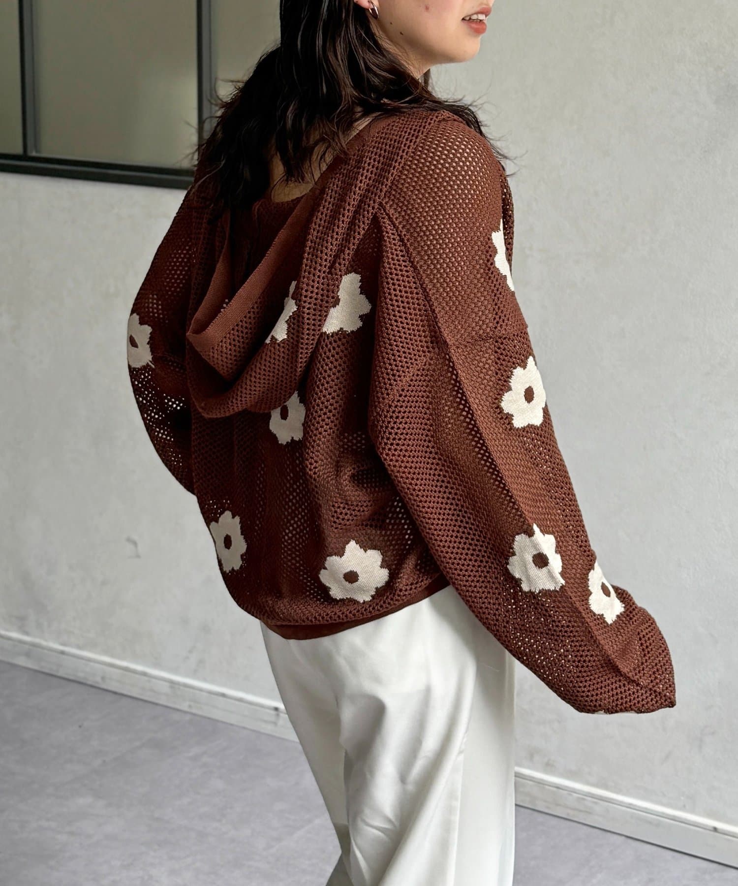 目を惹くジャガード編みに、散りばめられたお花がかわいいフーディが登場!