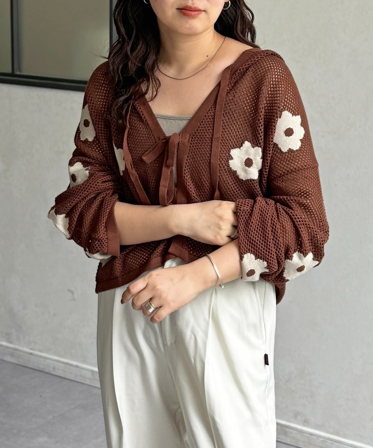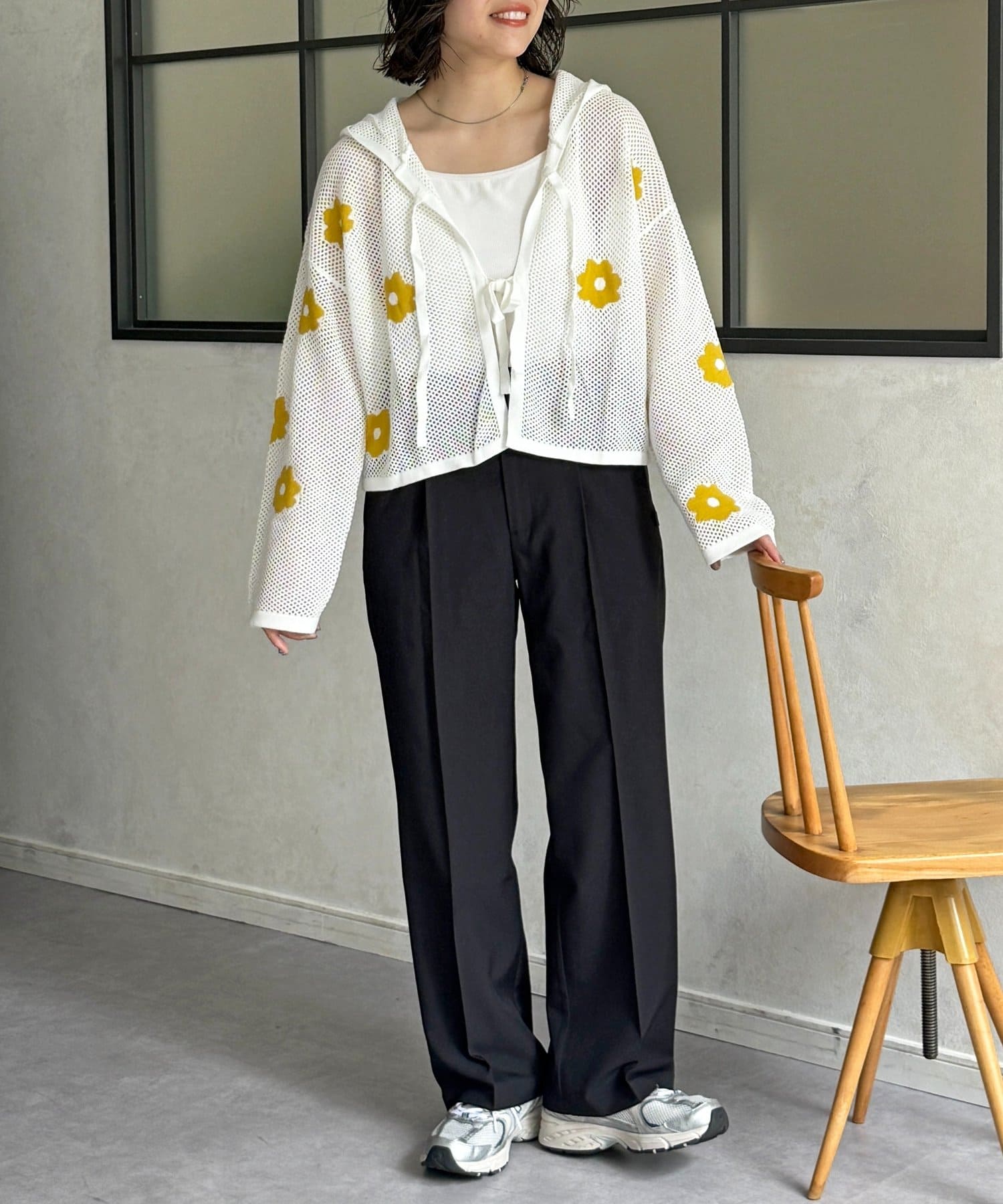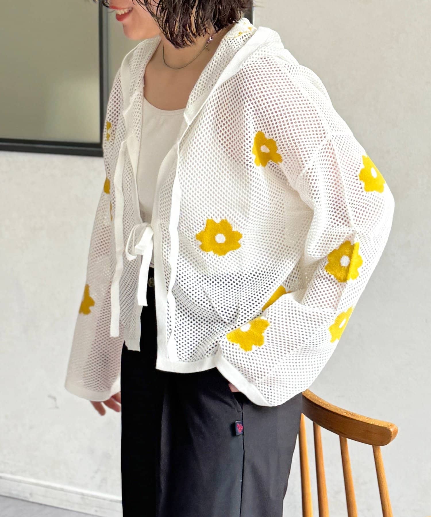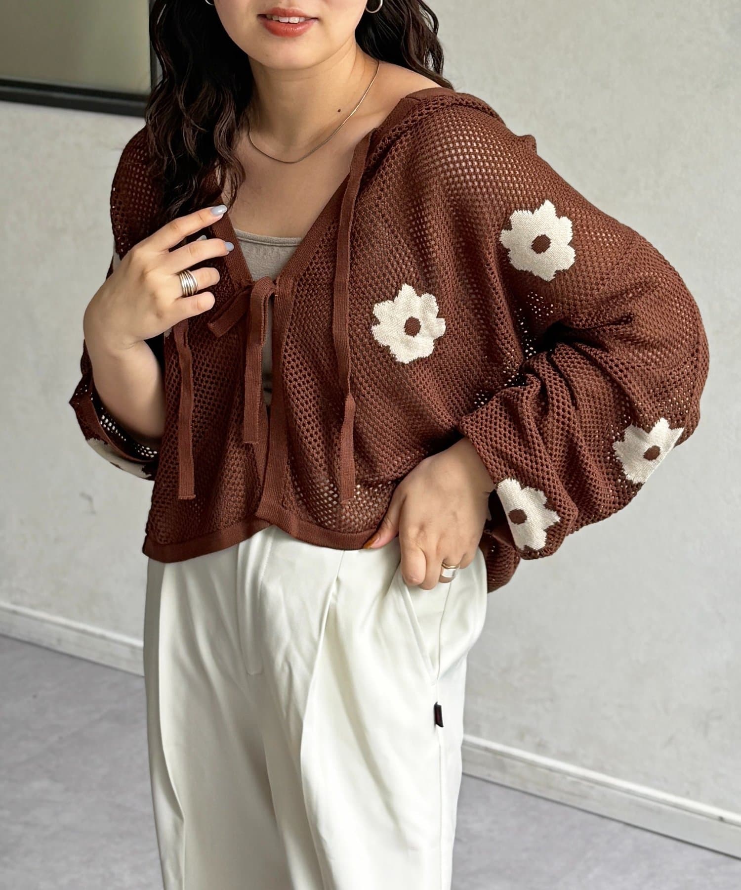 目を惹くジャガード編みに、散りばめられたお花がかわいいフーディが登場!