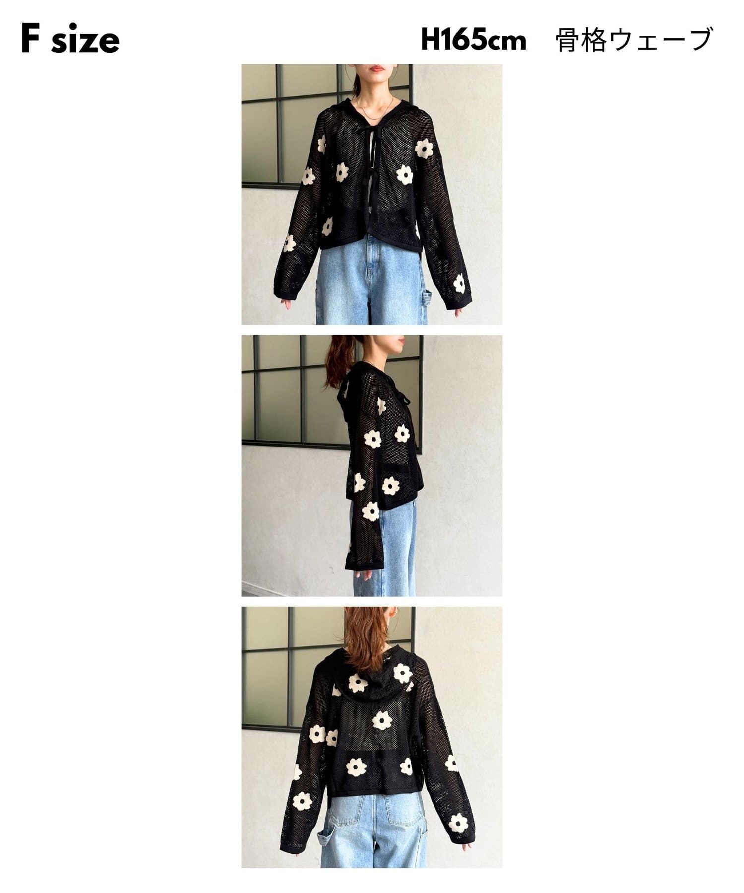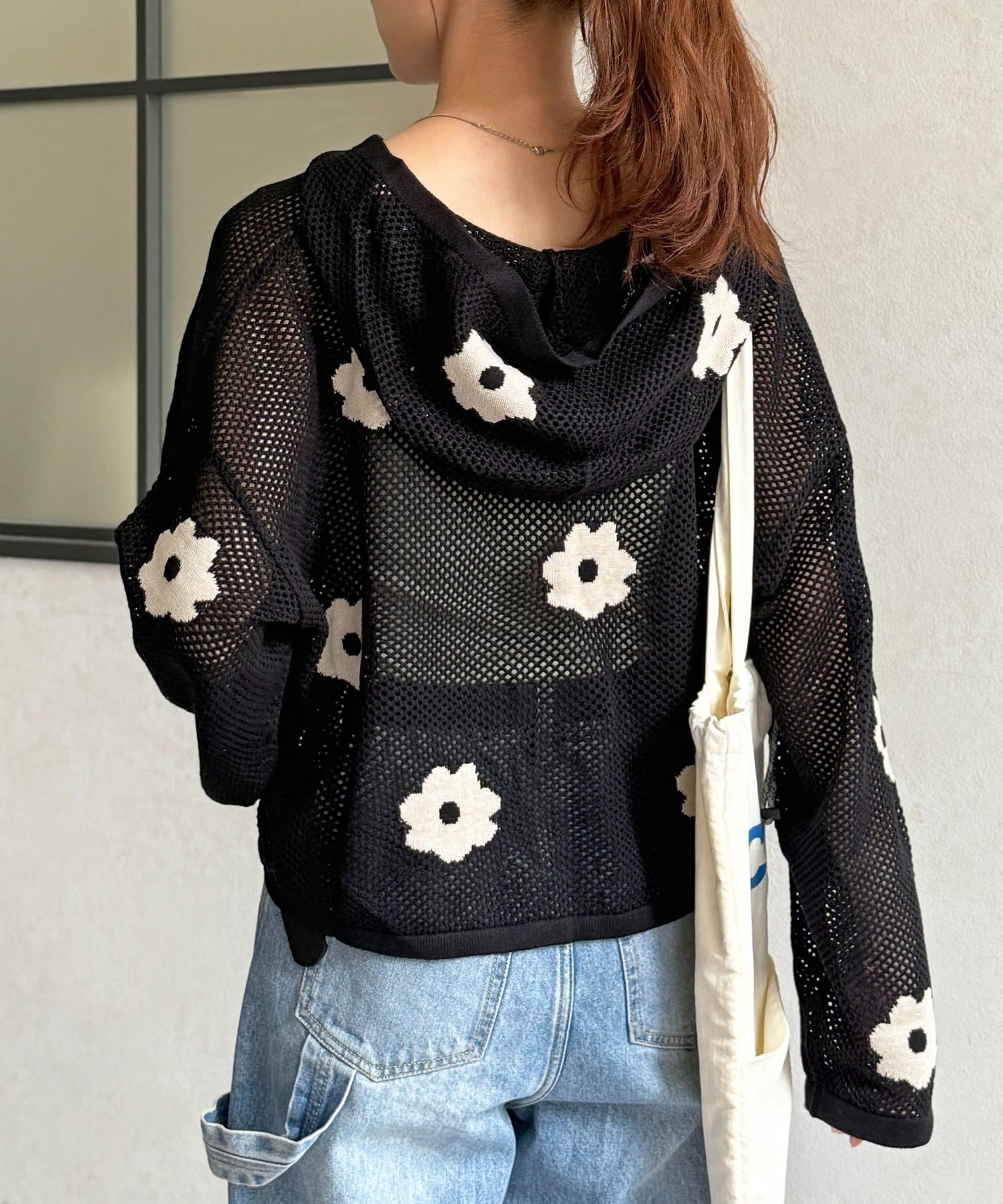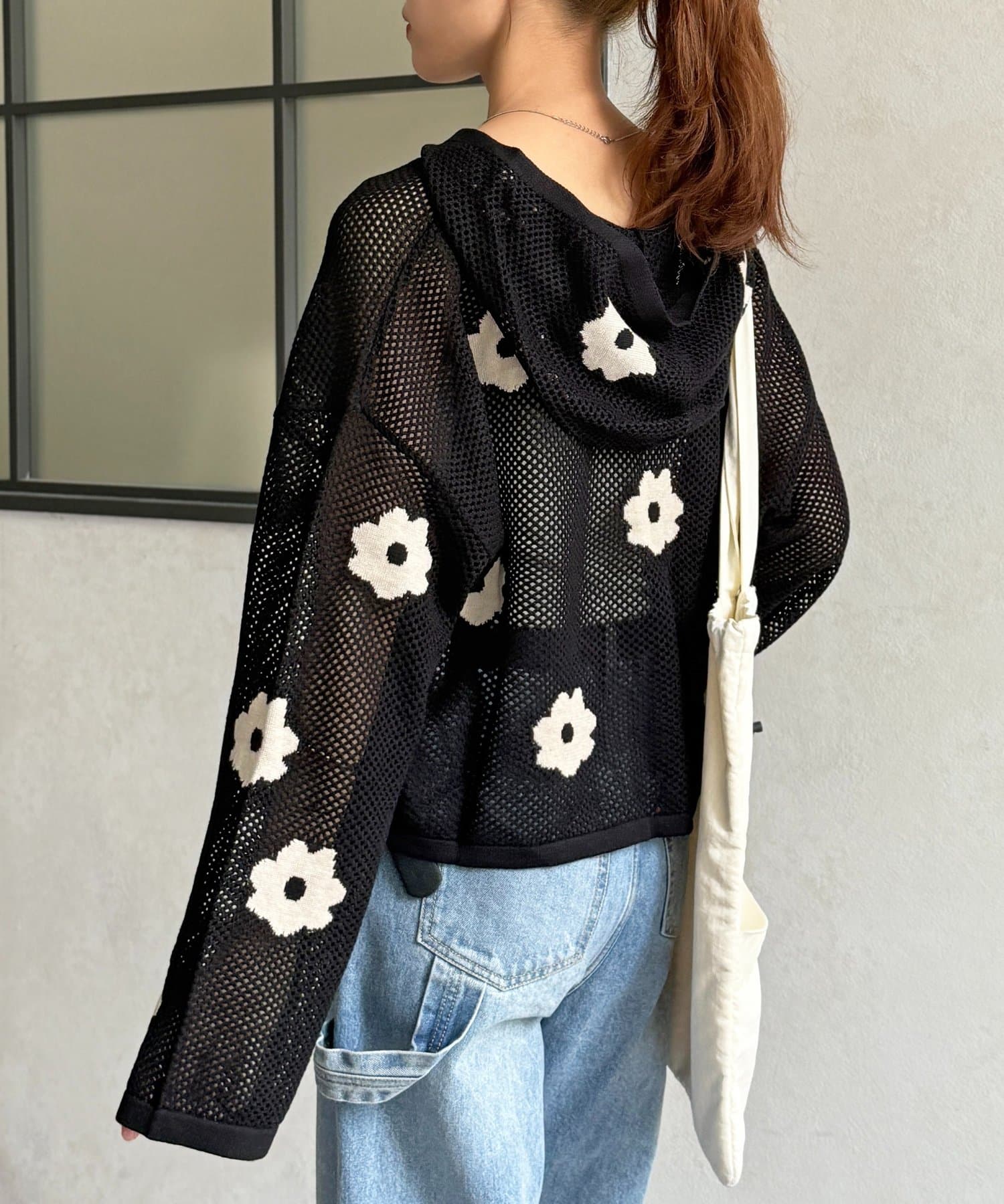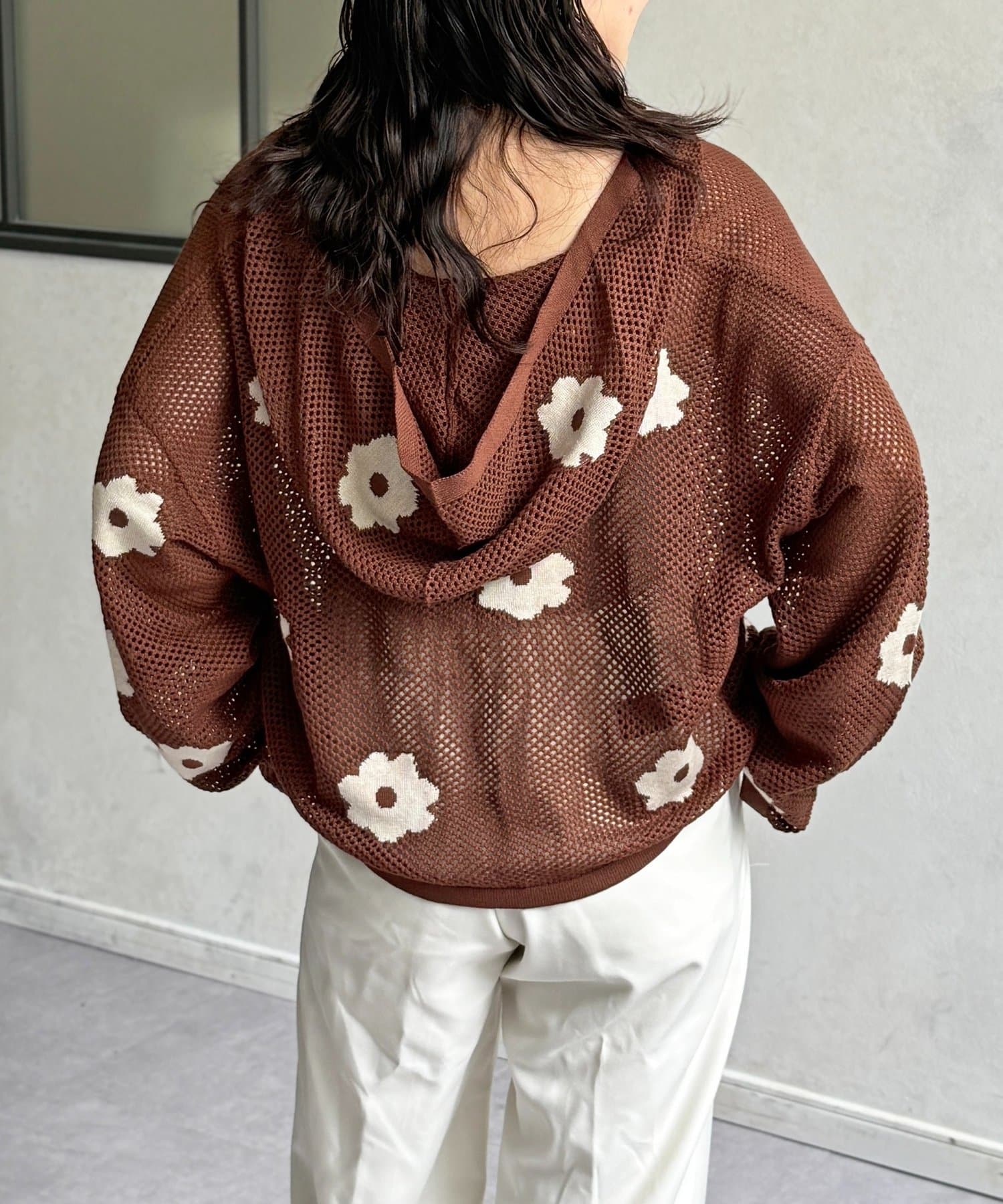 メッシュ花柄ジャガードパーカー