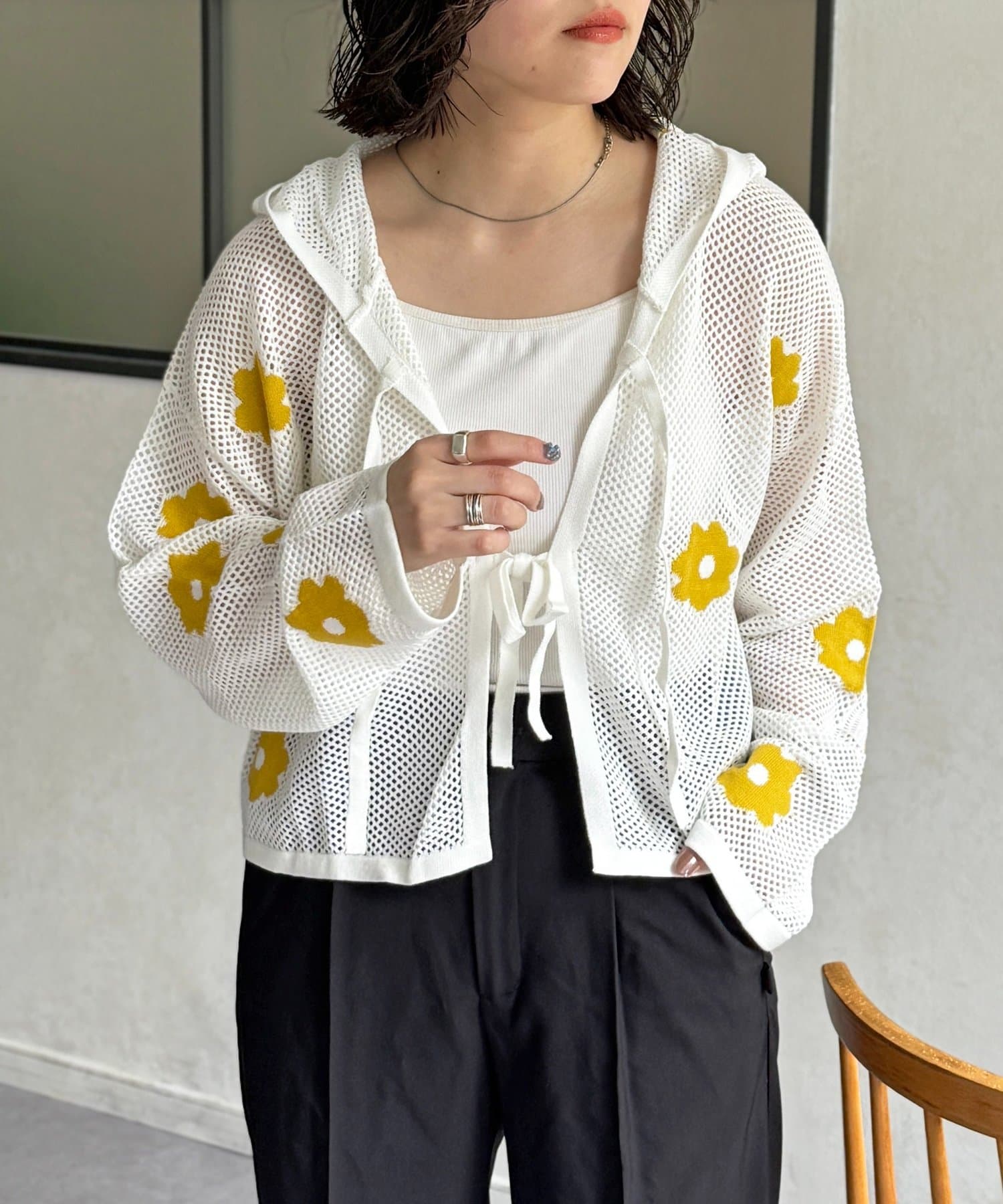 ・キャミやタンクトップに合わせてシアー感を楽しめる◎