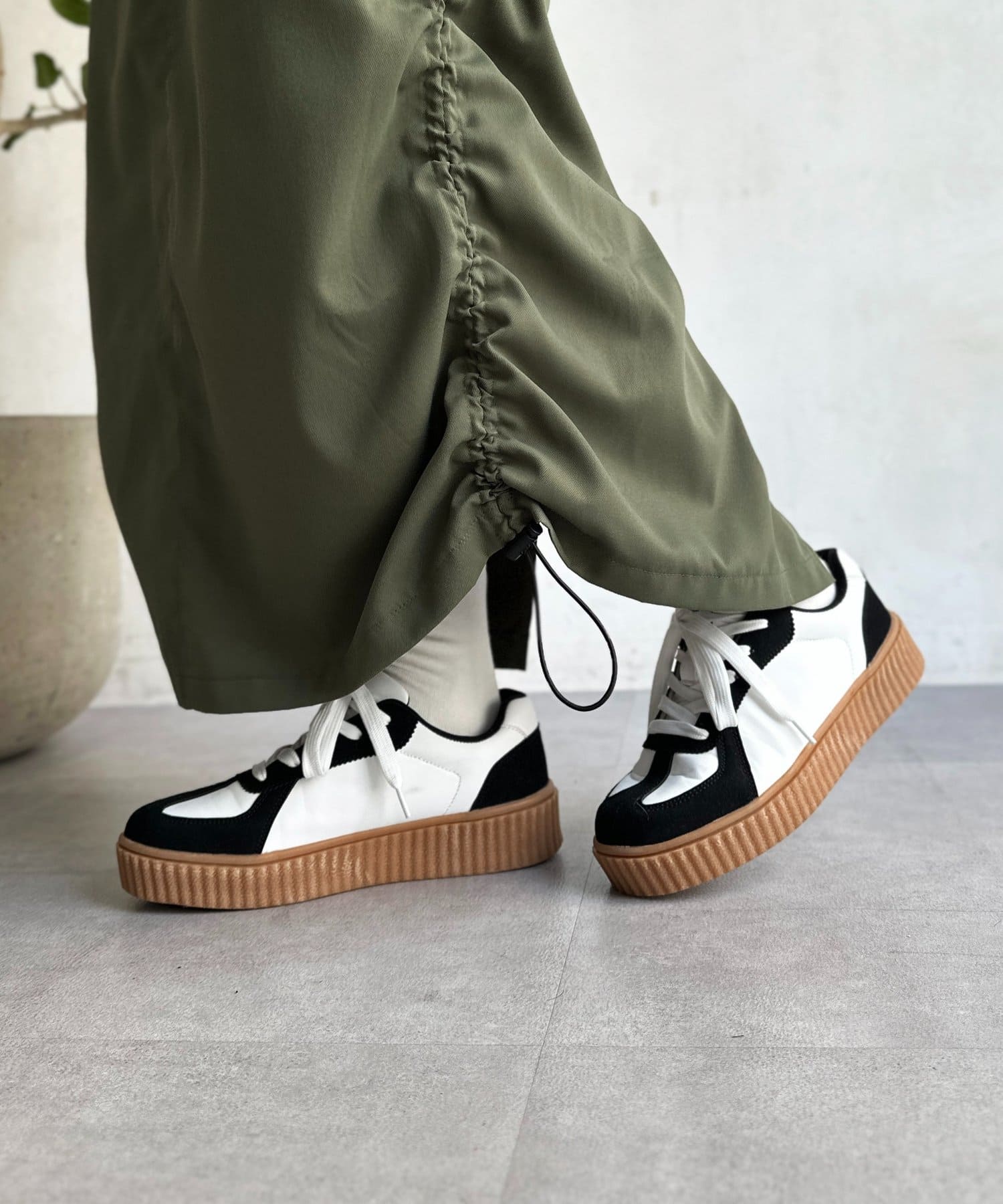 厚底ソールでさりげなくスタイルUP!大人のカジュアルスニーカー
