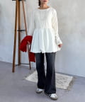 ・フレアパンツと合わせて、トレンド感のあるカジュアルスタイルに