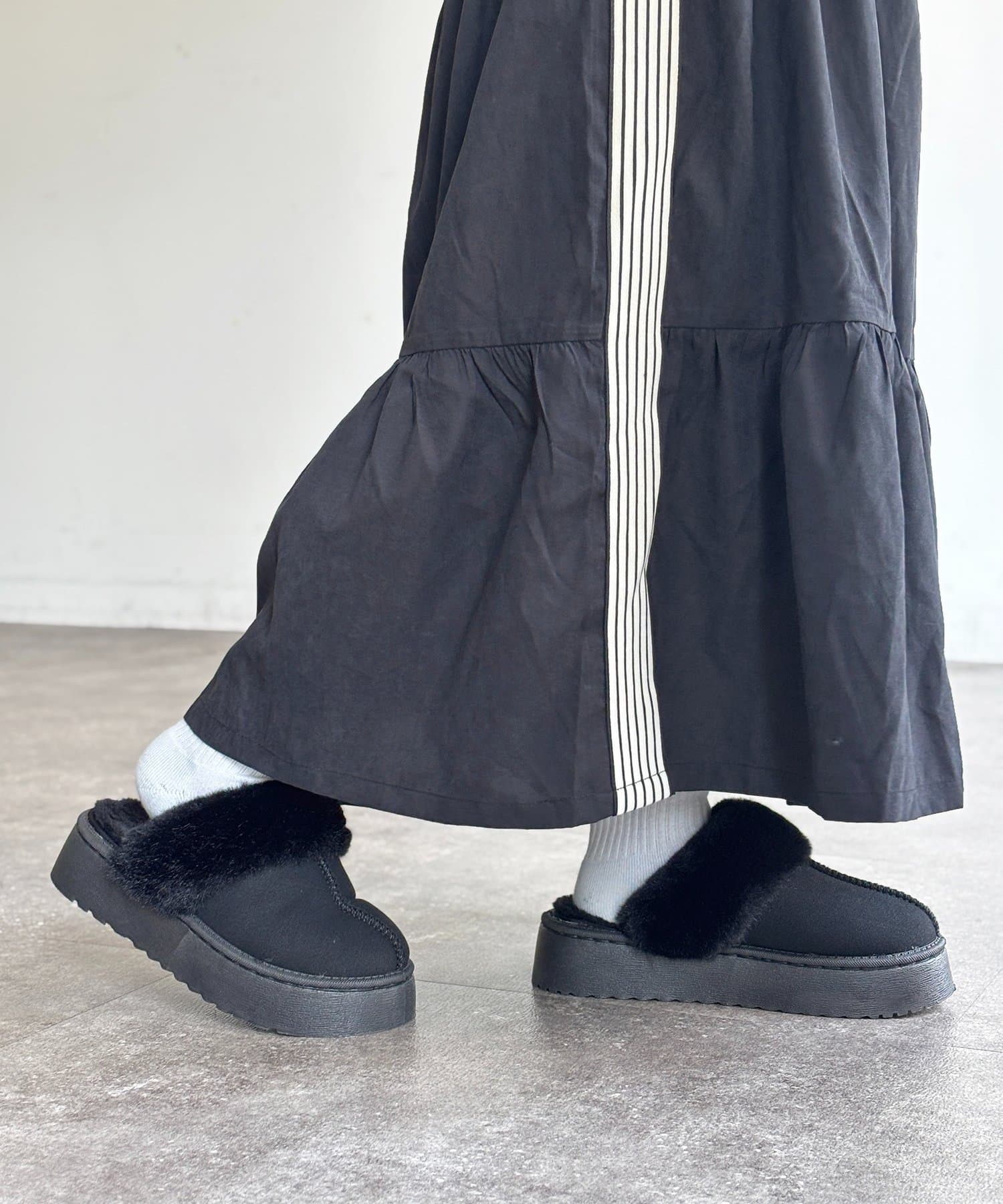 ・足元を暖かく包み込む、ふわふわのファー