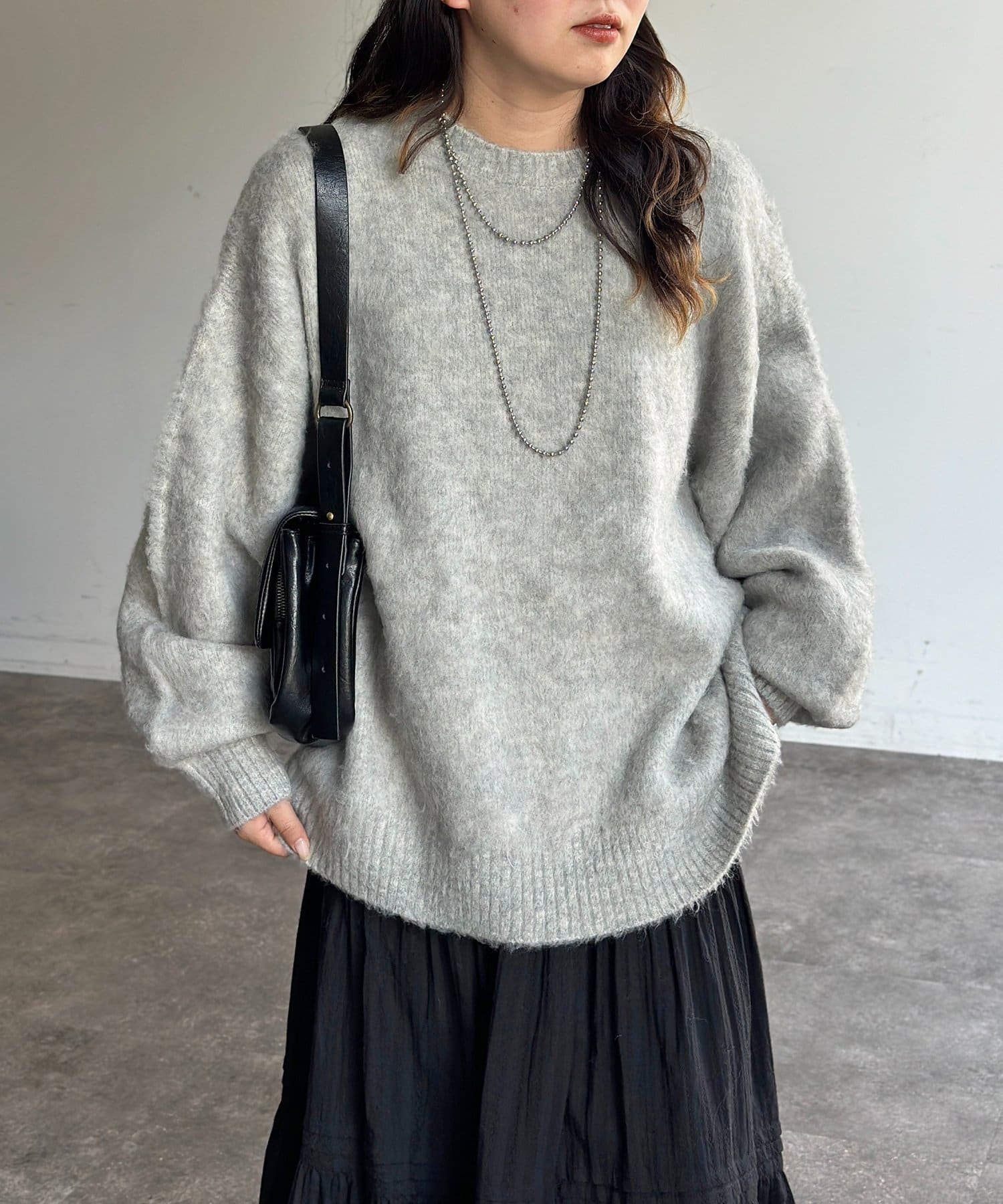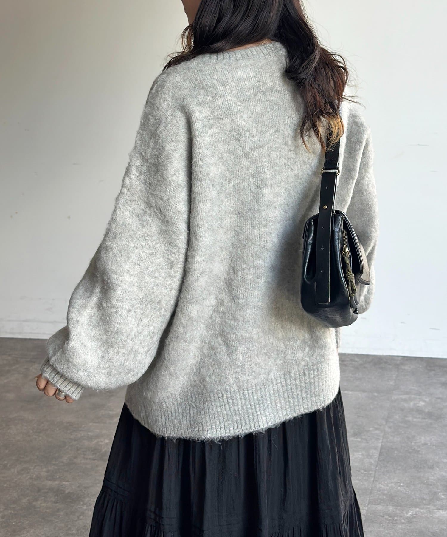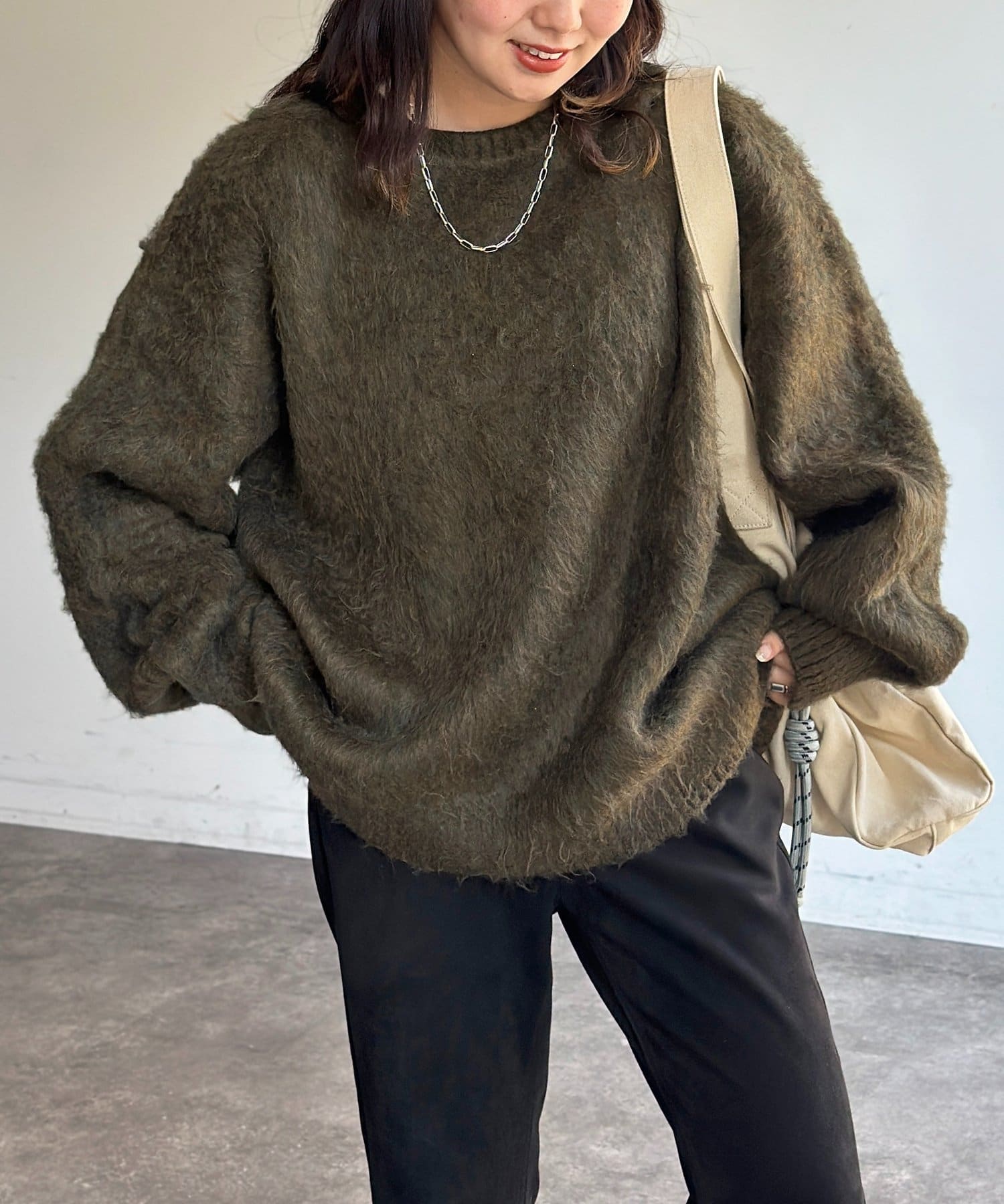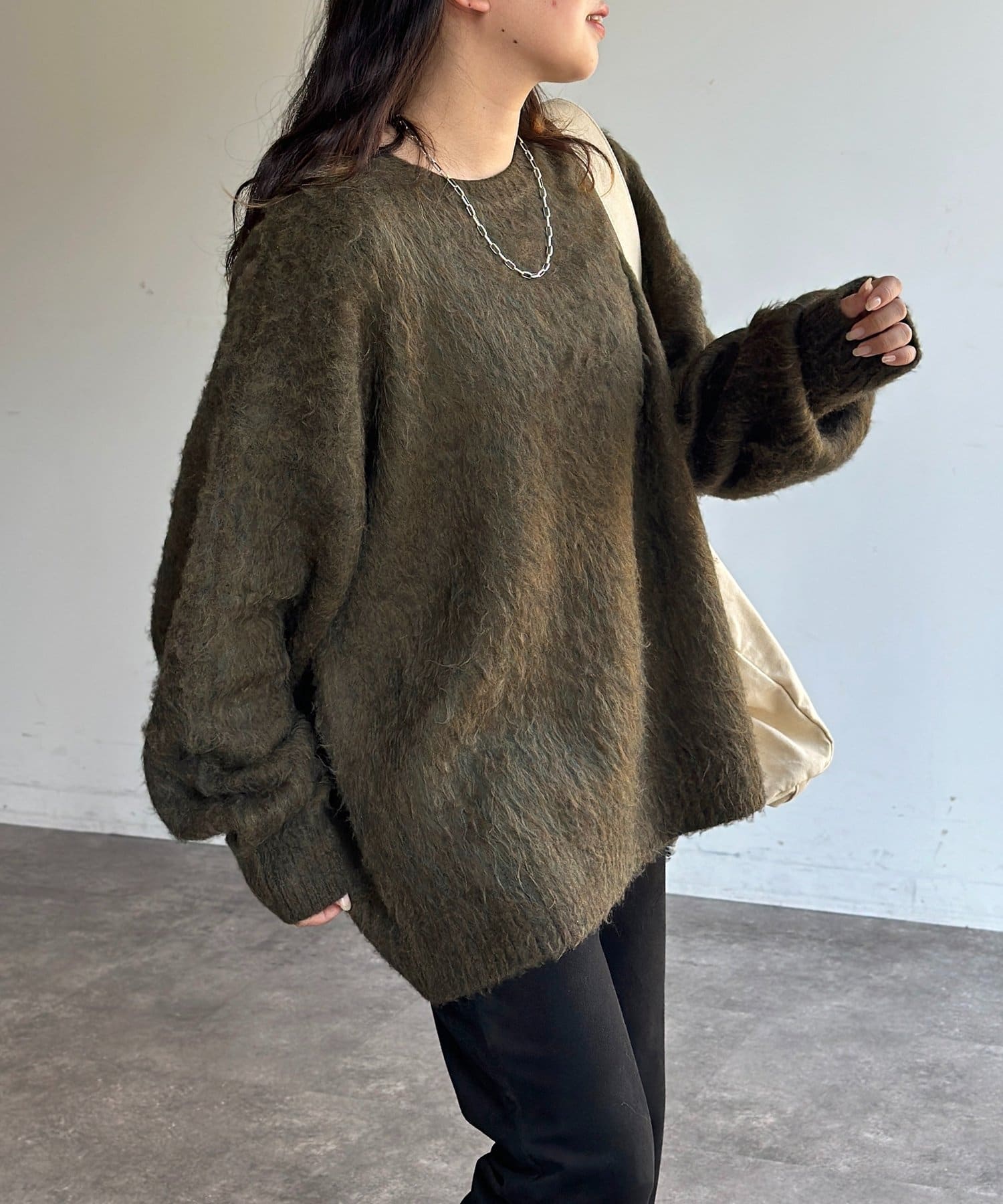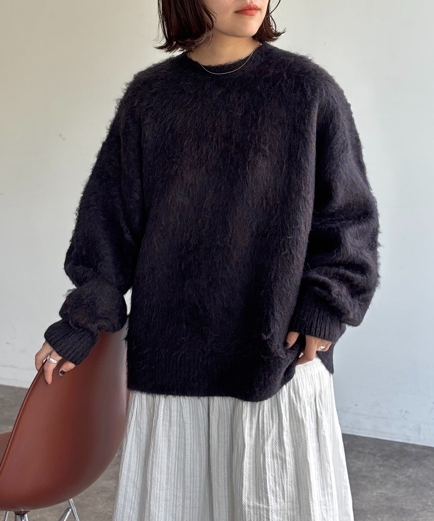 シンプルなデザインながらも、モヘアライクなデザインで着るだけでこなれた印象に!