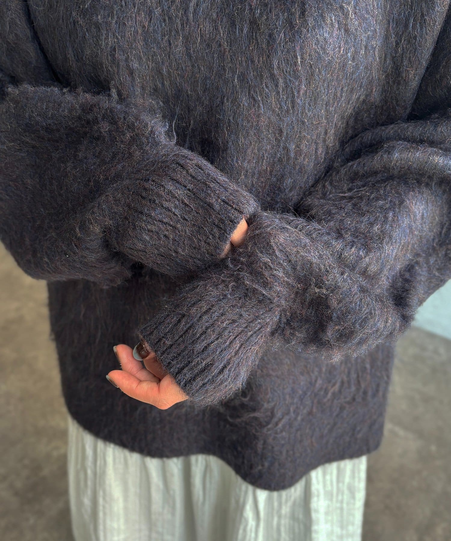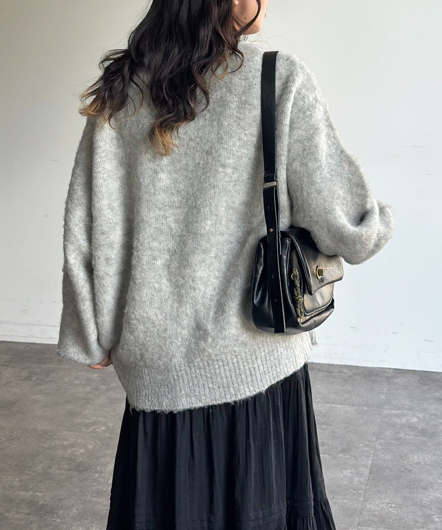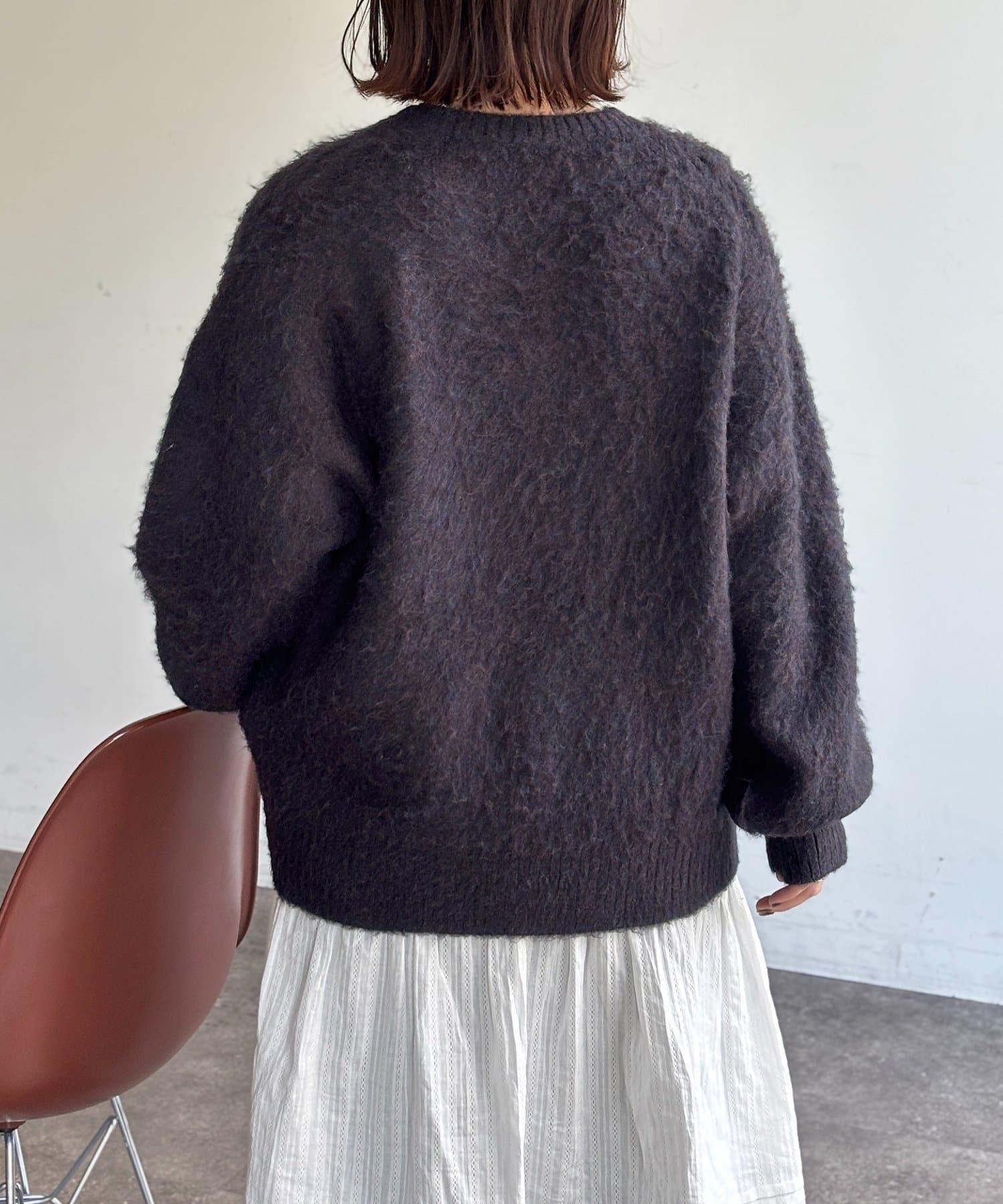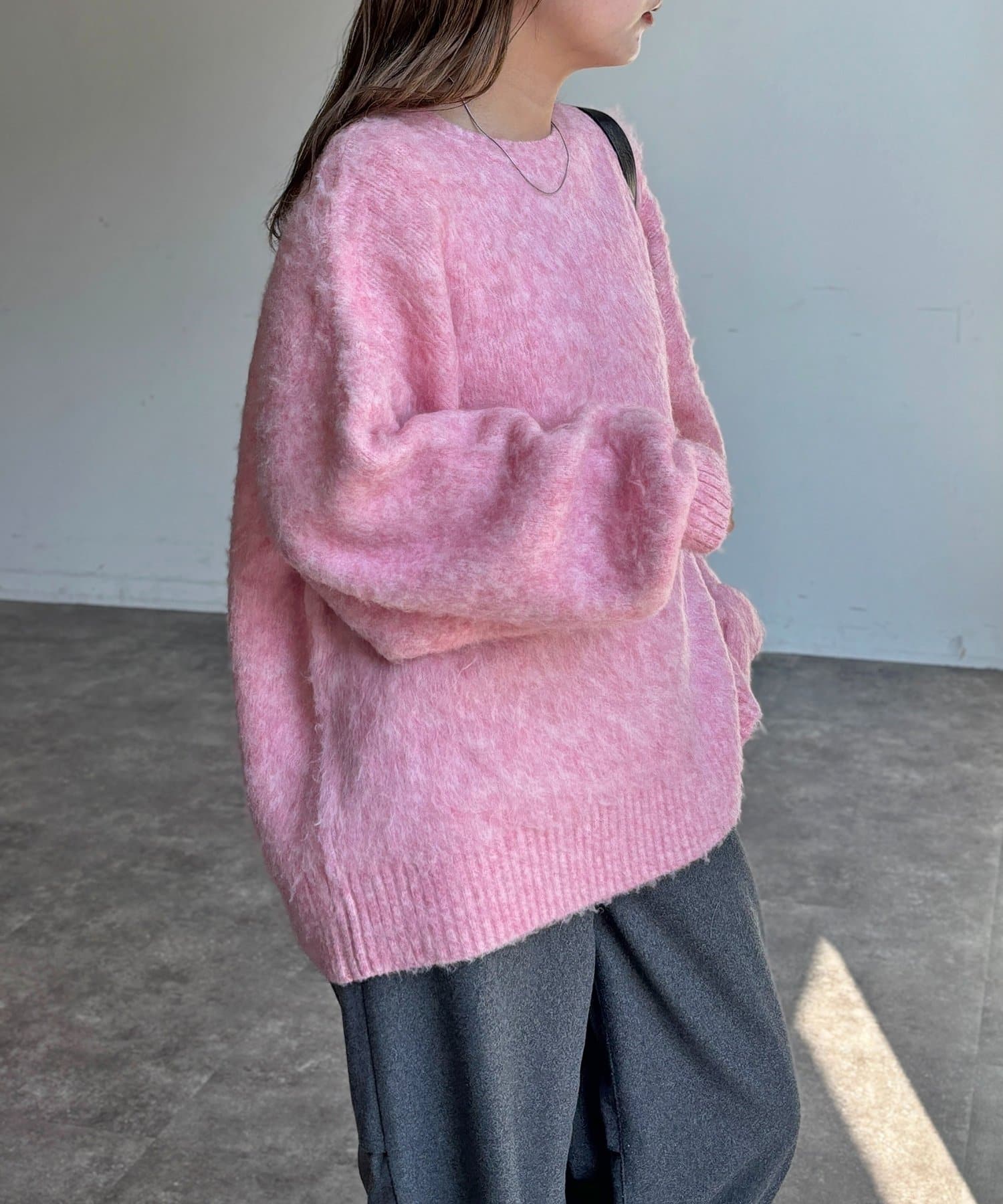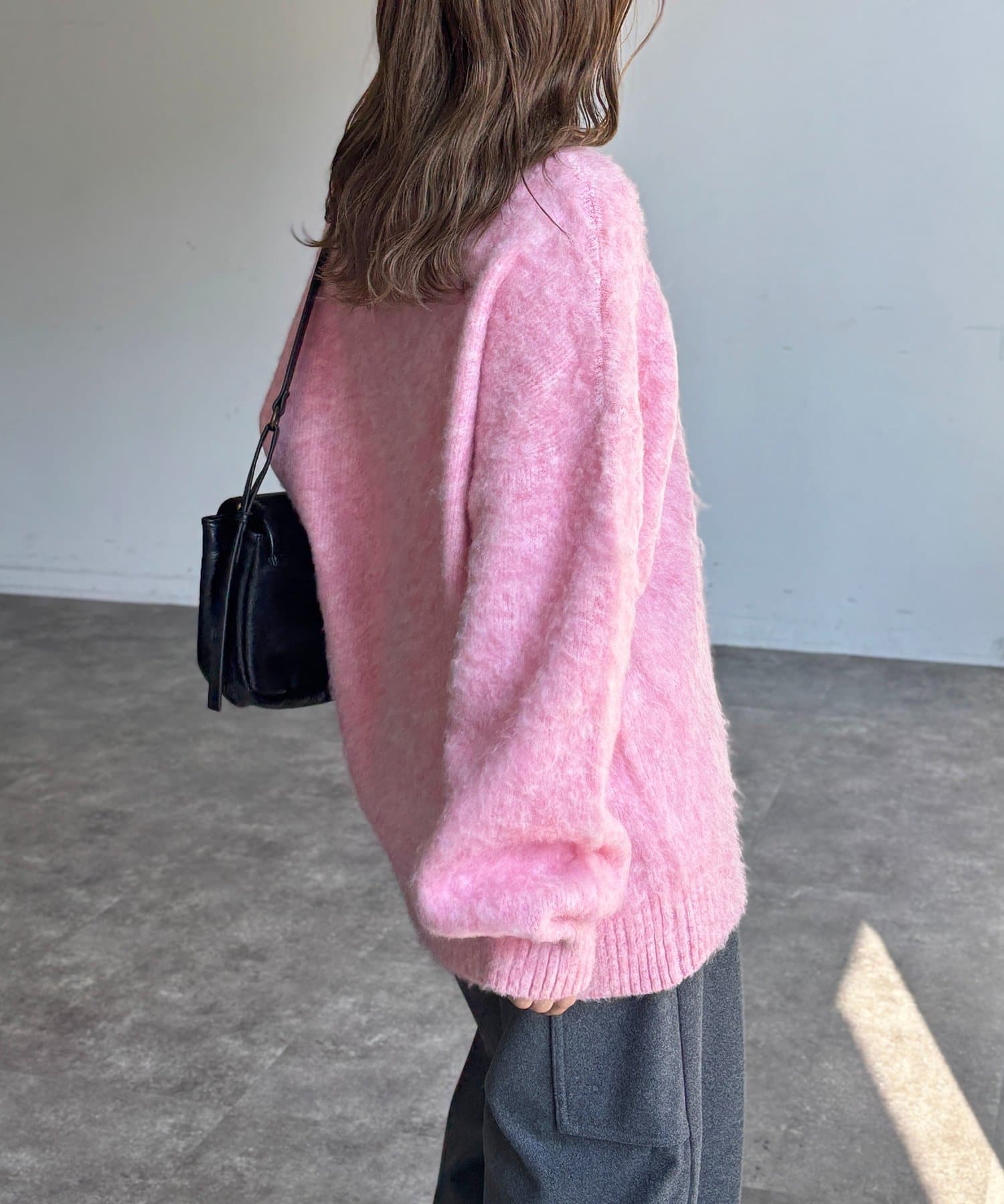 シンプルなデザインながらも、モヘアライクなデザインで着るだけでこなれた印象に!
