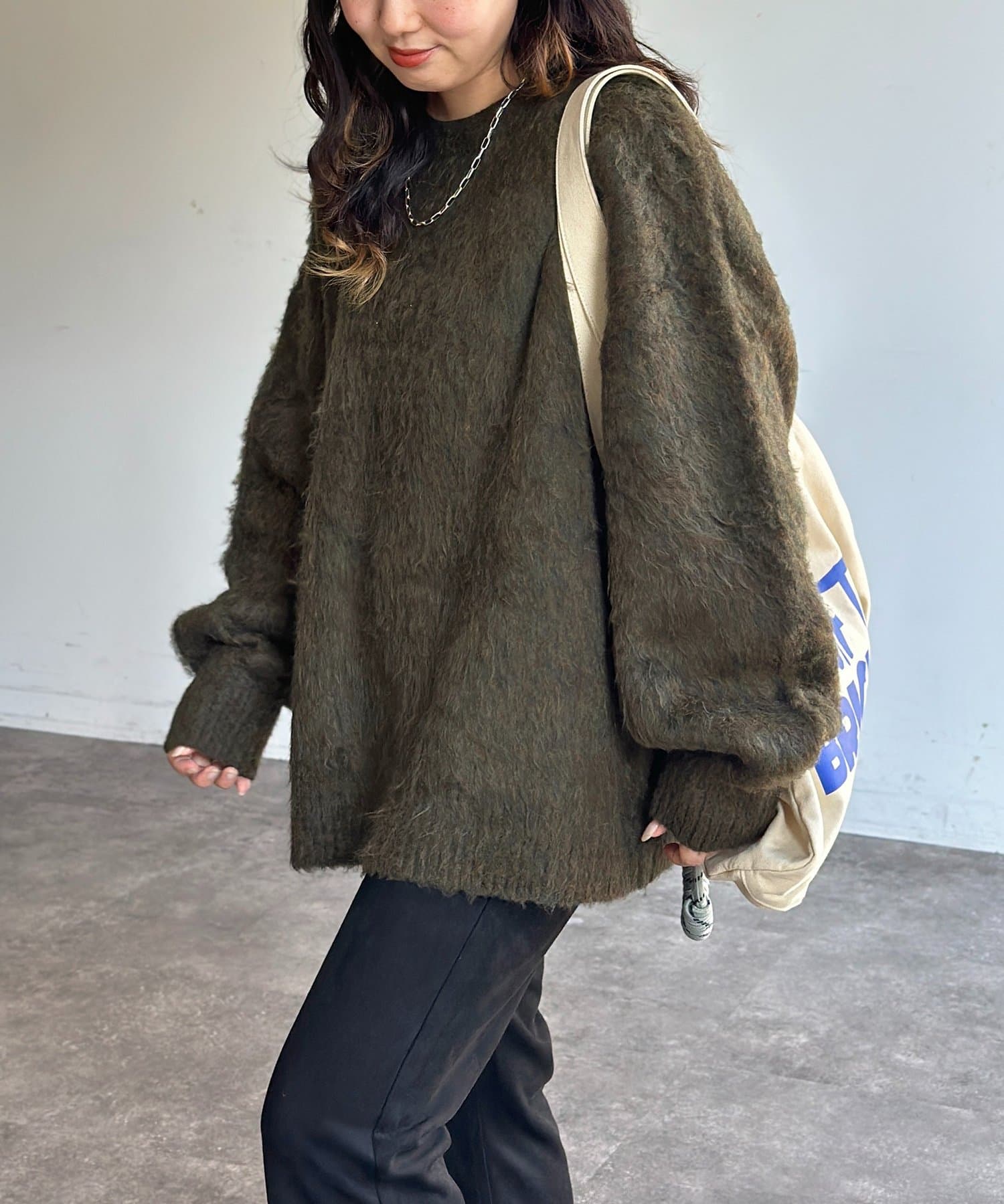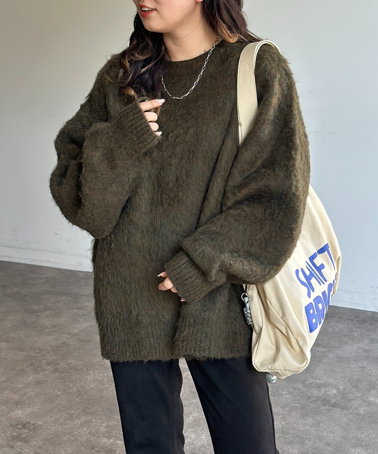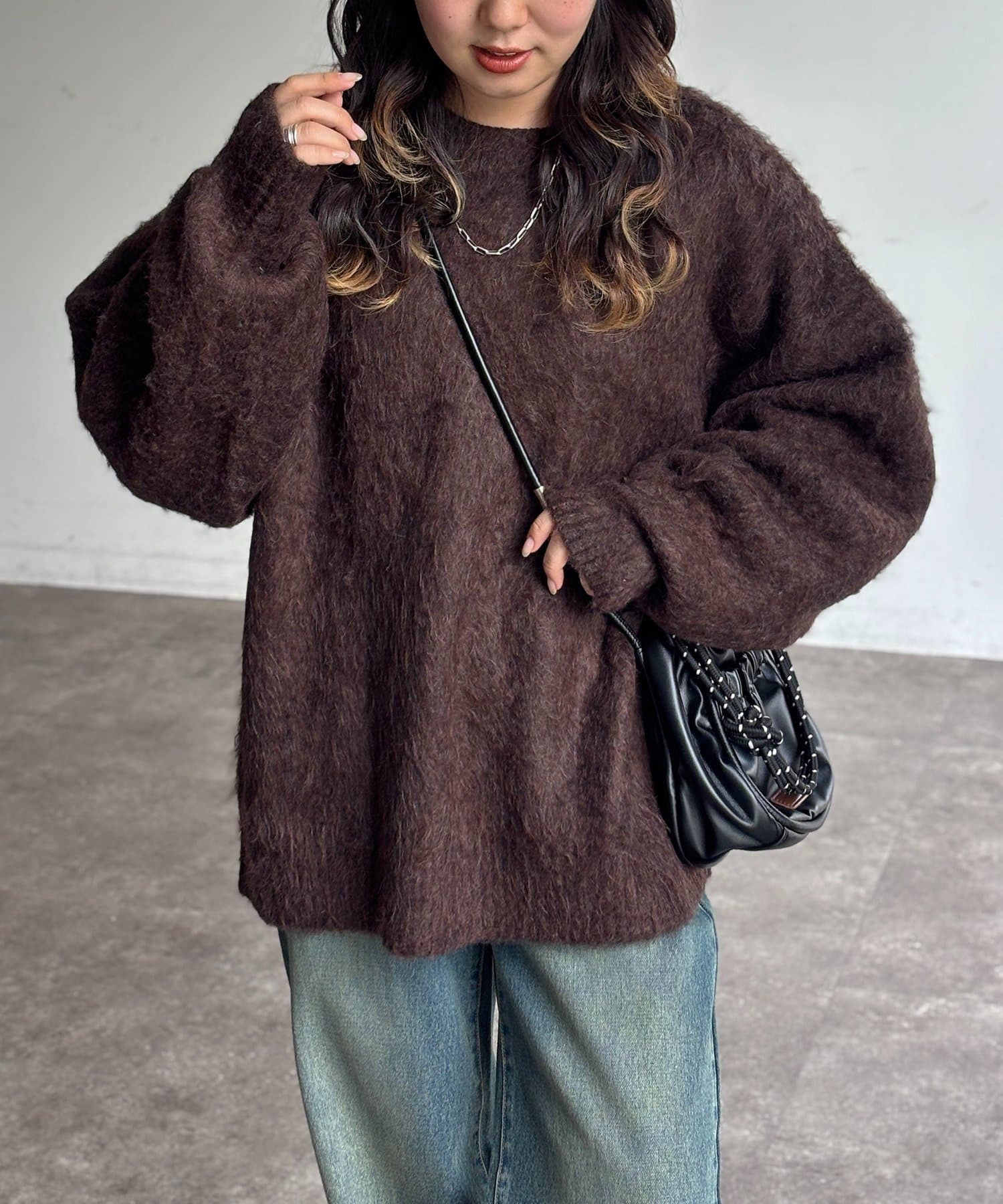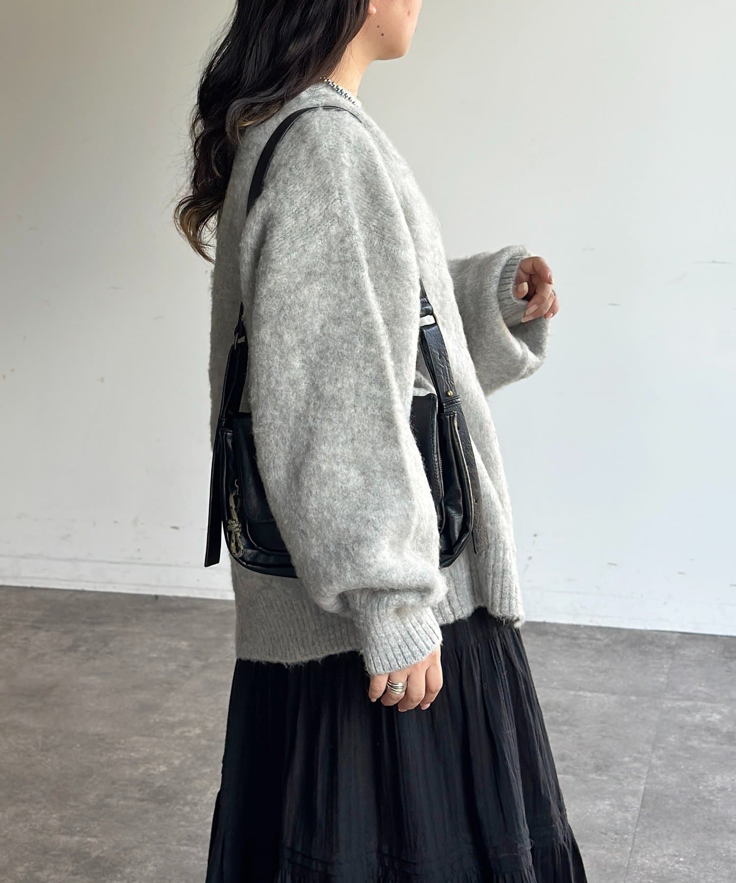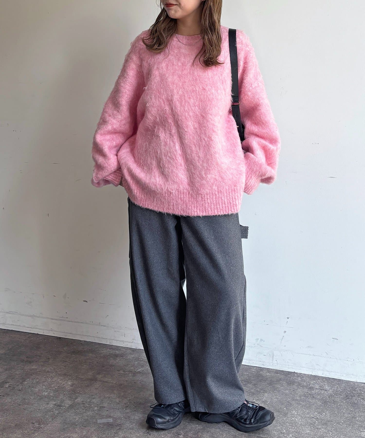 シンプルなデザインながらも、モヘアライクなデザインで着るだけでこなれた印象に!