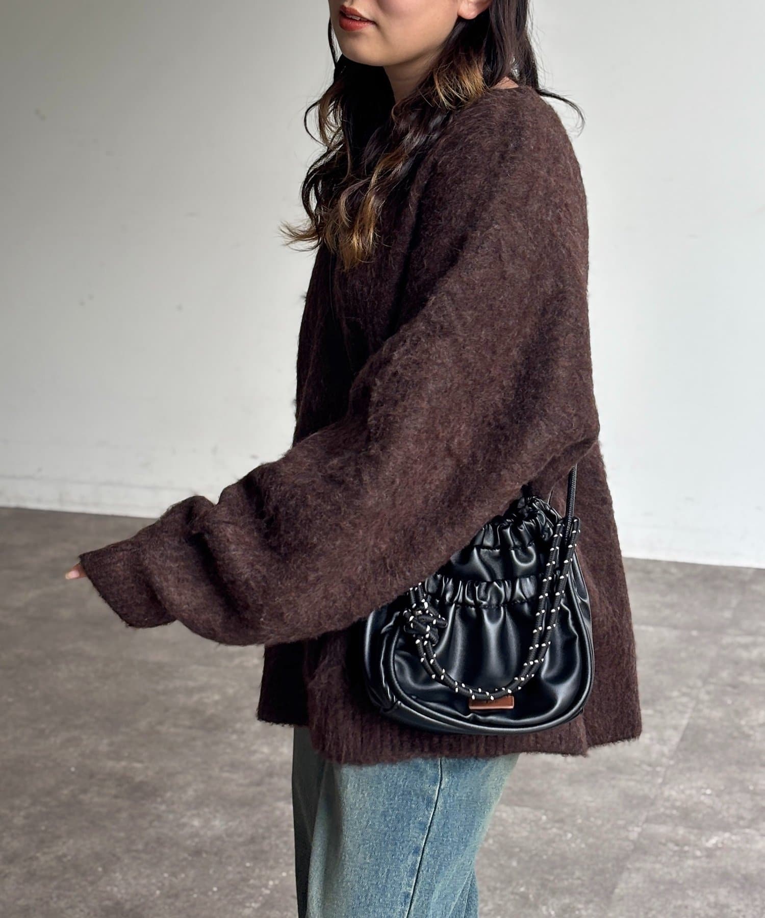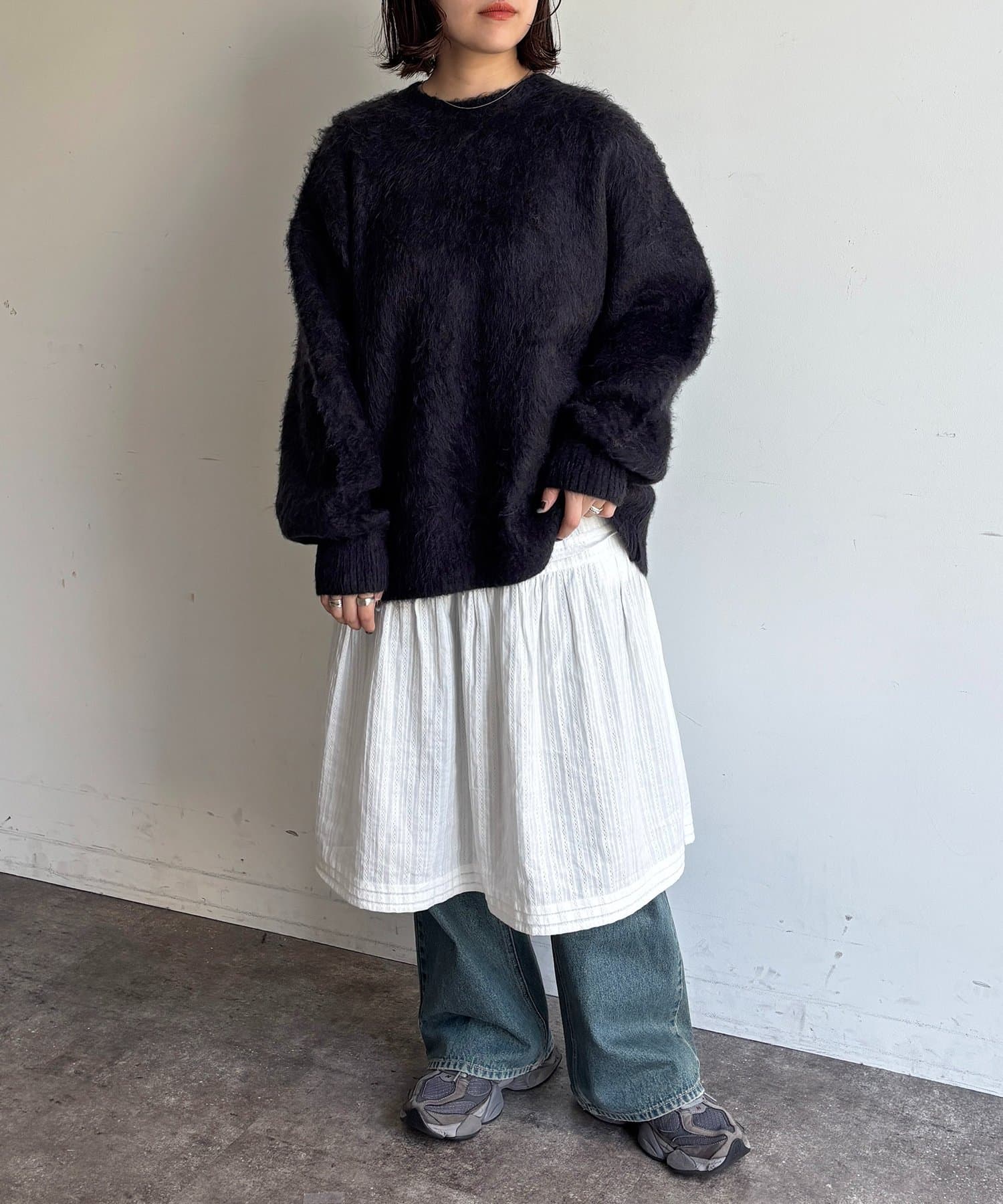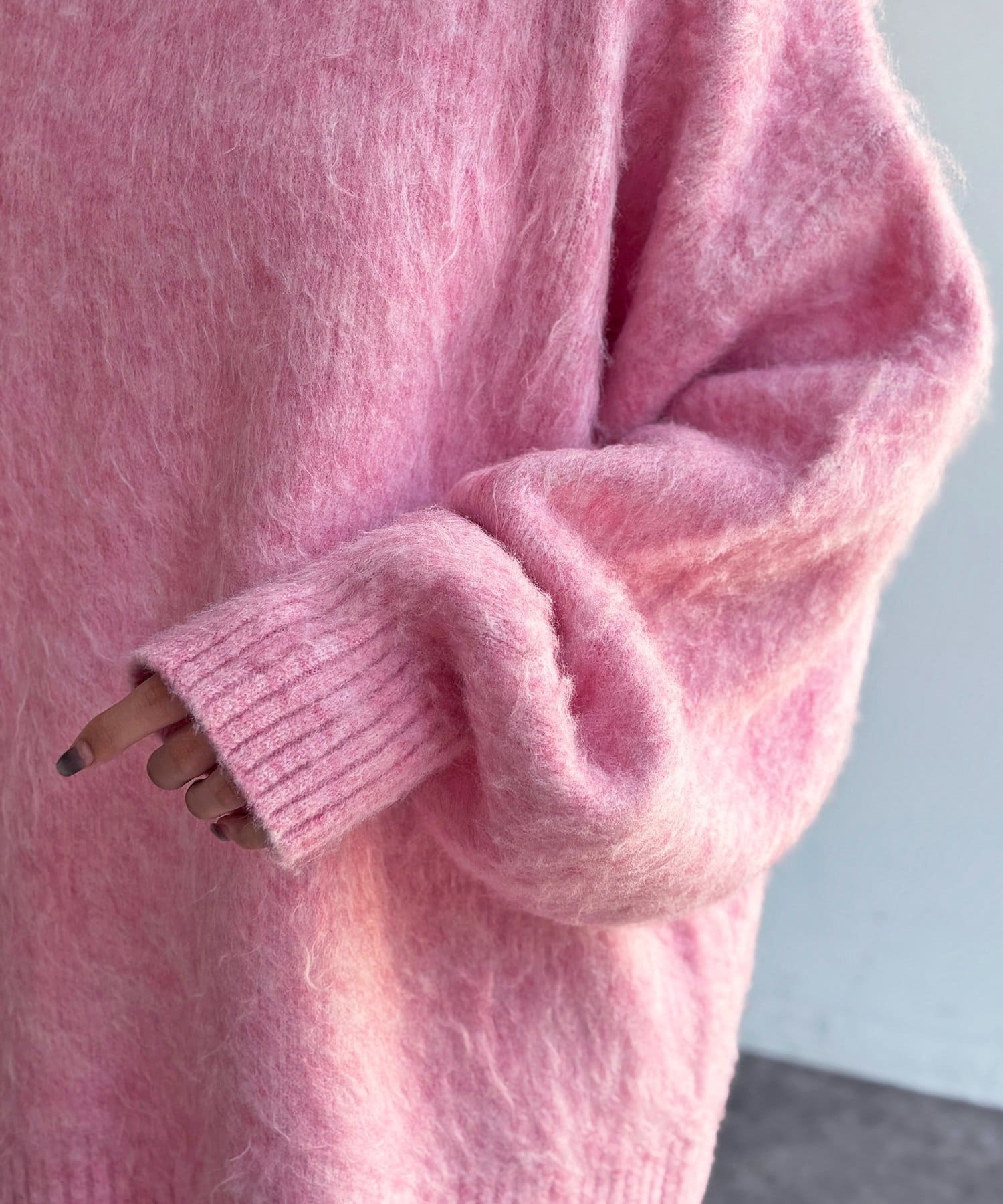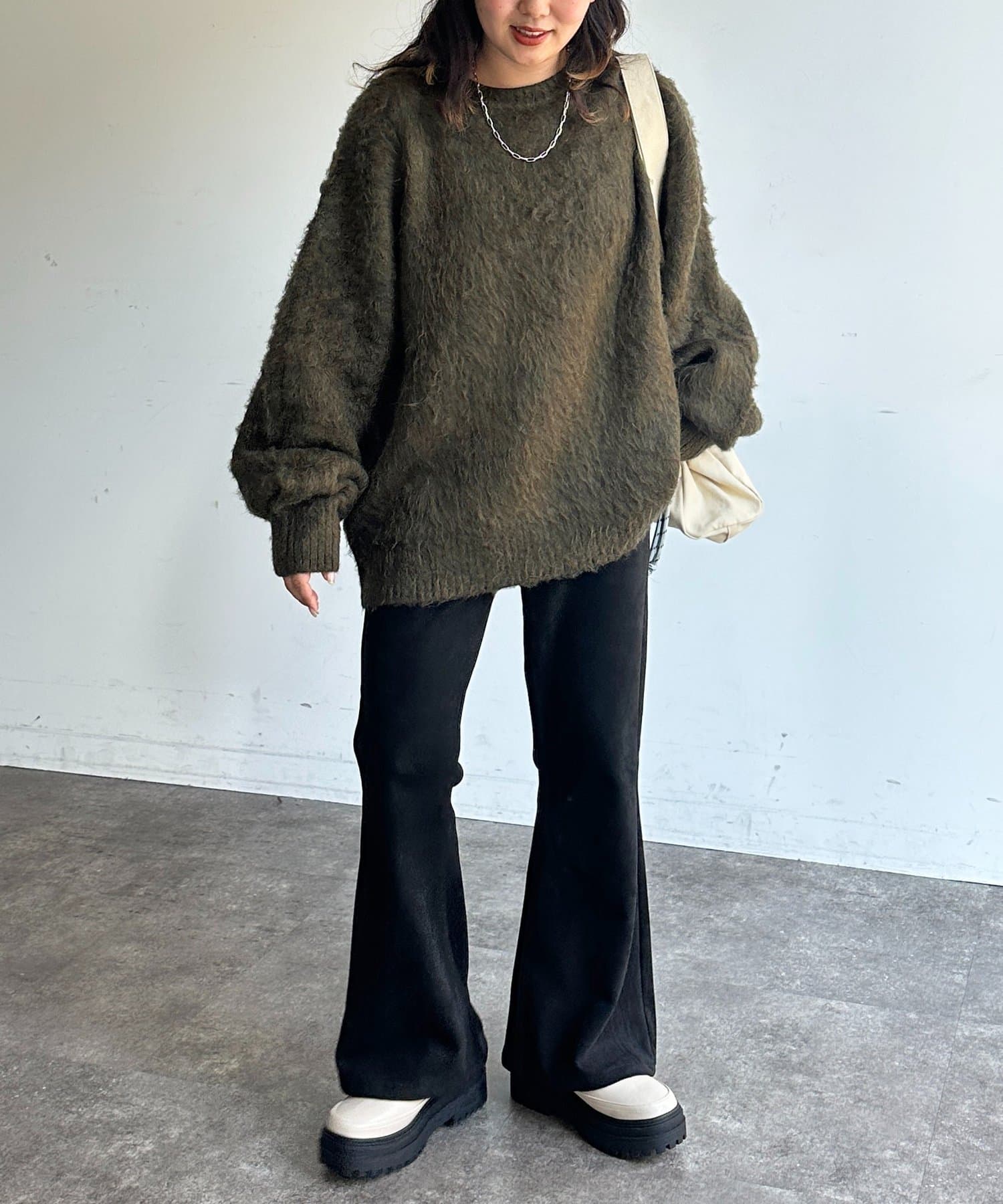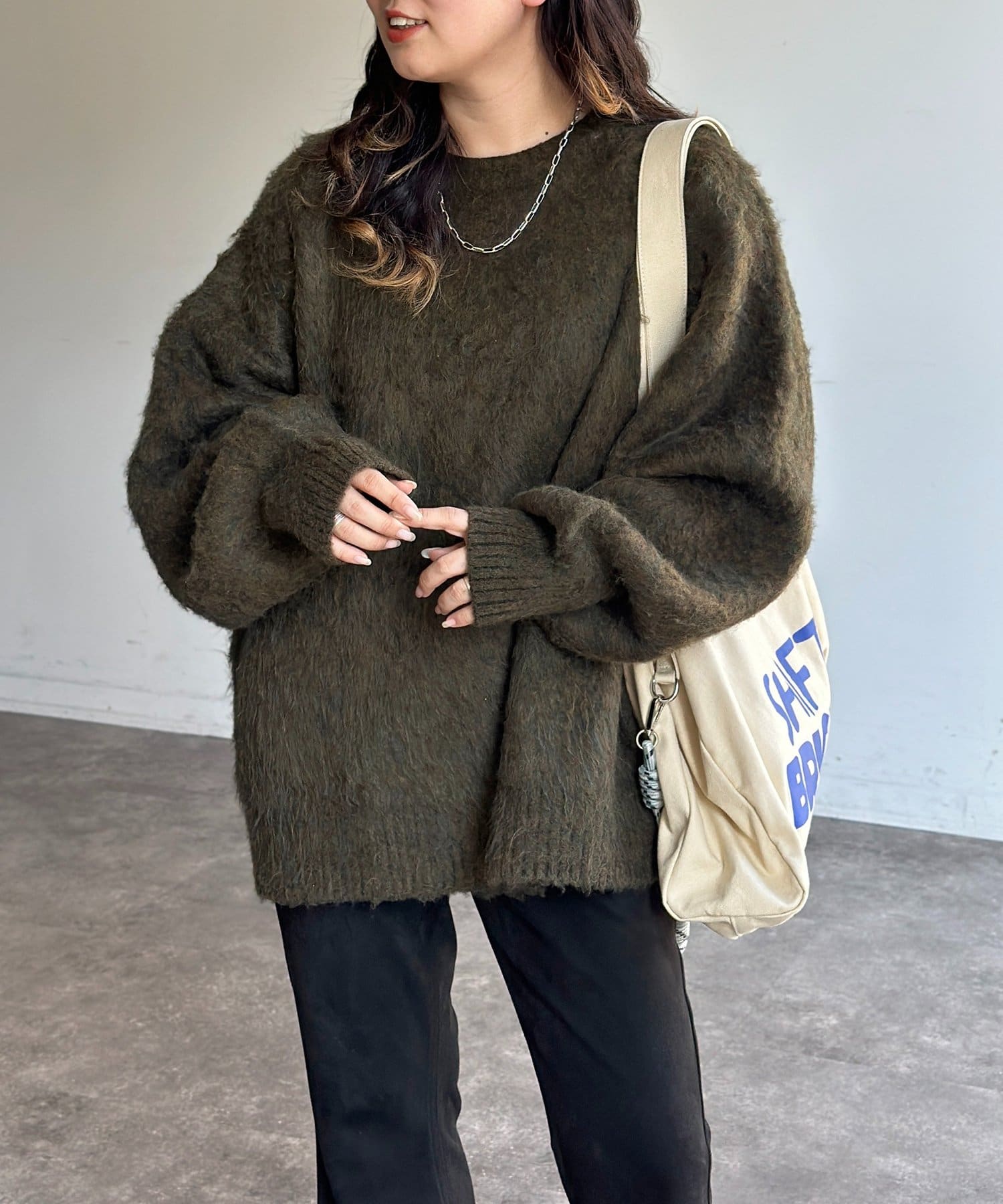シンプルなデザインながらも、モヘアライクなデザインで着るだけでこなれた印象に!
