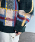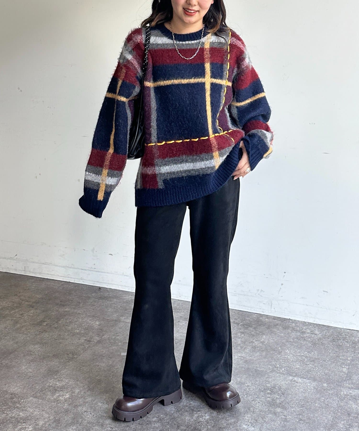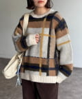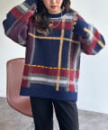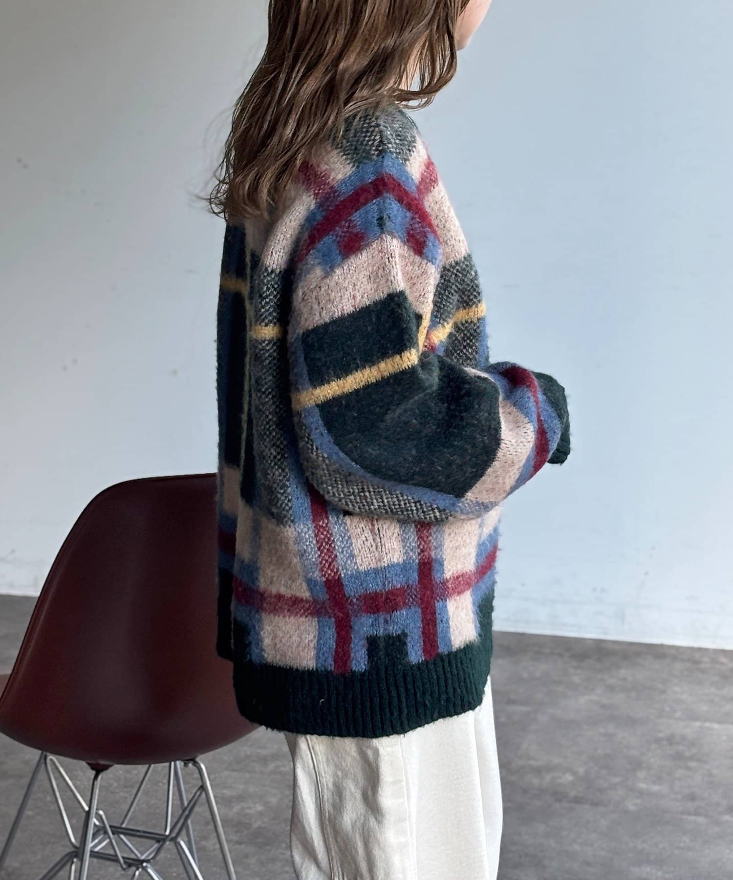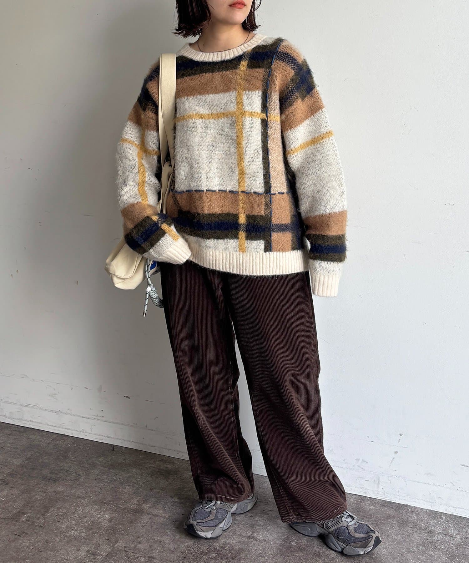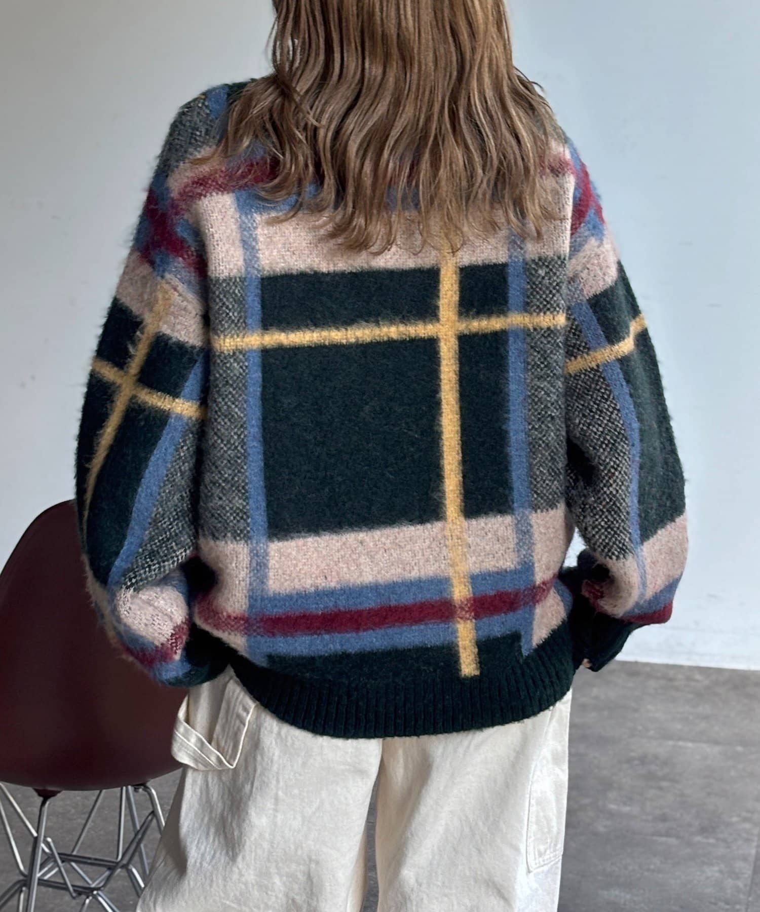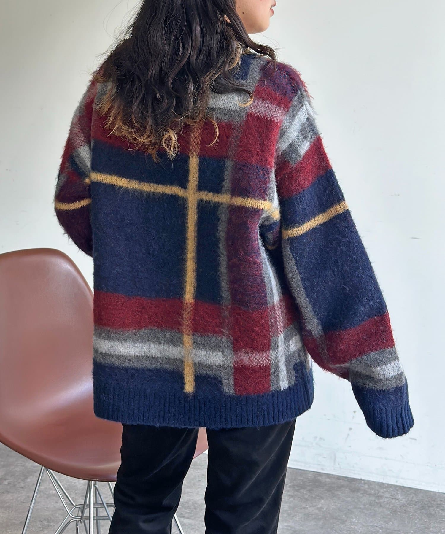 大きめのチェックに暖かみのあるステッチがアクセントのシャギーニット!