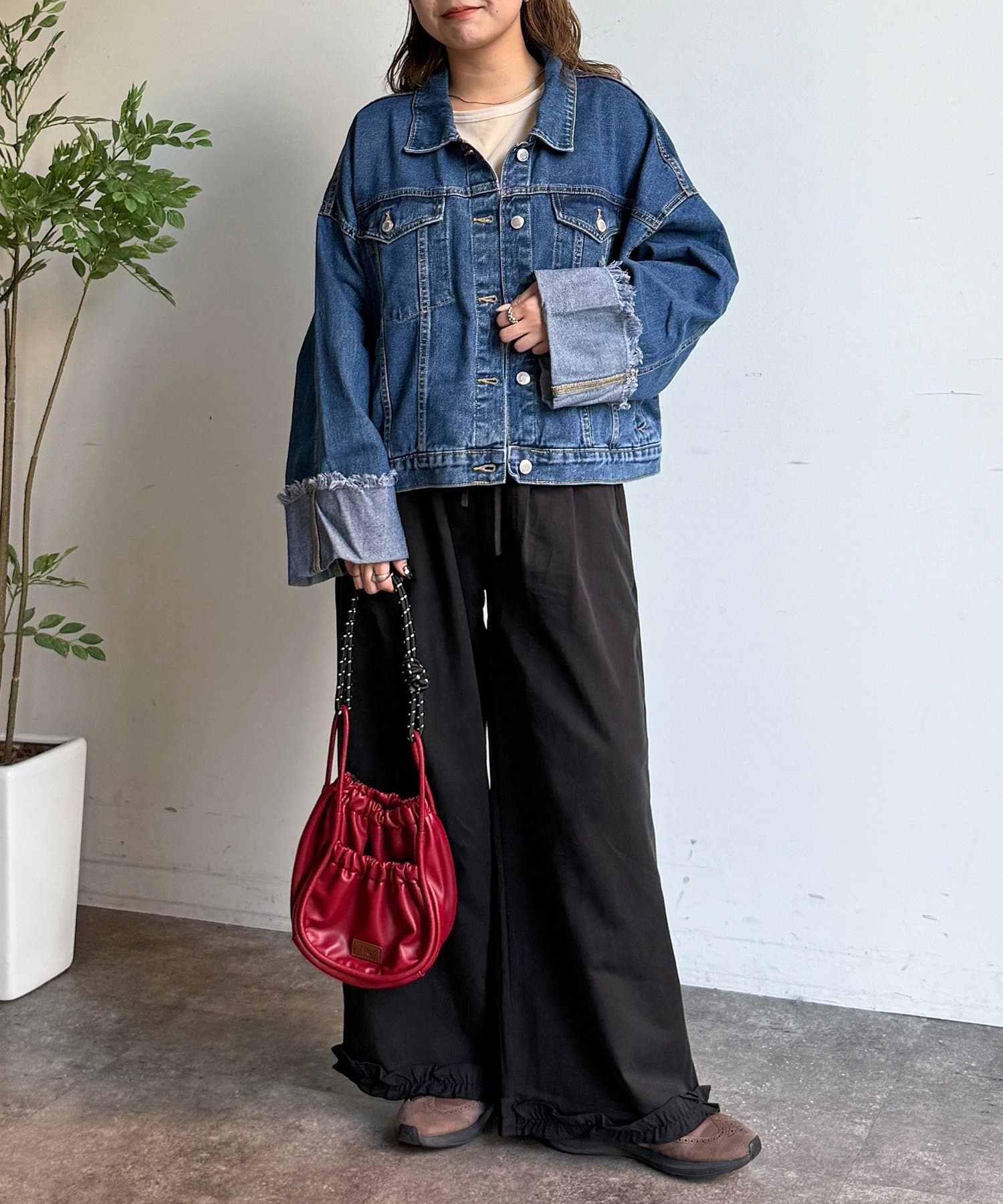 ・袖口のフリンジ加工がアクセントになったトレンドのワイドスリーブ