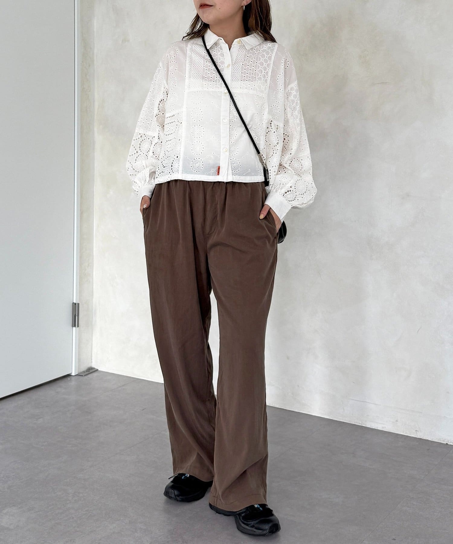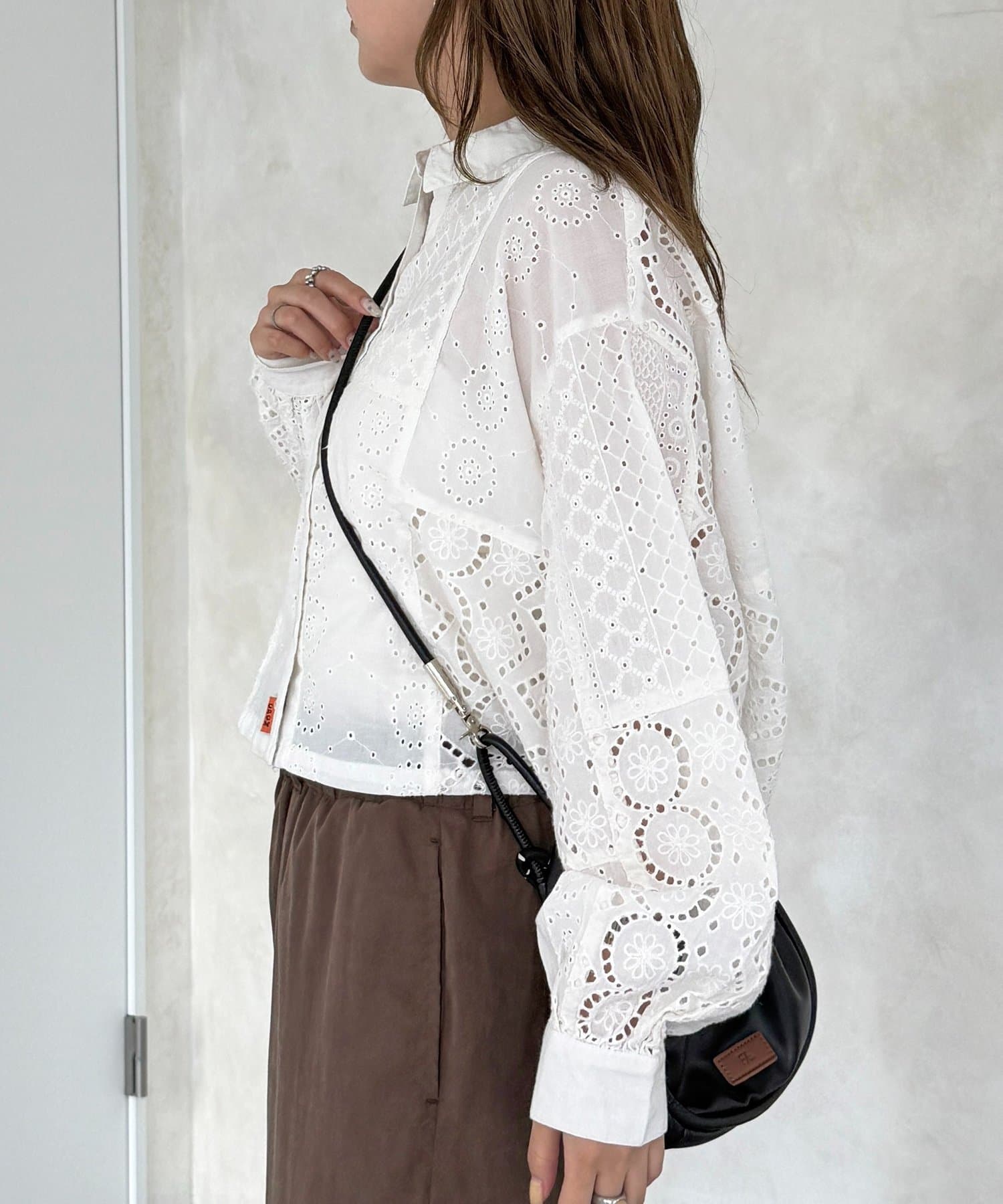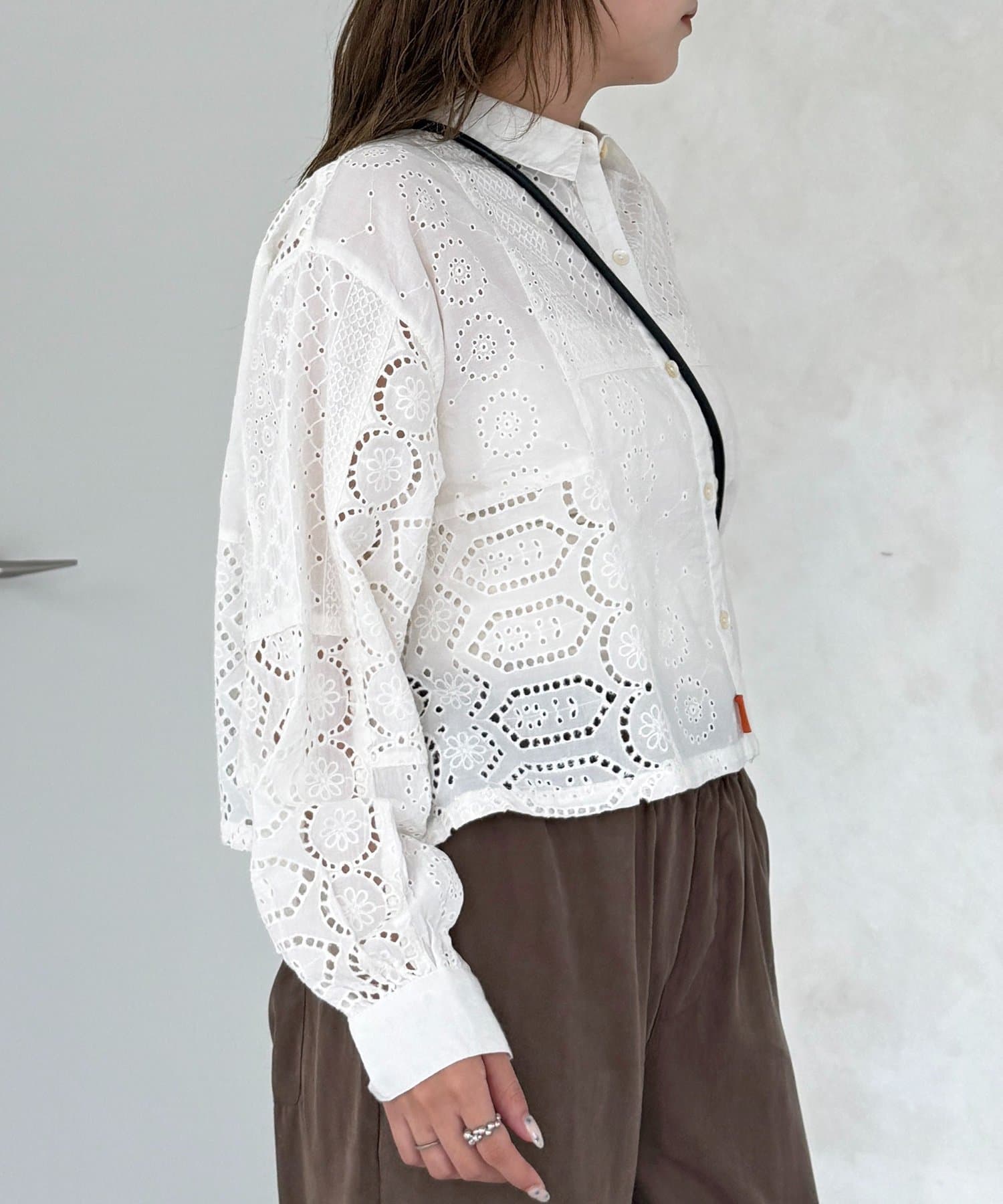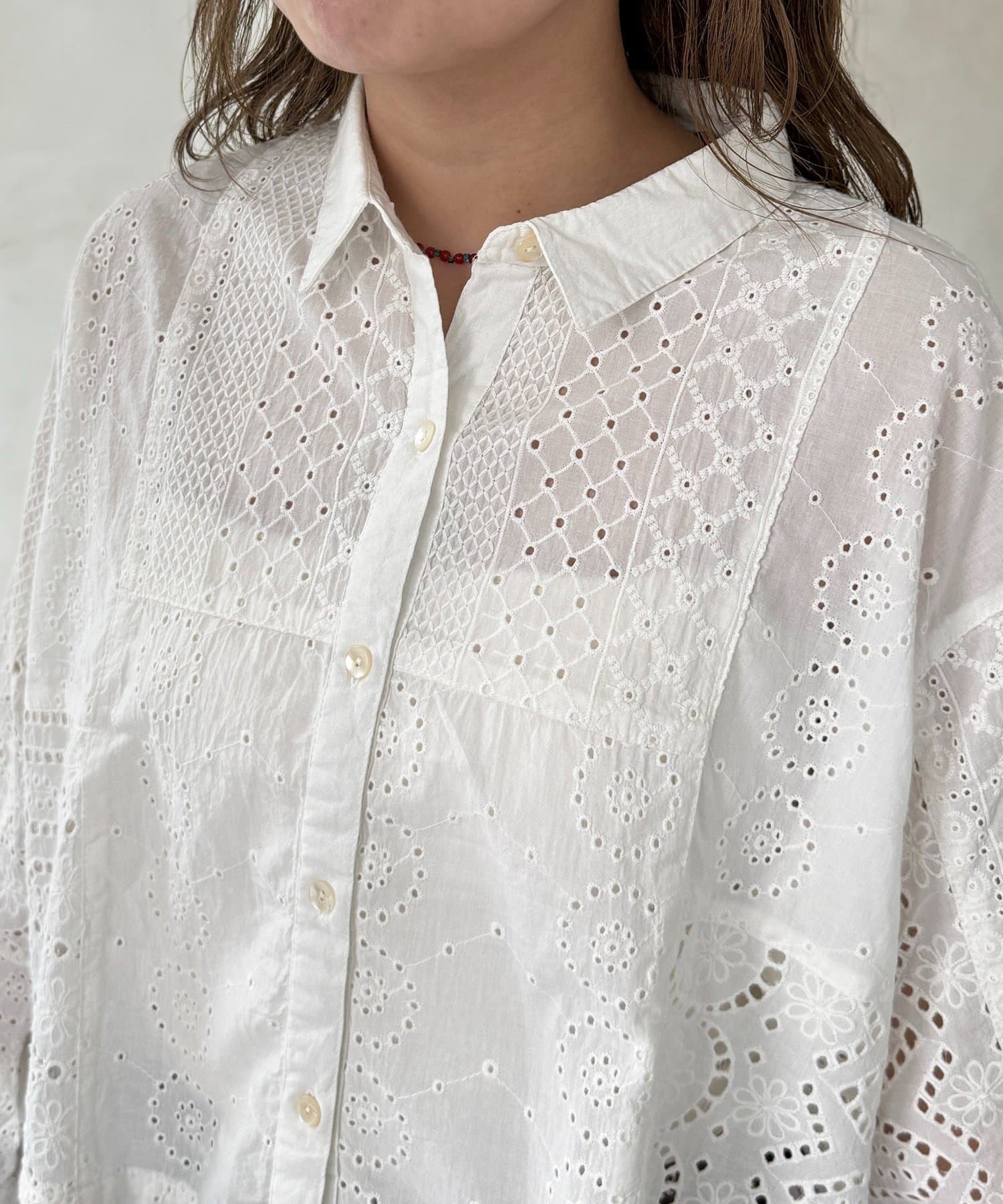 繊細なレースのパッチワークが主役!スタイルアップも叶う短丈シャツ