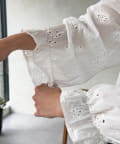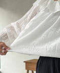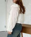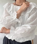 たっぷりのフリルとボリュームのあるバルーンスリーブが目を惹く、一枚で着映えするブラウス。