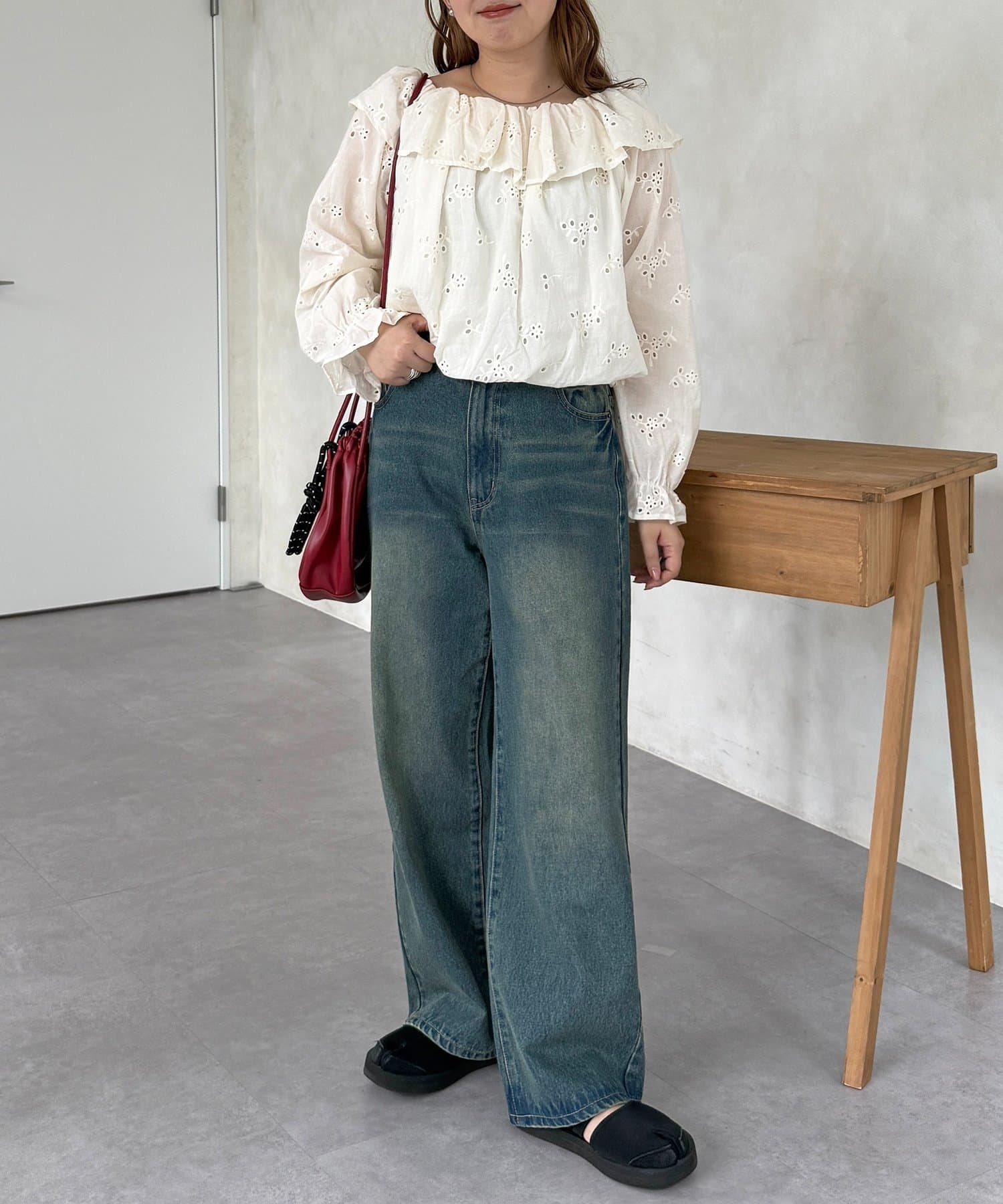 甘さの中にも上品な雰囲気があり、カジュアルからきれいめまで幅広く着回せます◎
