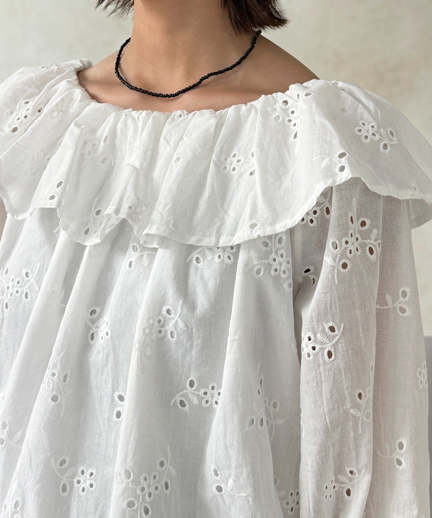 ・顔周りを華やかに見せる、ボリュームたっぷりのフリルデザイン