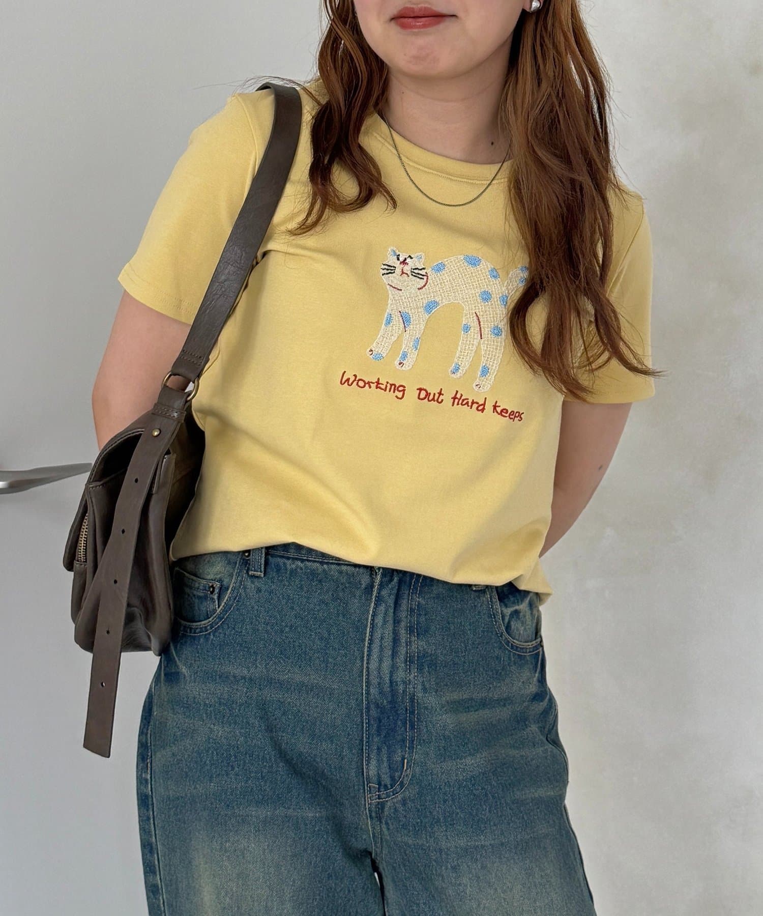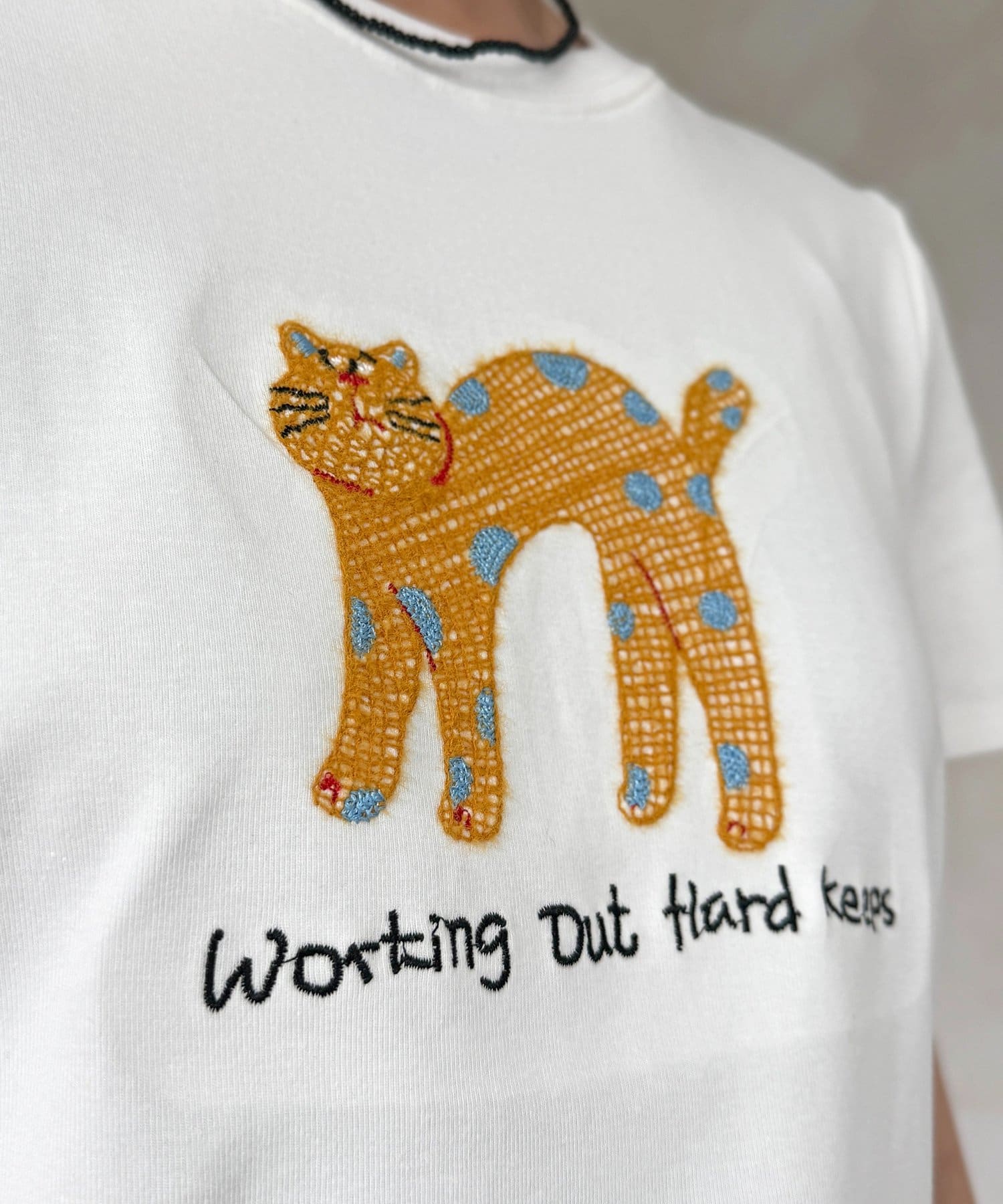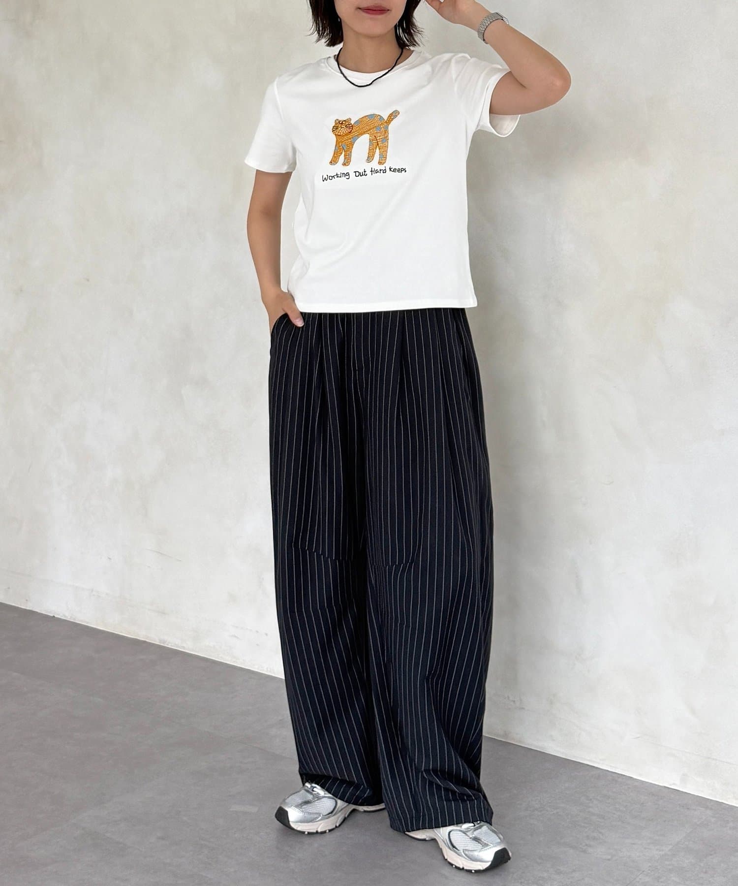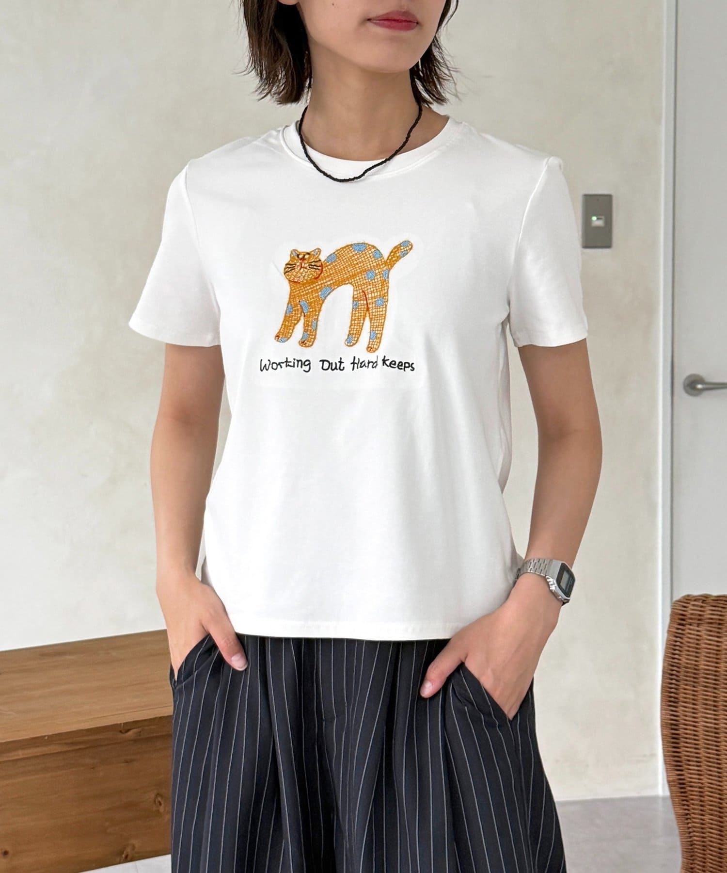 遊び心あふれるネコ刺繍で、いつものTシャツスタイルをアップデート!