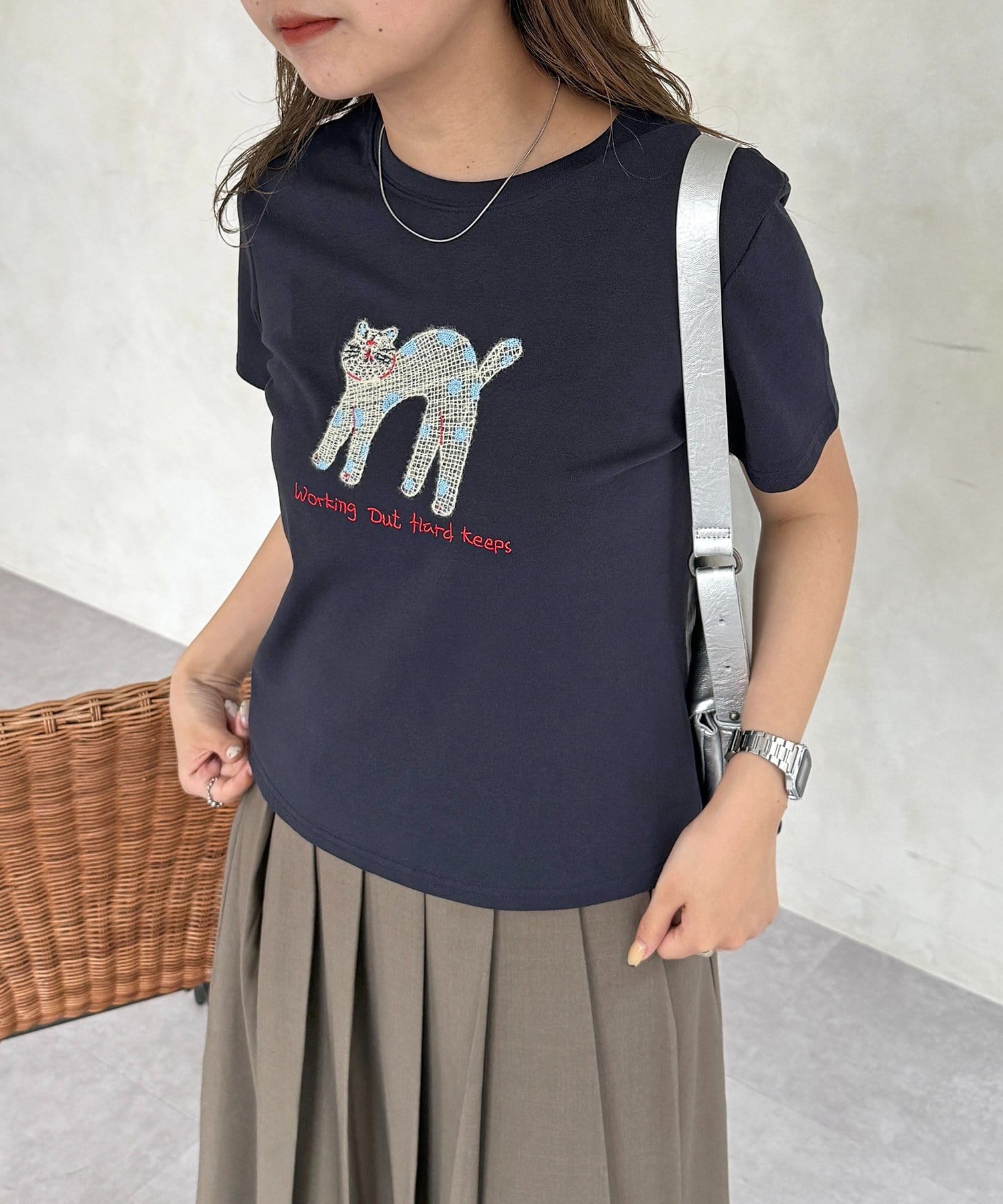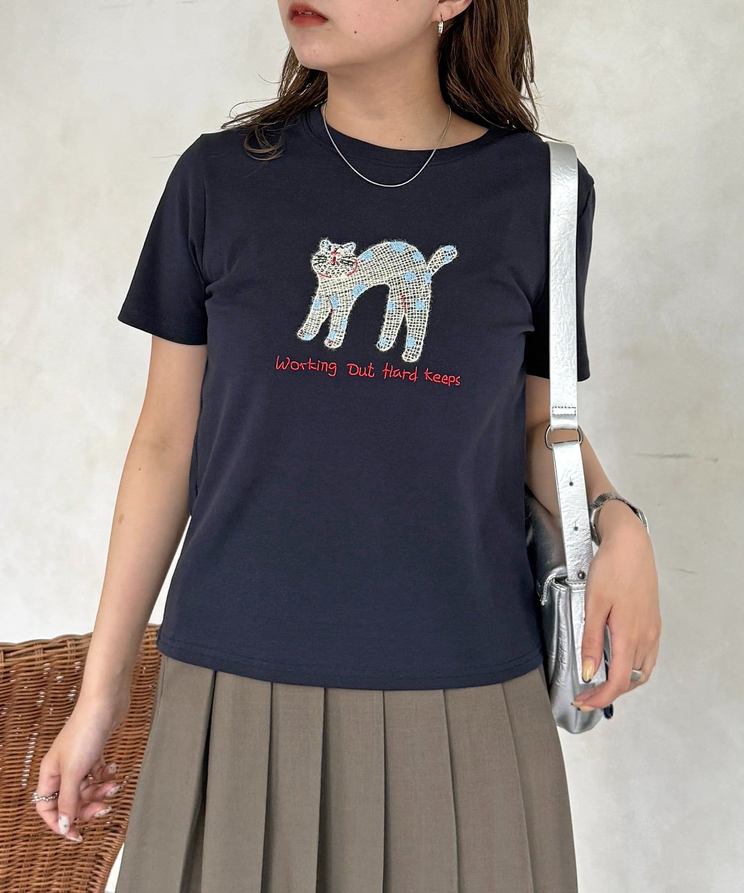 立体感のあるネコの刺繍が、コーディネートの主役になる一枚です!