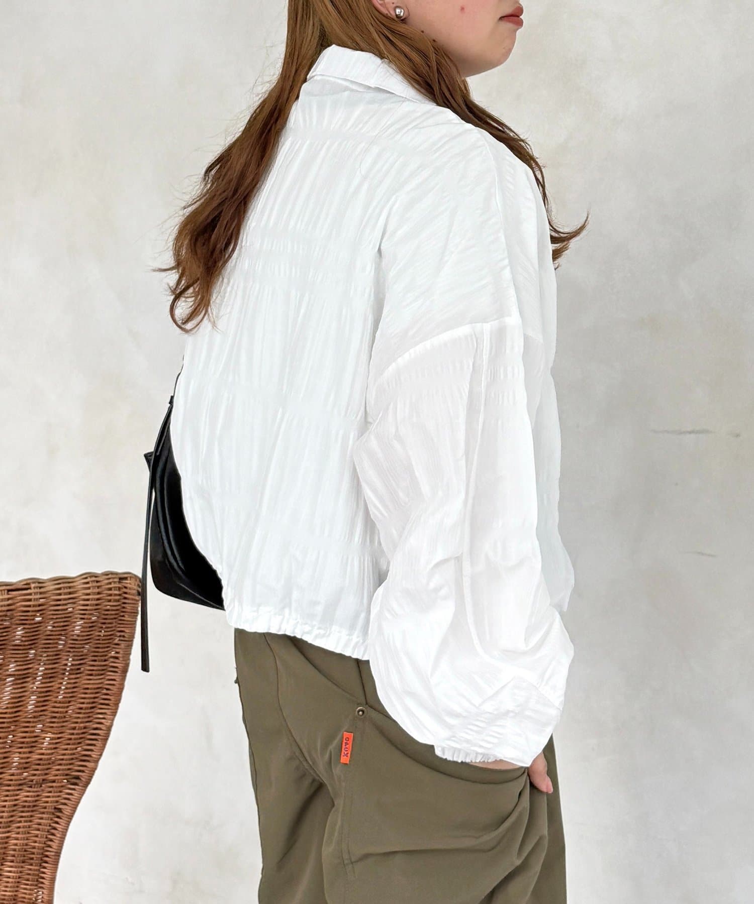 ・コンパクトな丈感なのでボトムスを選ばず、スタイルアップ効果も期待