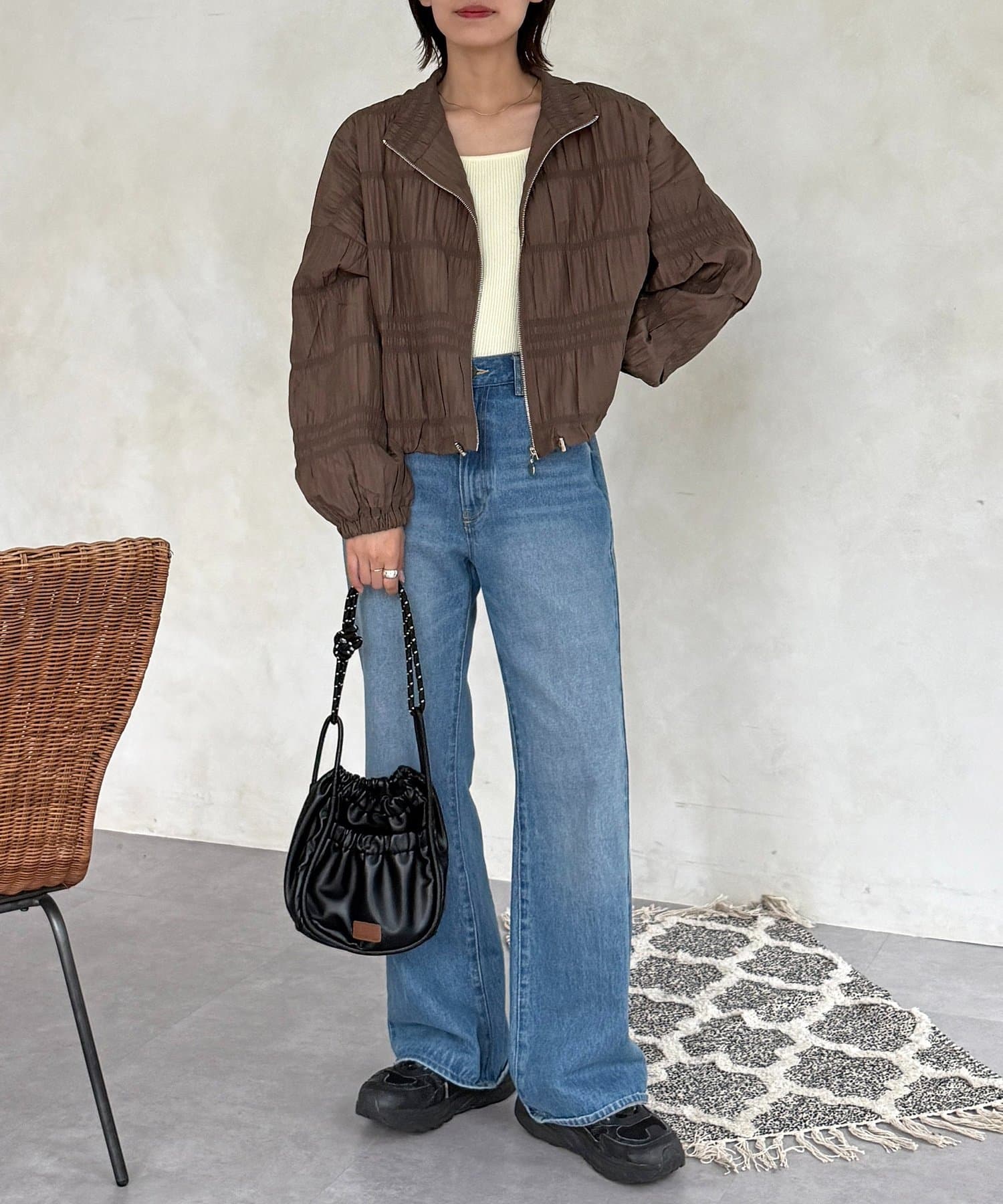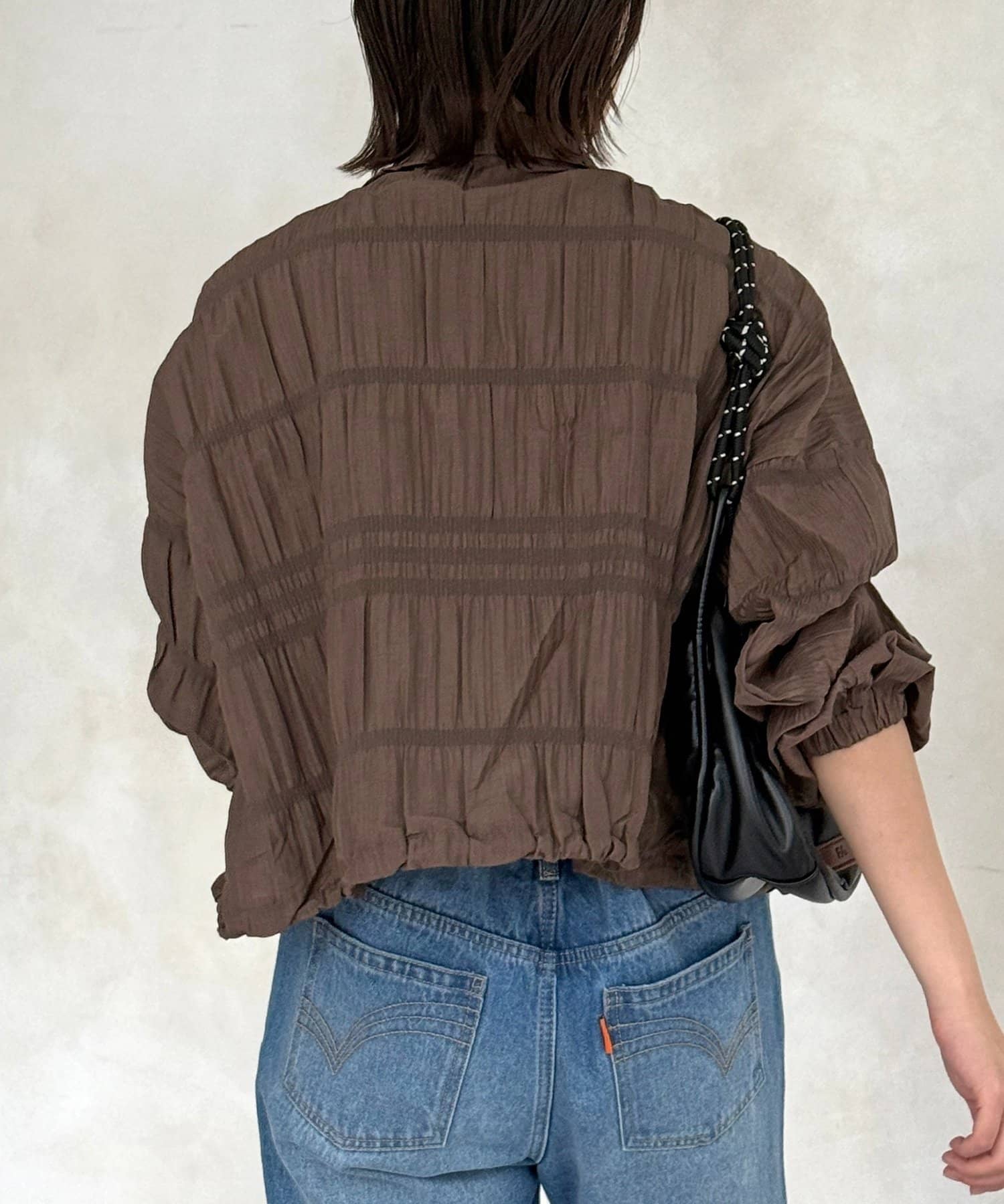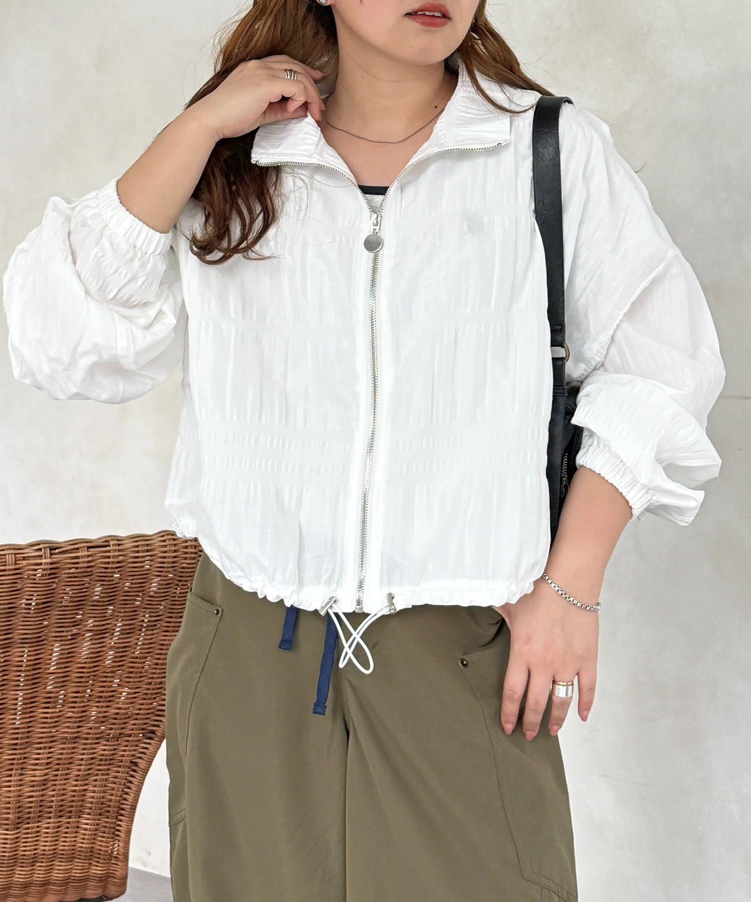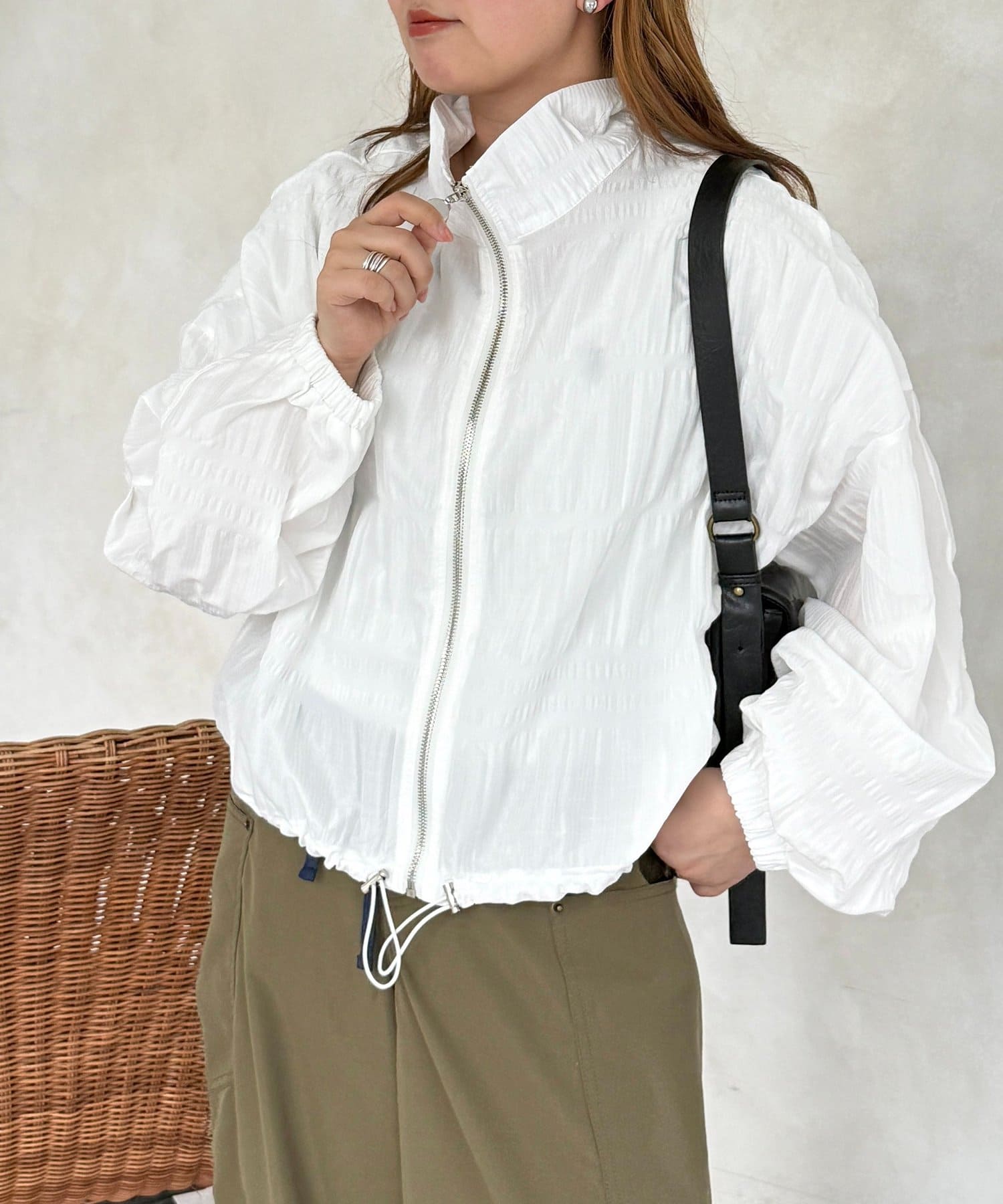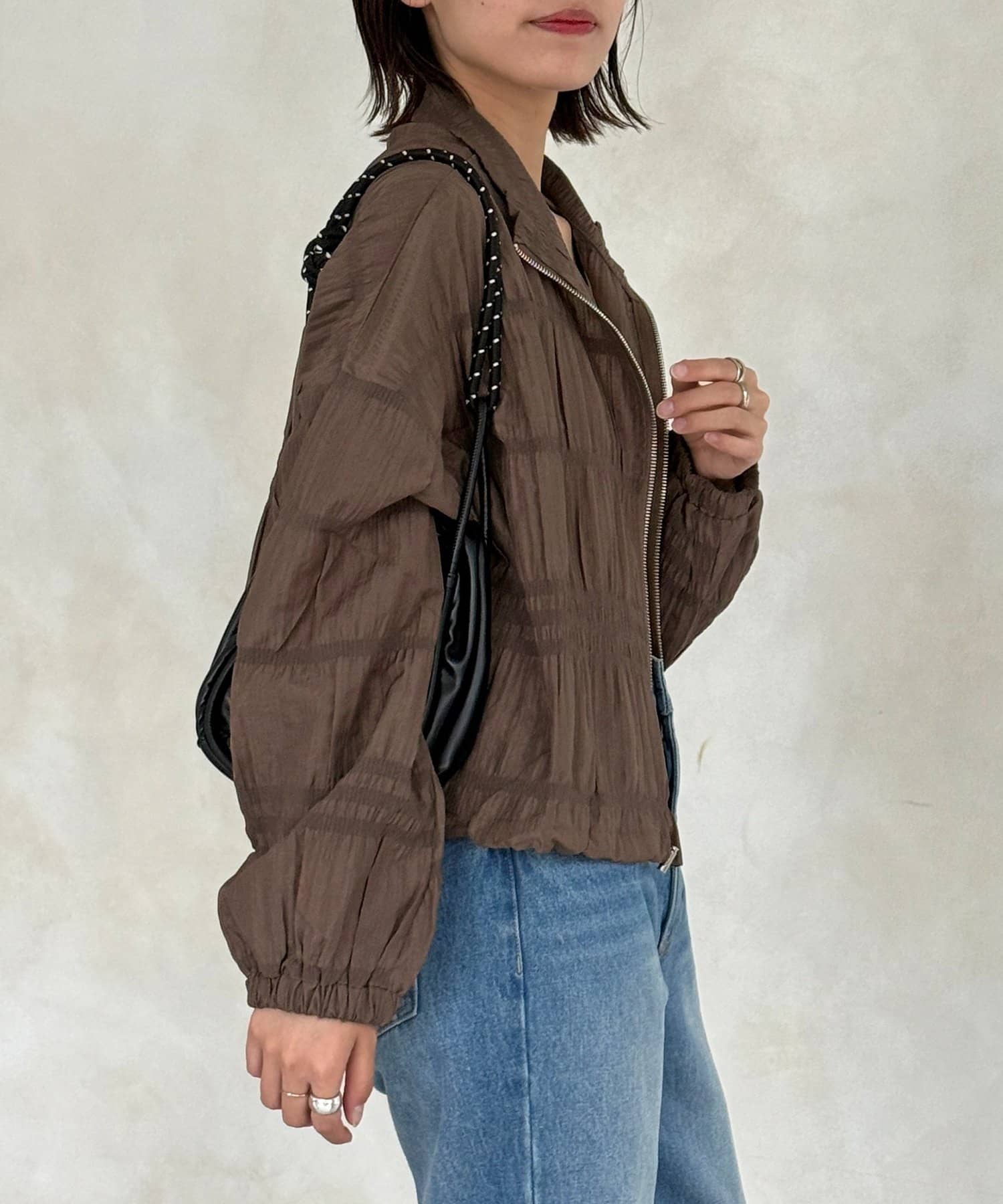 羽織るだけでこなれ感の出る、立体シャーリングが主役の軽やかブルゾン