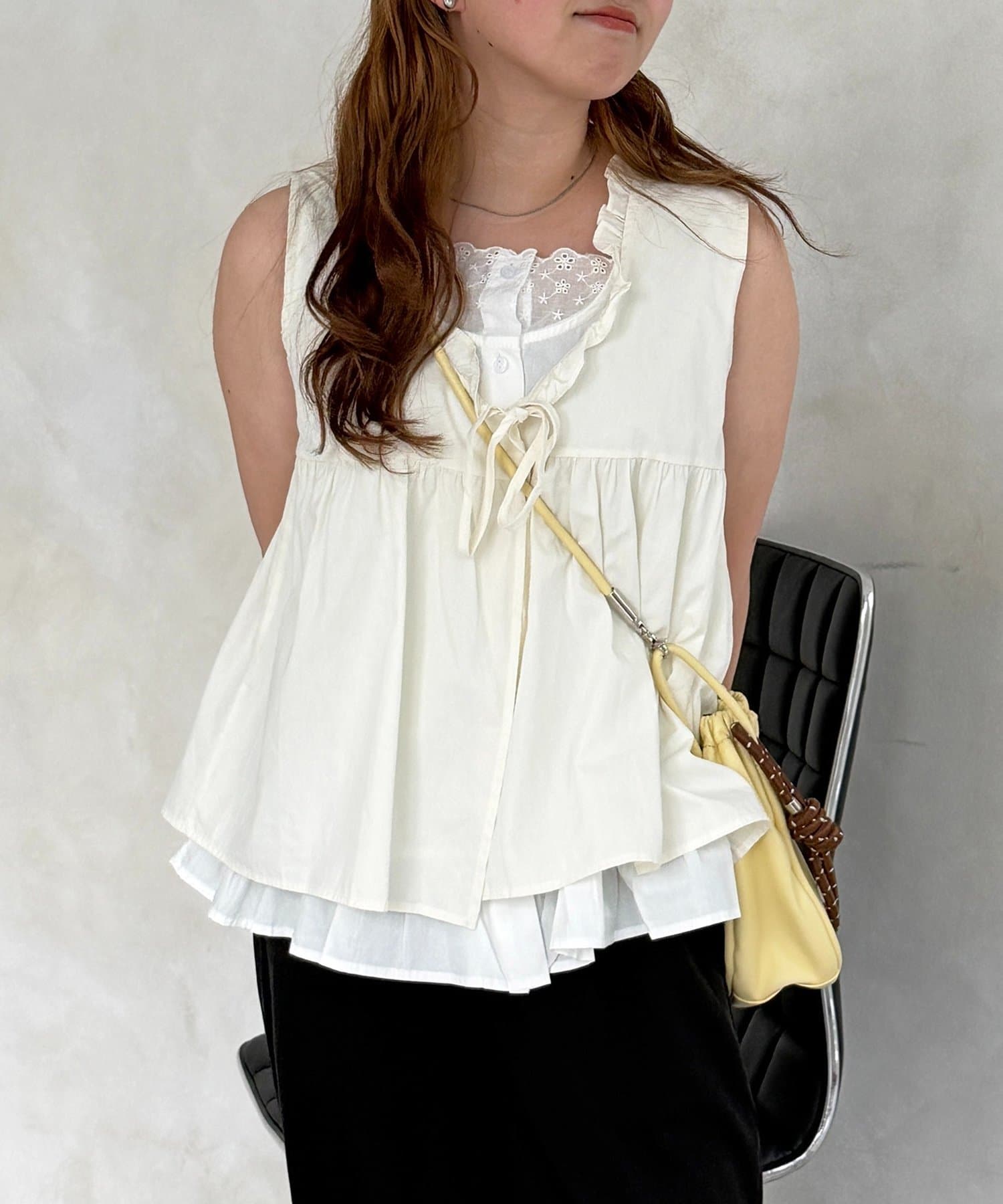 TOP > CPCM > レディース > トップス > シャツ/ブラウス(ボタン) > フェイクレイヤードフリルリボンベスト