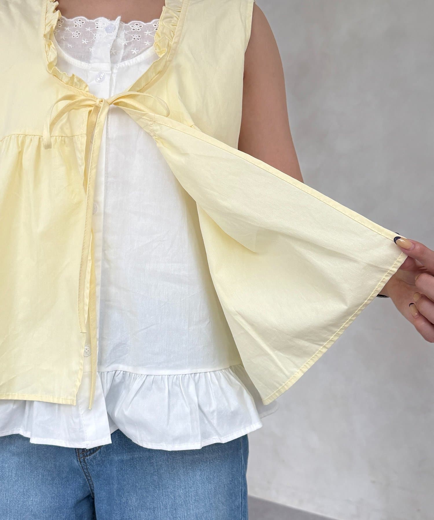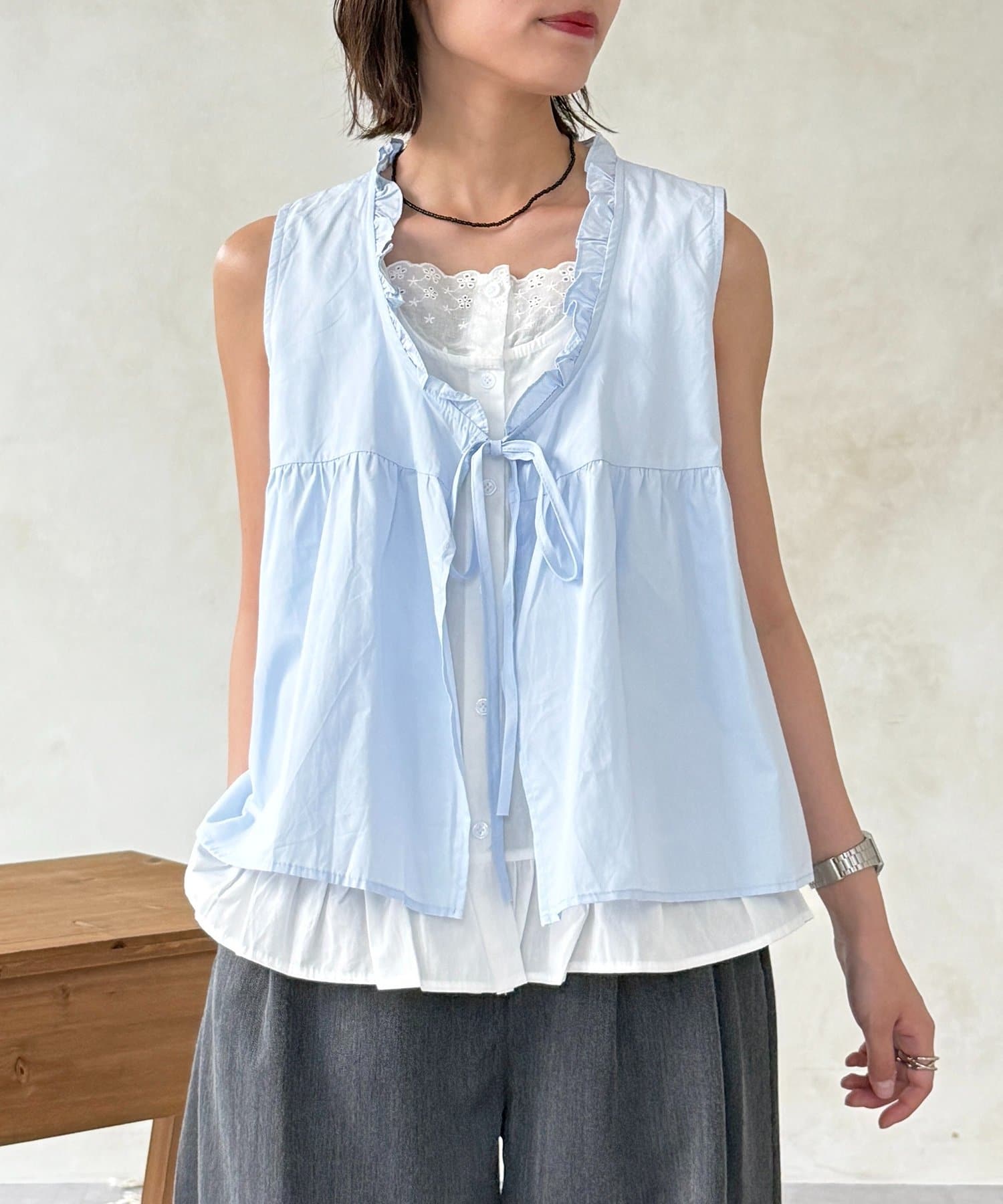 フェイクレイヤードフリルリボンベスト